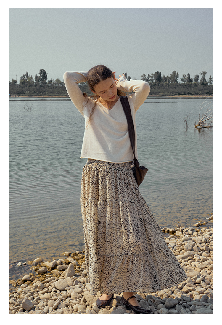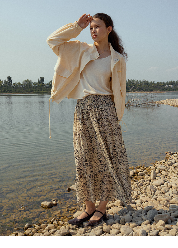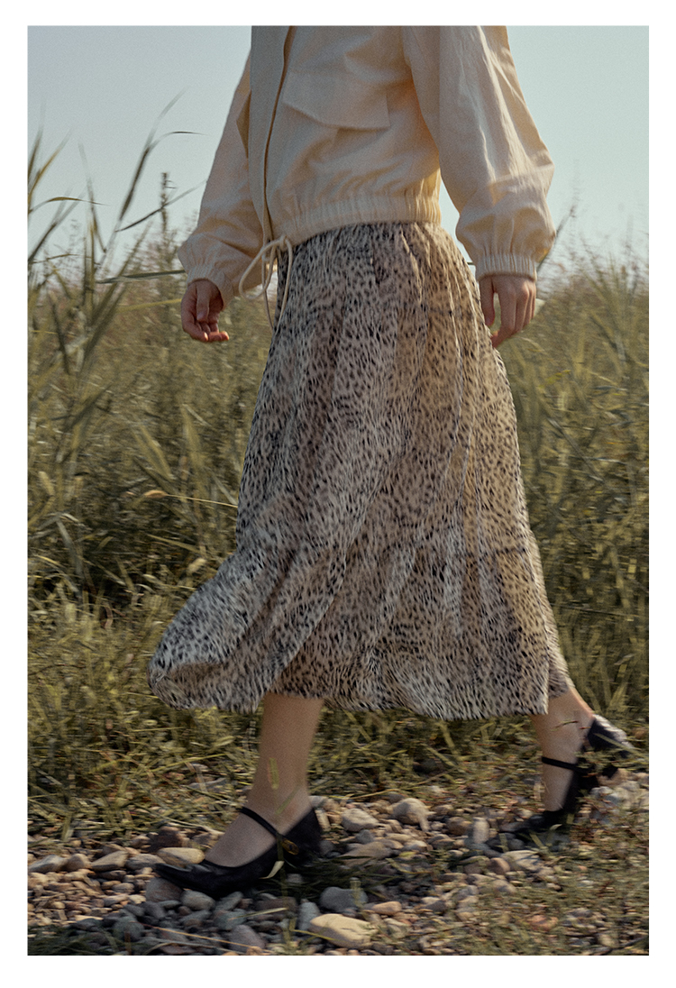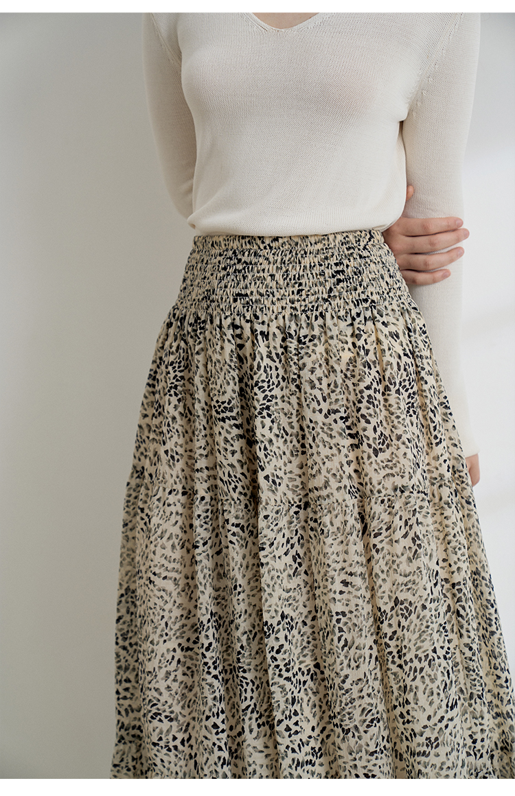 HeyDress豹纹半身裙女春秋高腰打揽显瘦设计感A字半裙小众碎花裙