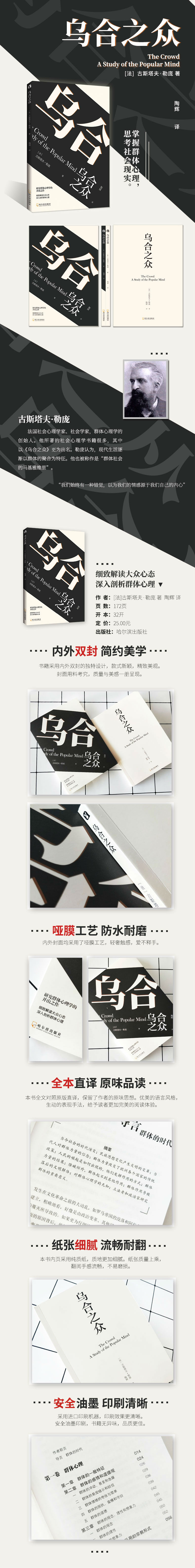 《乌合之众》颠覆了人们通常对群体的认识,将群体的特点剖析得淋漓尽致,让人先是惊异,随后便是佩服。它深刻地透视了社会服从、大众文化、群众运动和无意识在社会行为中的作用。作者在论述传统社会因素毁灭、工业时代巨变的基础上,指出了“群体的时代”已经到来,书中极为精致地描述了集体心态,对人们理解集体行为的作用以及对社会心理学的思考发挥了巨大作用。