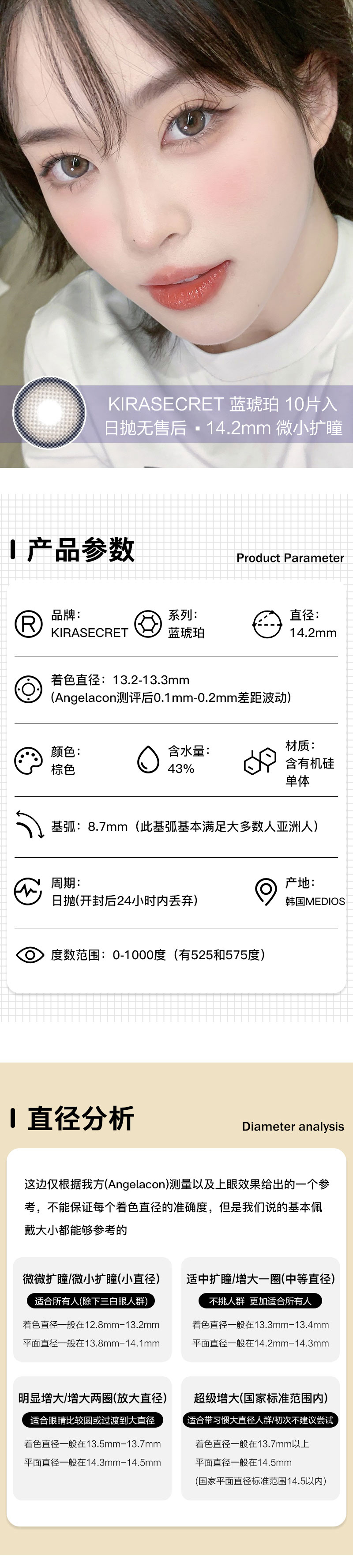 KIRASECRET | 蓝琥珀 | 10片入 | 日抛 | 无售后 | 14.2mm | 微小扩瞳