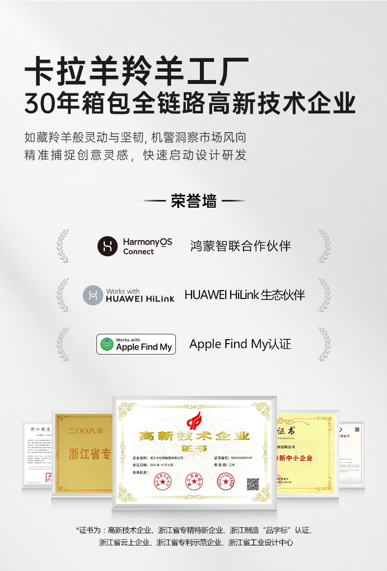 - 浙江卡拉扬集团有限公司专注箱包27年,旗下有卡拉羊和9UM两大品牌,有浙江海宁和江苏沭阳两大工厂,拥有多项知识产权,是集智能化、设计生产、品牌营销为一体的综合型企业。