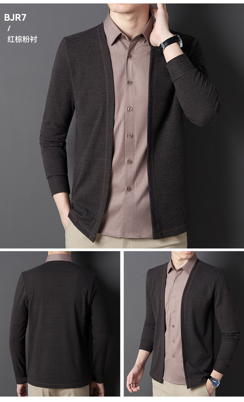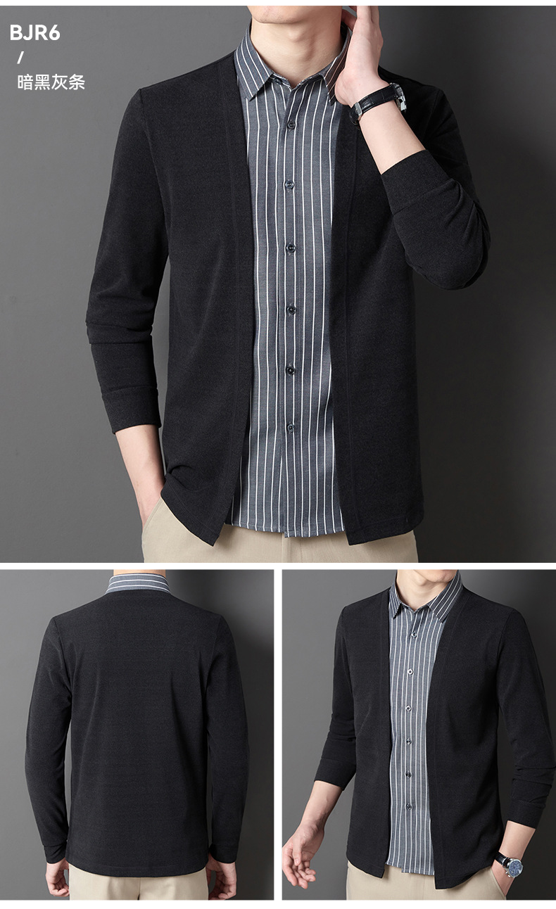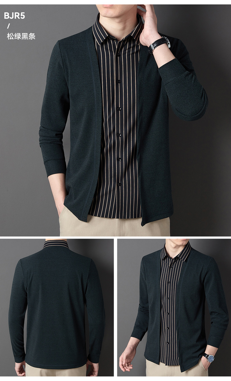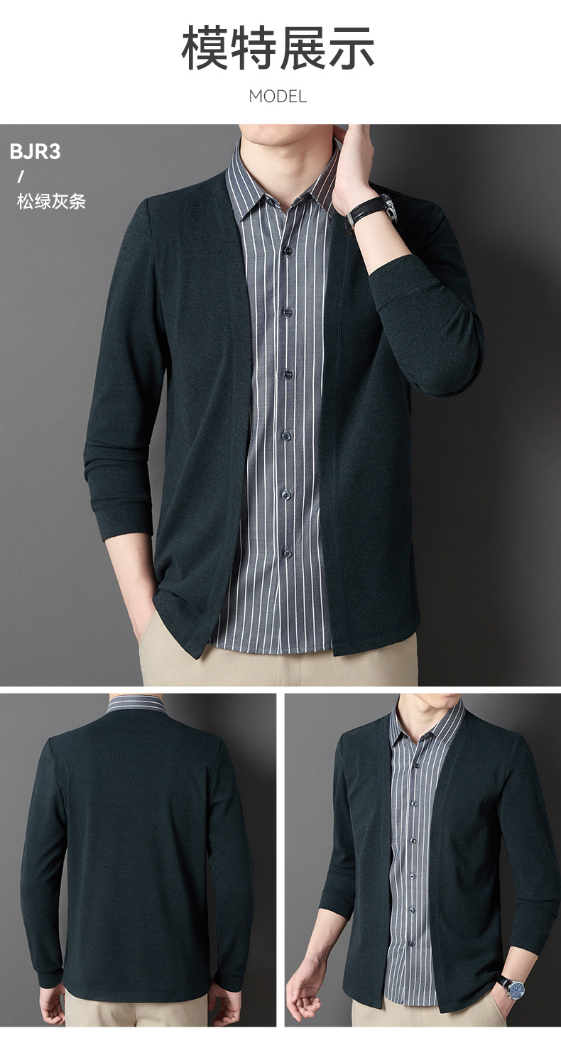 JD-BJRF5春秋新款男装假两件针织衫男士衬衫领开衫休闲打底毛衣男无痕压胶