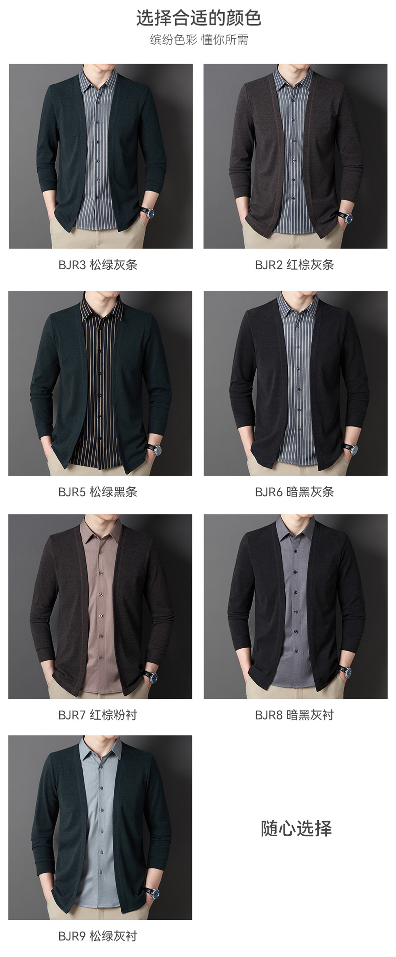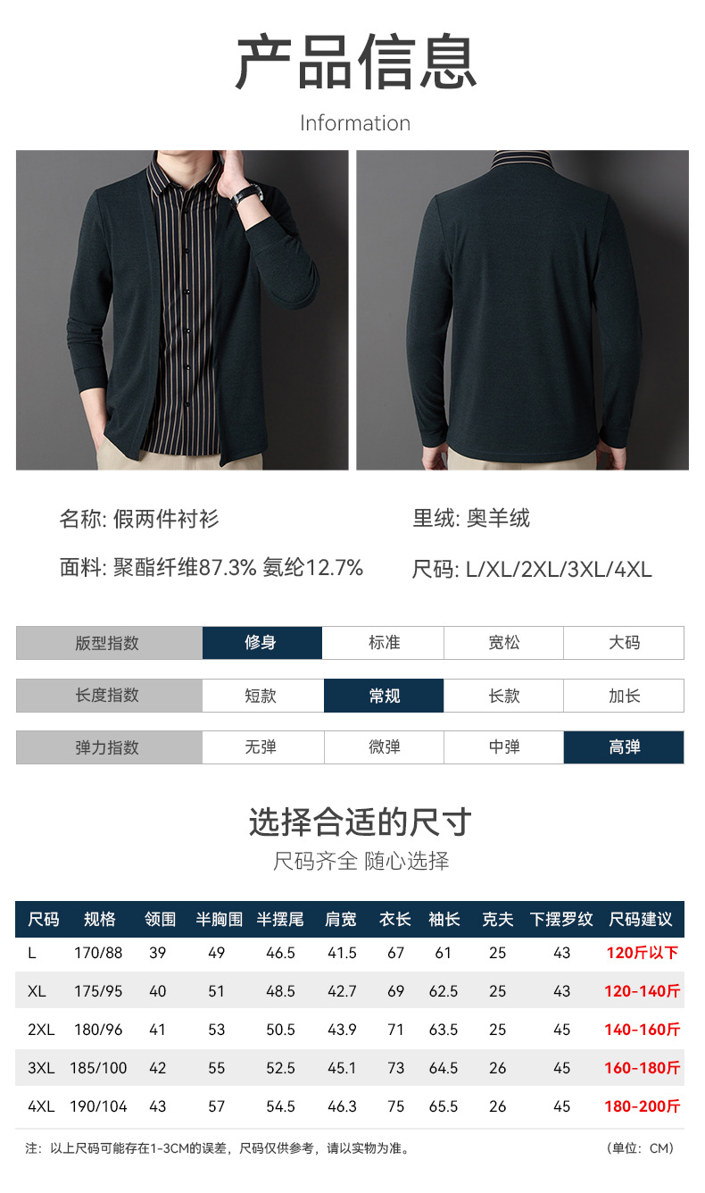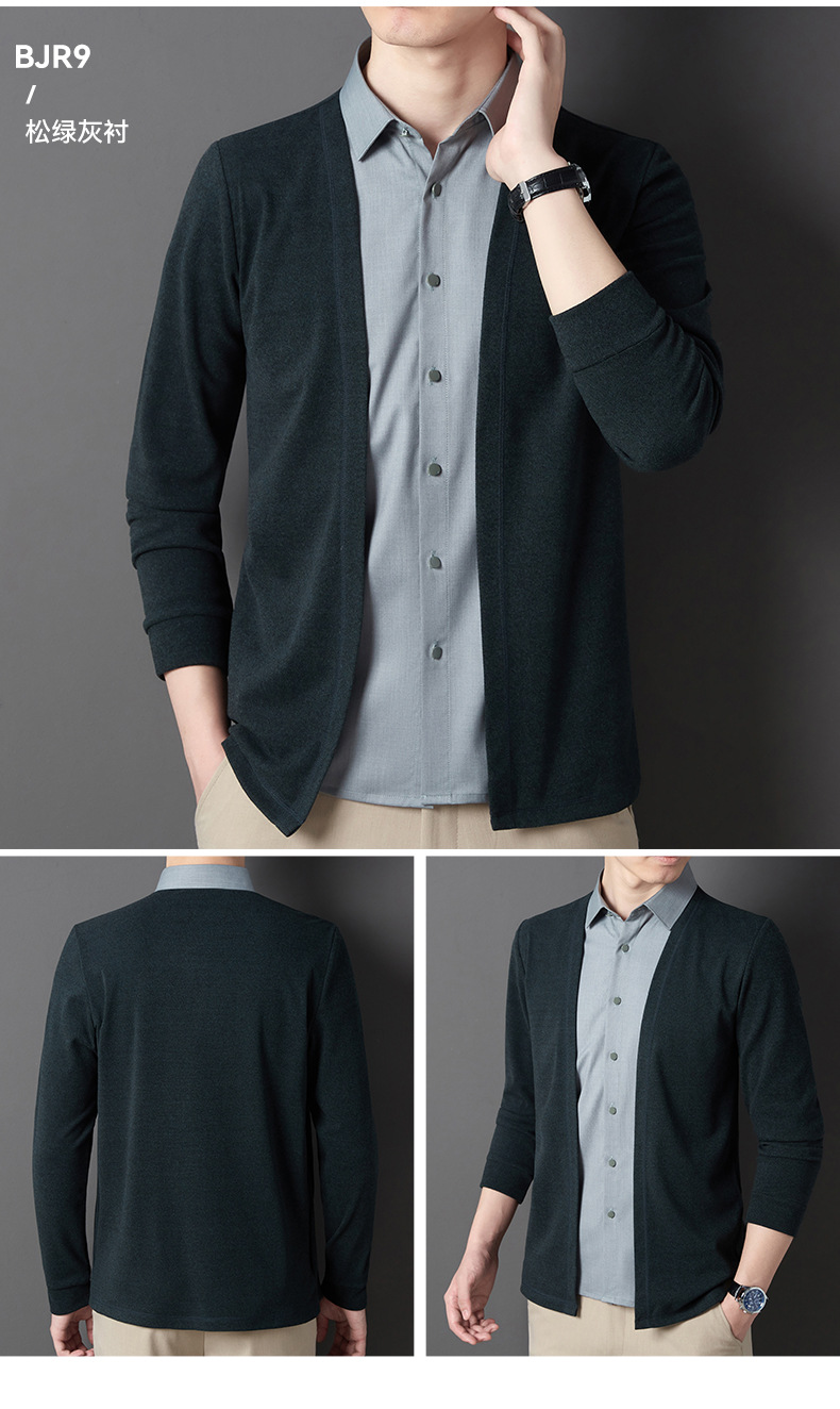 JD-BJRF5春秋新款男装假两件针织衫男士衬衫领开衫休闲打底毛衣男无痕压胶