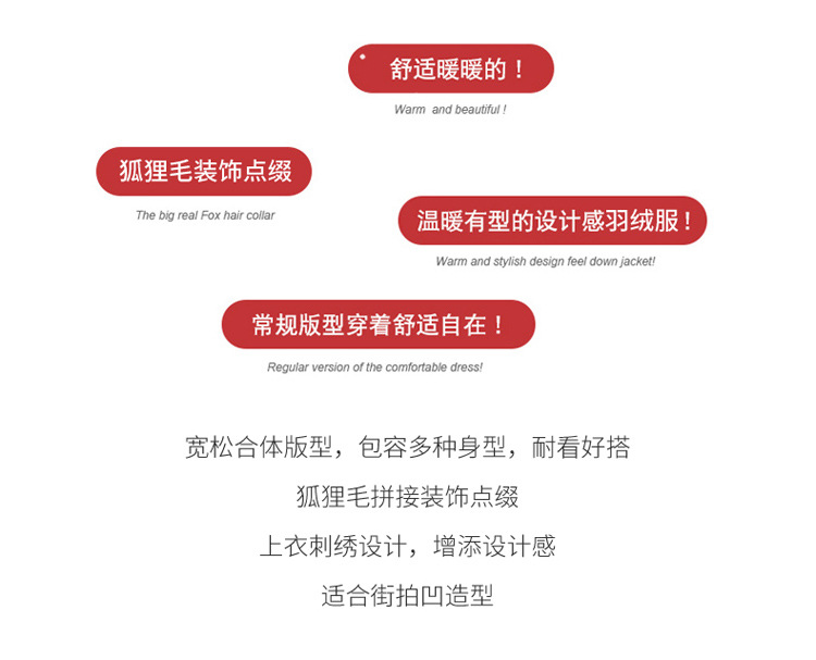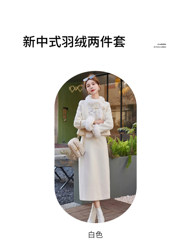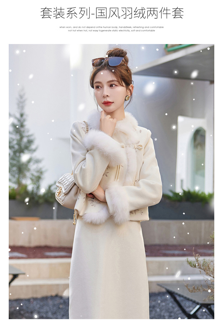 HR WY90339气质时尚刺绣羽绒服套装狐狸毛两件套裙 商品图4