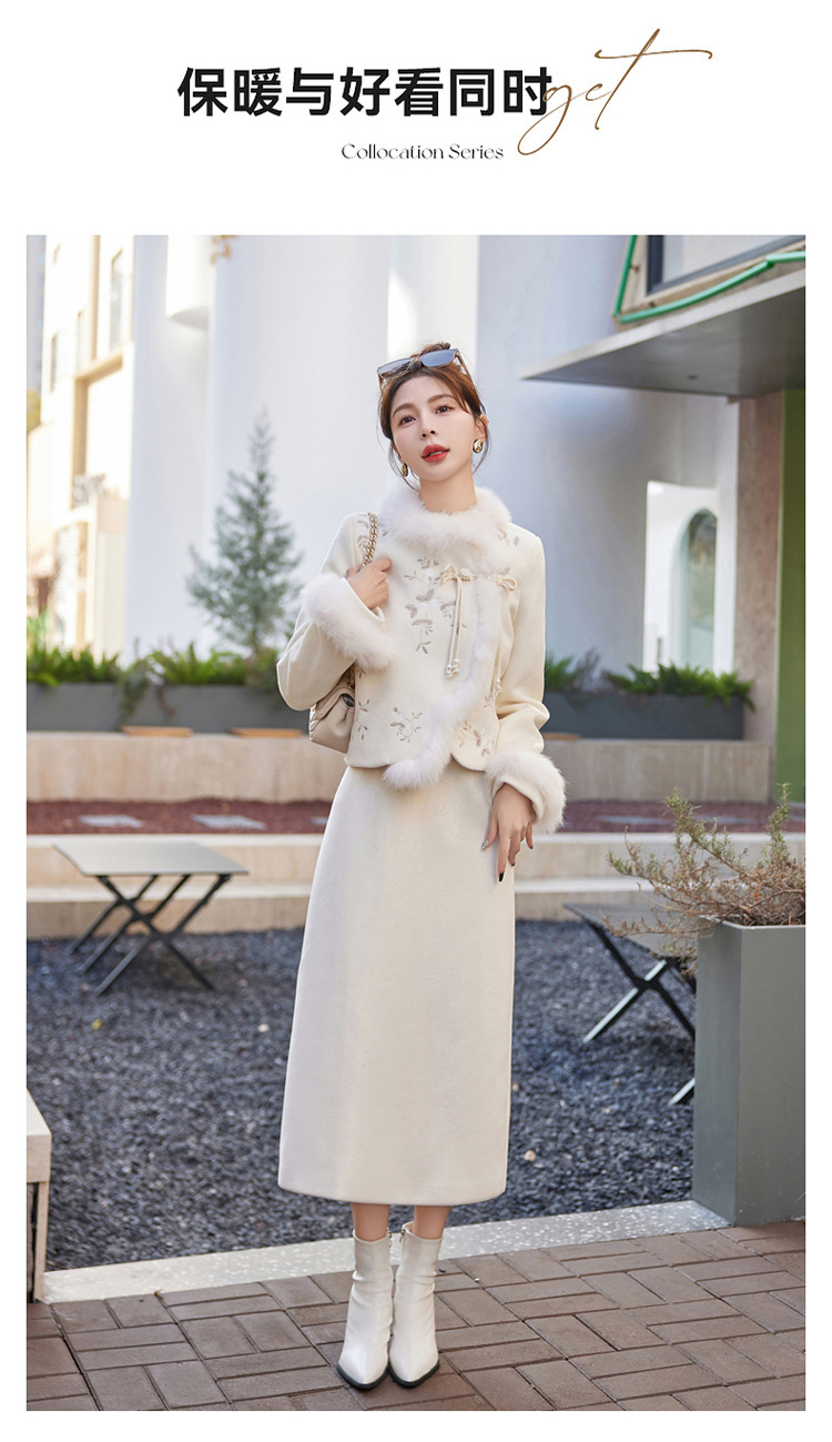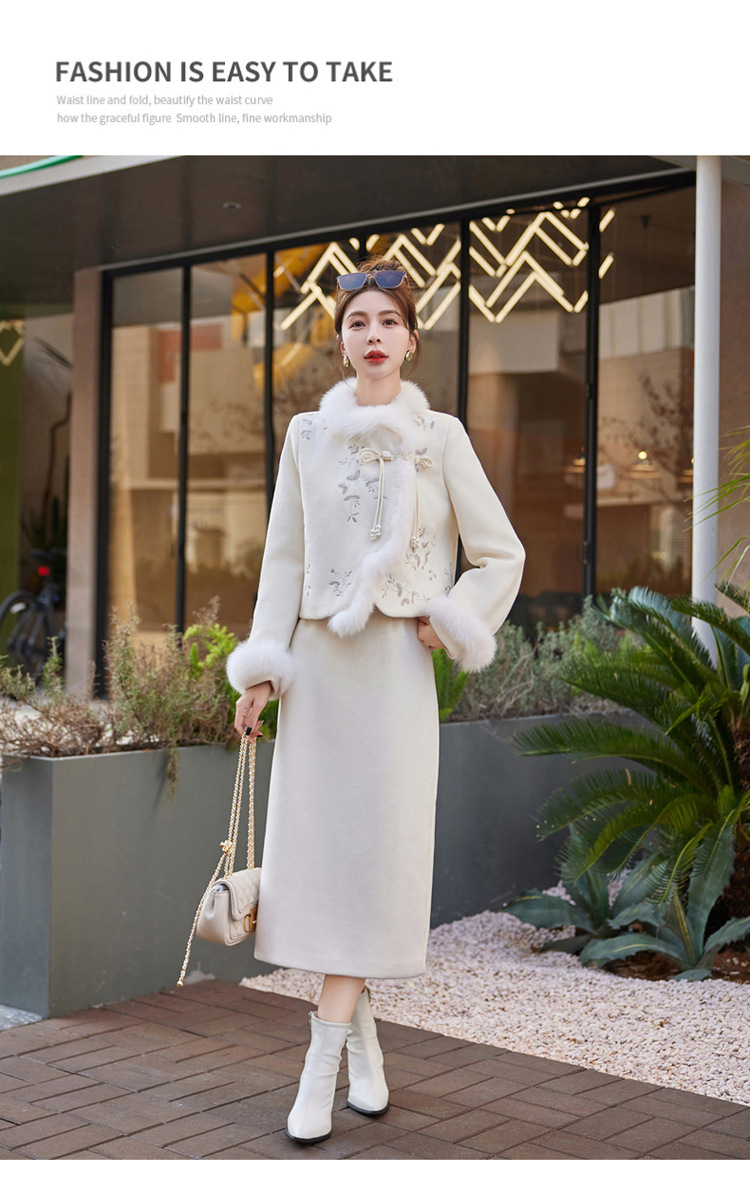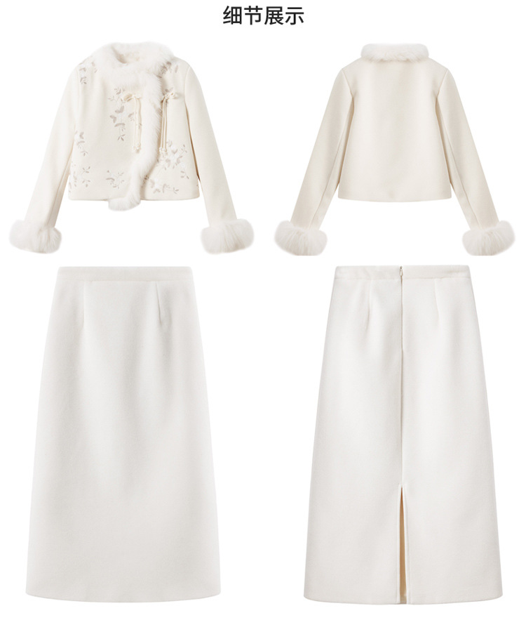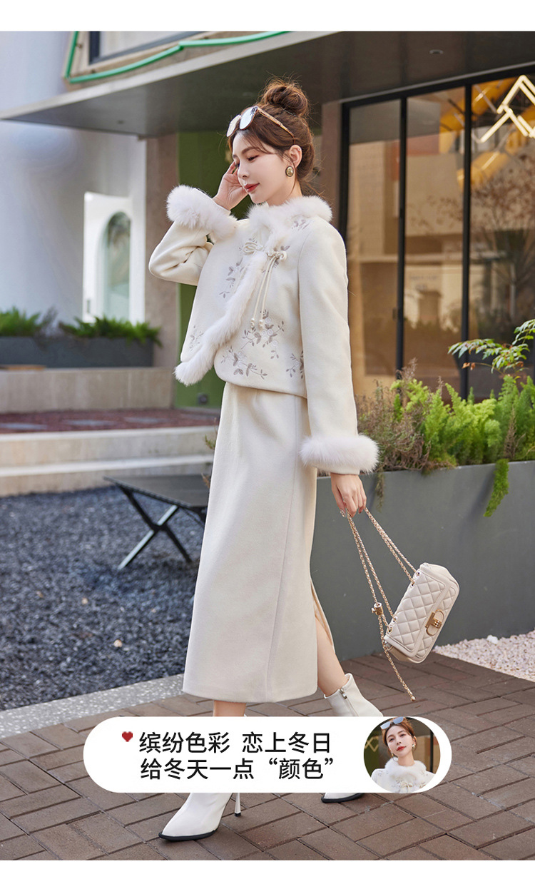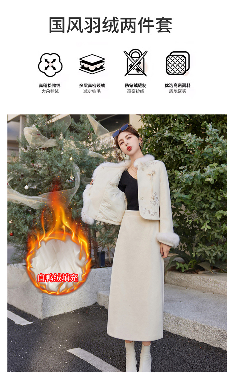 HR WY90339气质时尚刺绣羽绒服套装狐狸毛两件套裙 商品图3