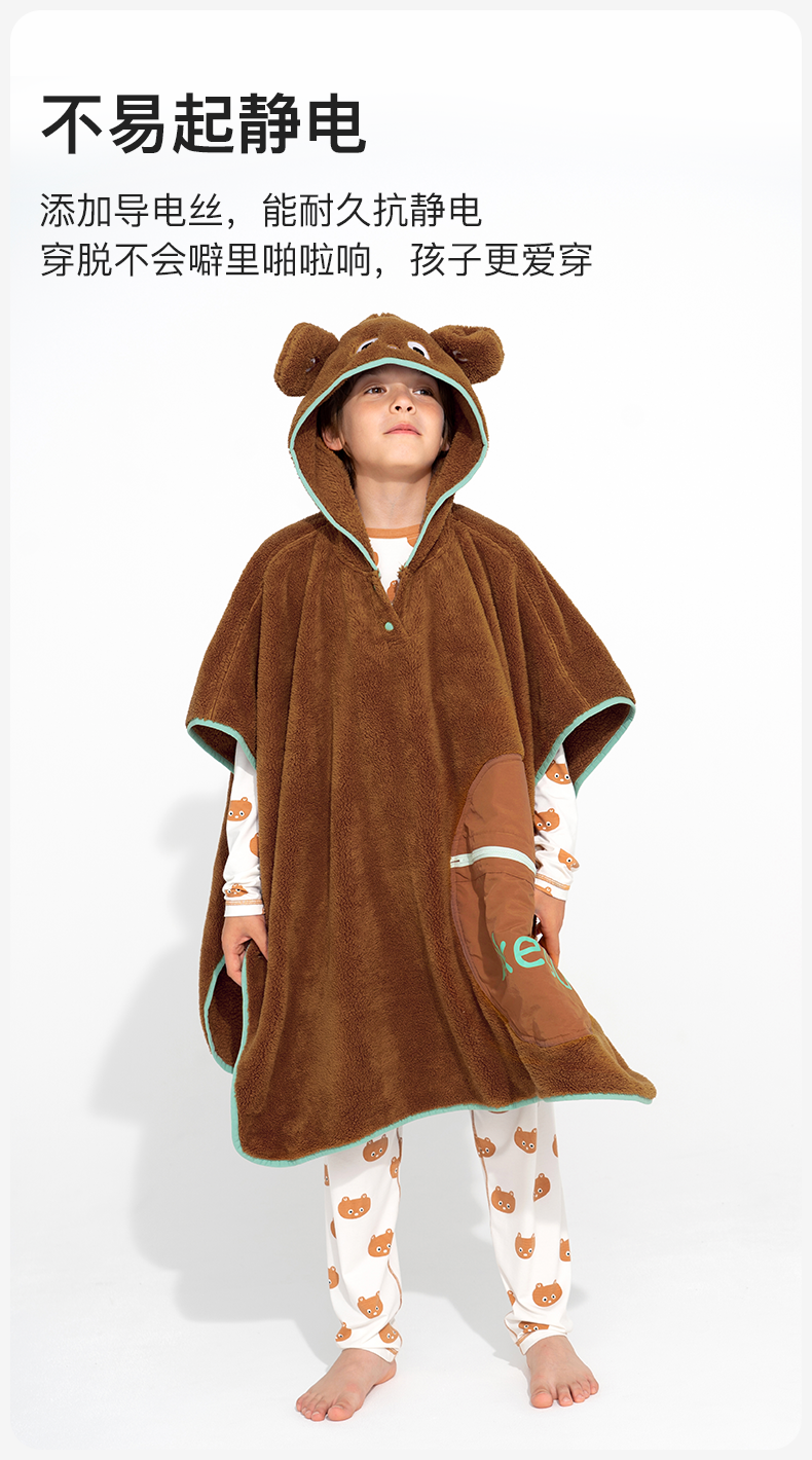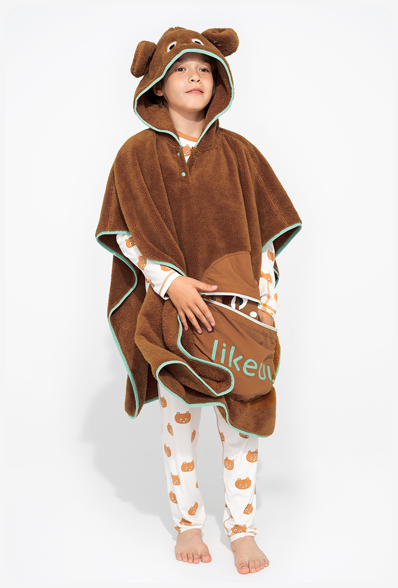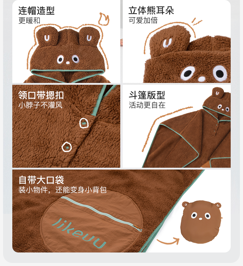 likeuu小熊连帽办公室家用盖毯抱枕两用亲子半边绒毯子柔软抗静电