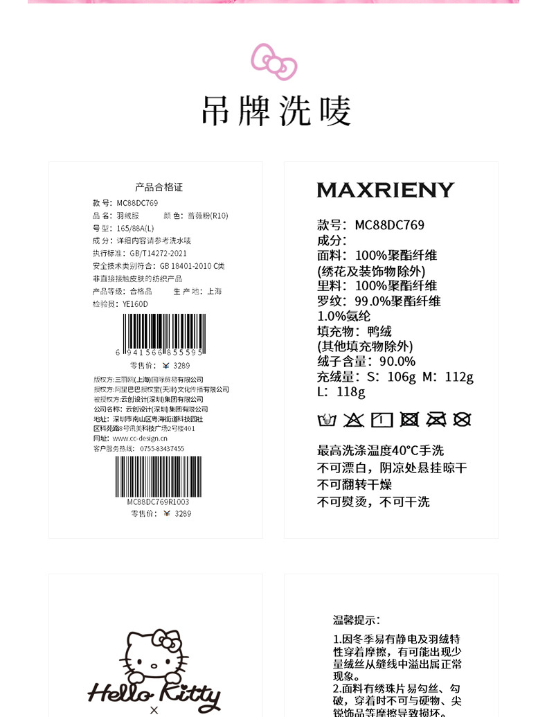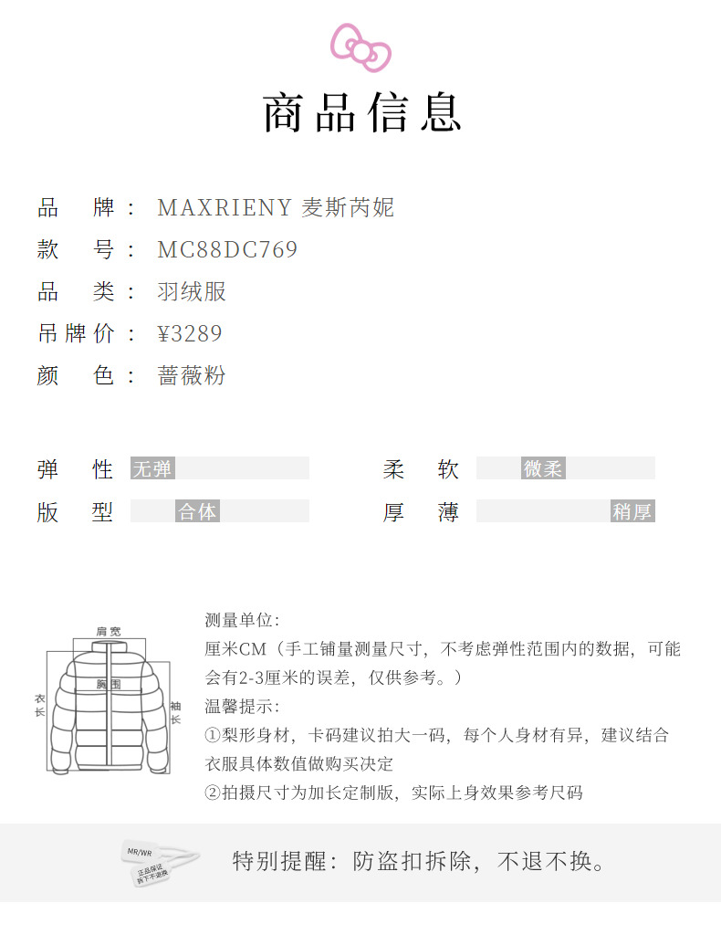 MAXRIENYkitty粉oversize宽松羽绒服(货号:MC88DC769)