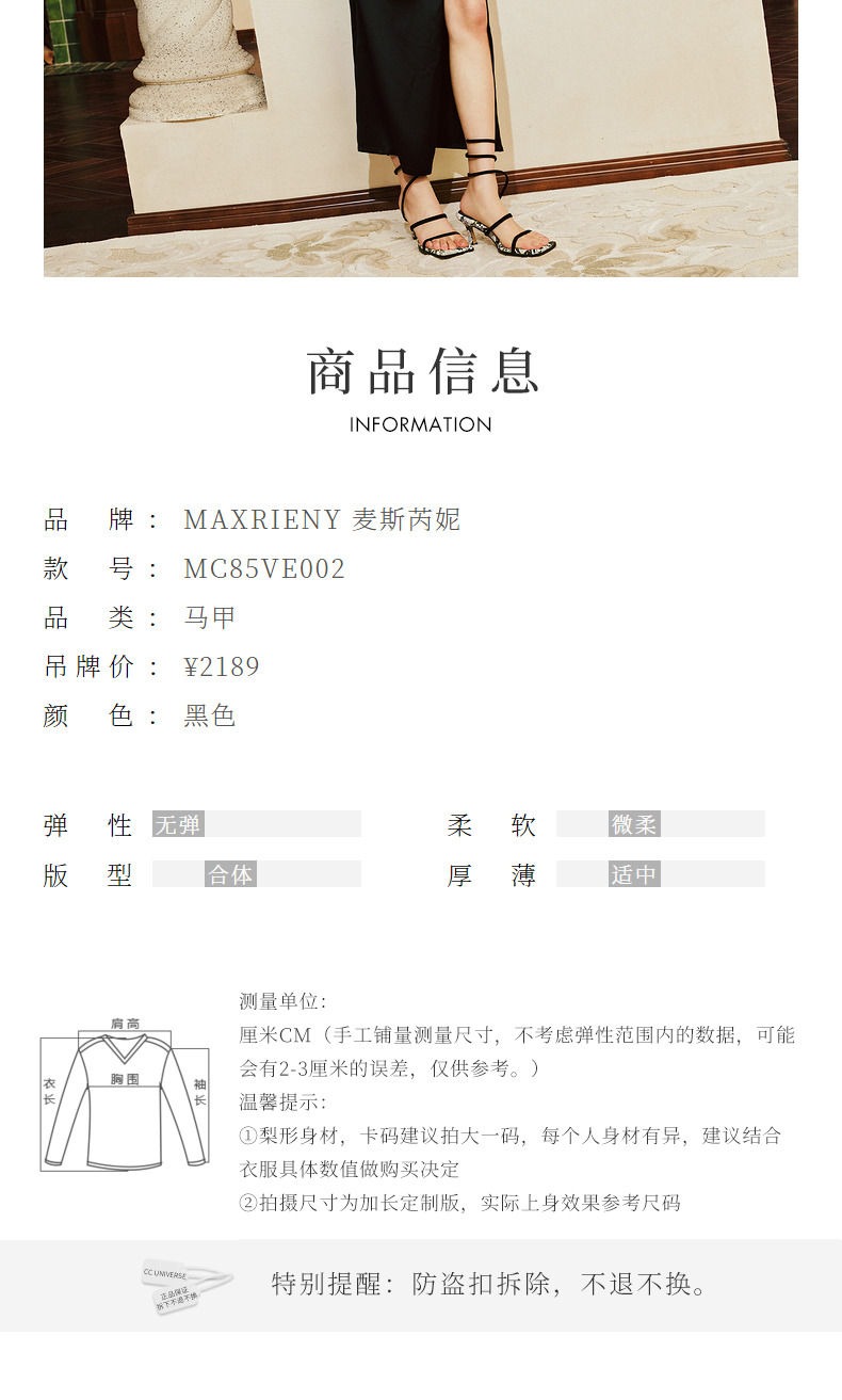 【东方玉兰-商场同款】MAXRIENY*复古时尚感廓形马夹背心2024(货号:MC85VE002)