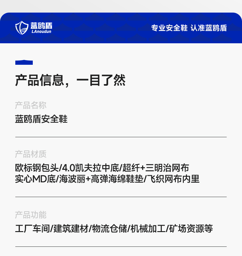 蓝鸥盾劳保鞋男防砸防刺实心MD底四季款欧标4.0凯夫拉科技升级轻便安全鞋