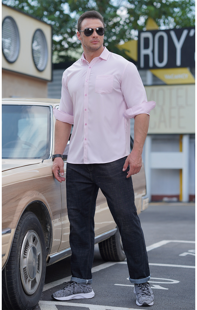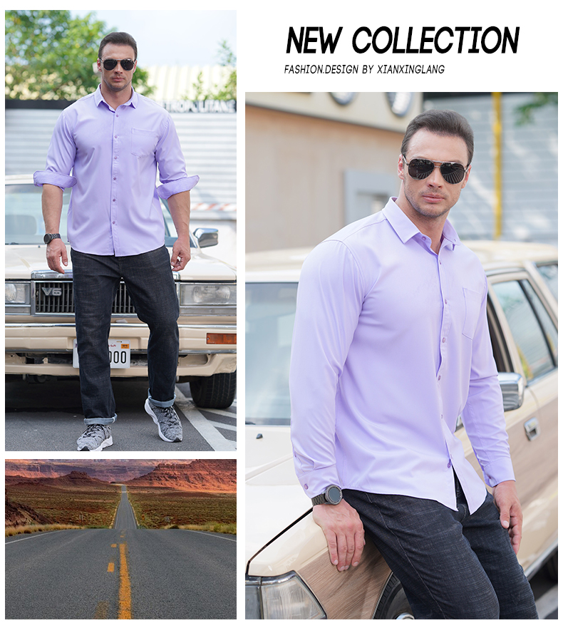 【圈】特大码【新款DM】大依优型大码男士加绒长袖衬衫加肥加大胖子宽松商务休闲长袖衬衣免烫