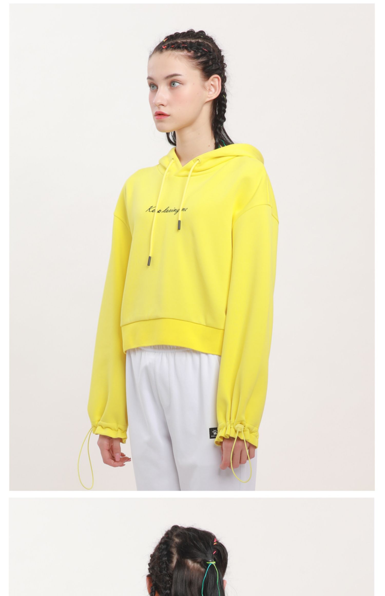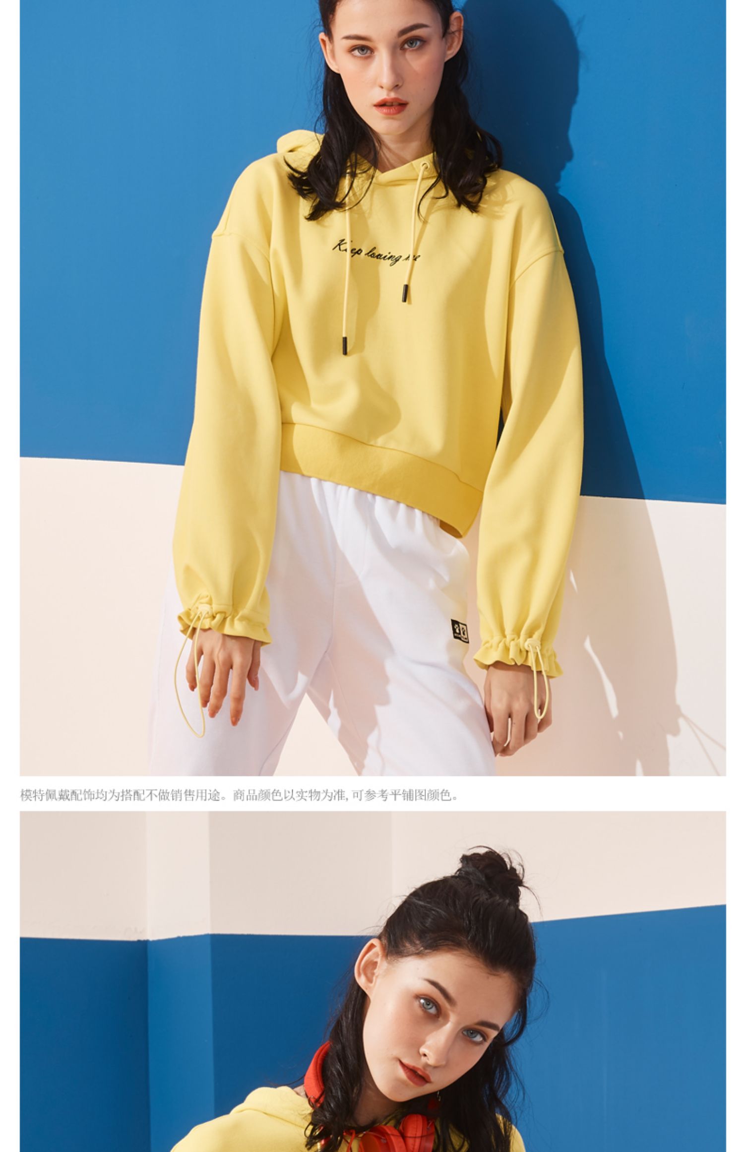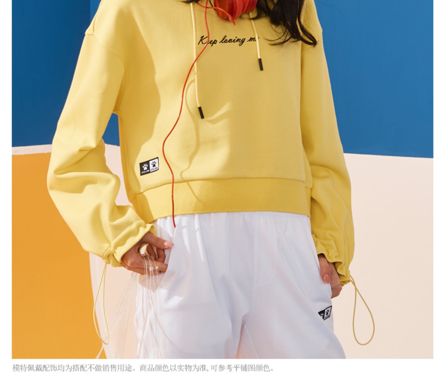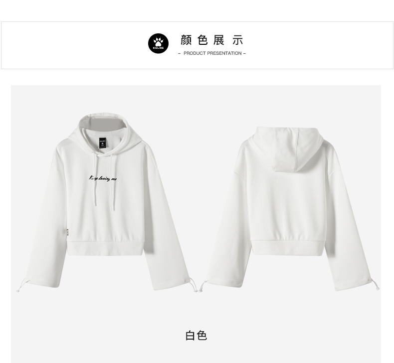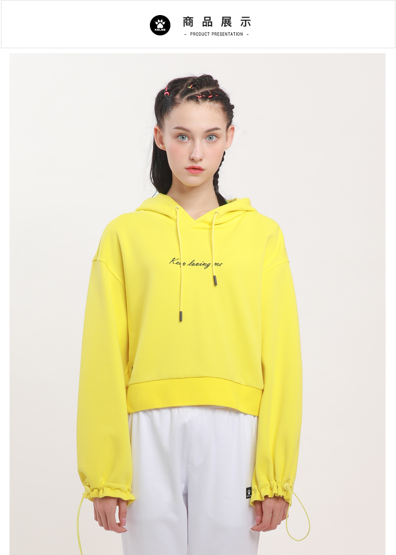 kelme卡尔美 夏季连帽套头木耳边字母卫衣女高腰宽松休闲上衣