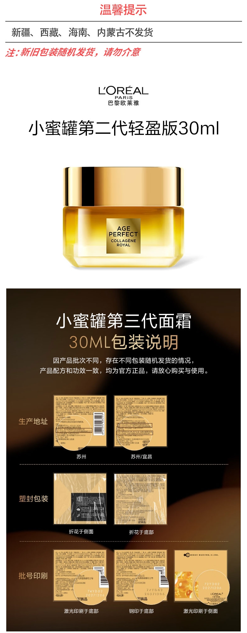 L'OREAL欧莱雅 金致臻颜花蜜胶原轻乳霜30ml 6941594583293