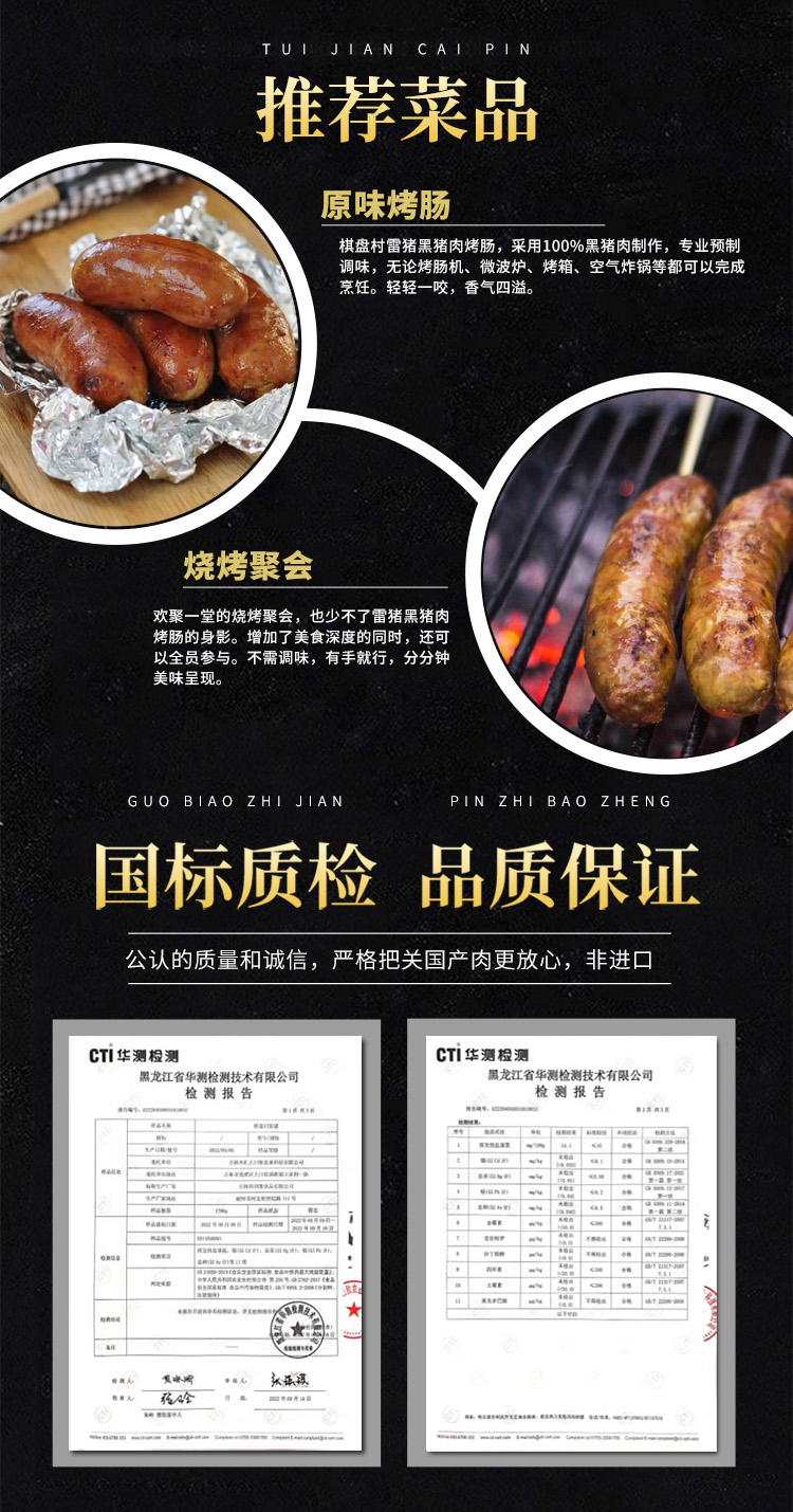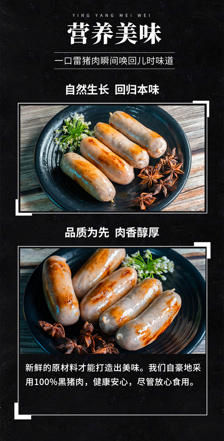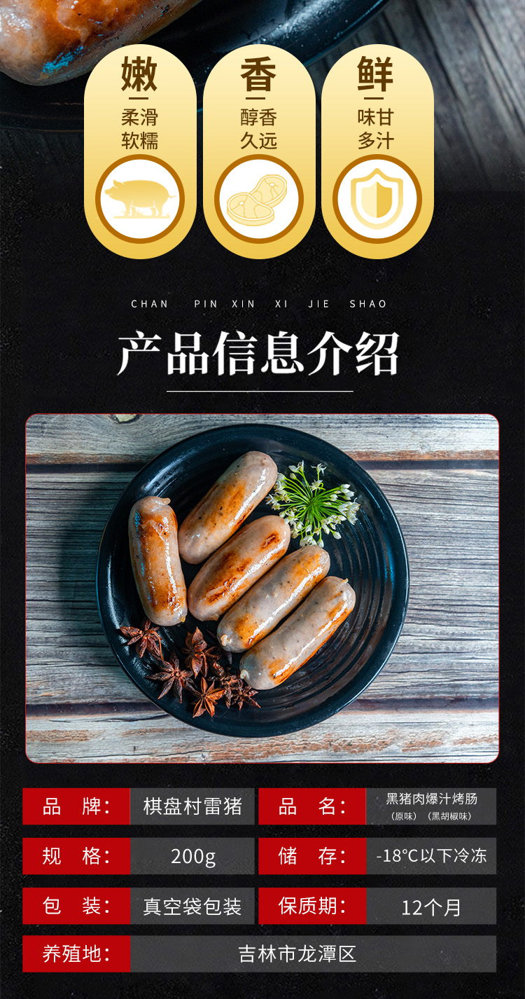 【黑猪肉含量 ≥95%】0抗生素黑猪肉爆汁烤肠 四盒装 400g/盒 *8根(买四盒最优惠)JL