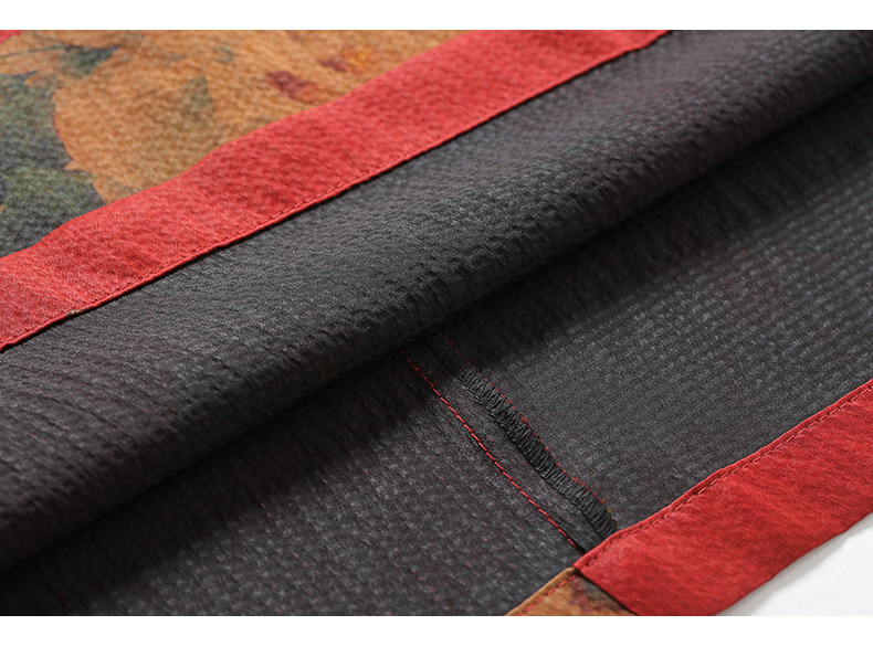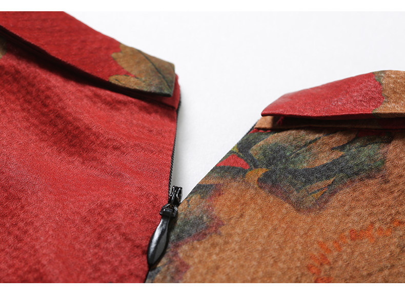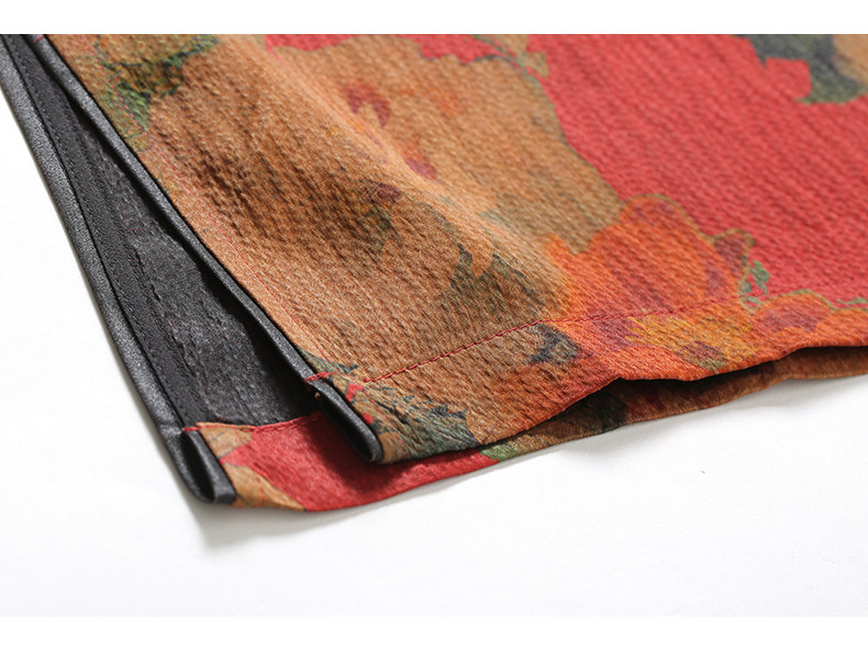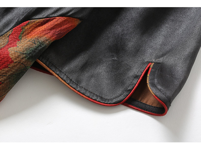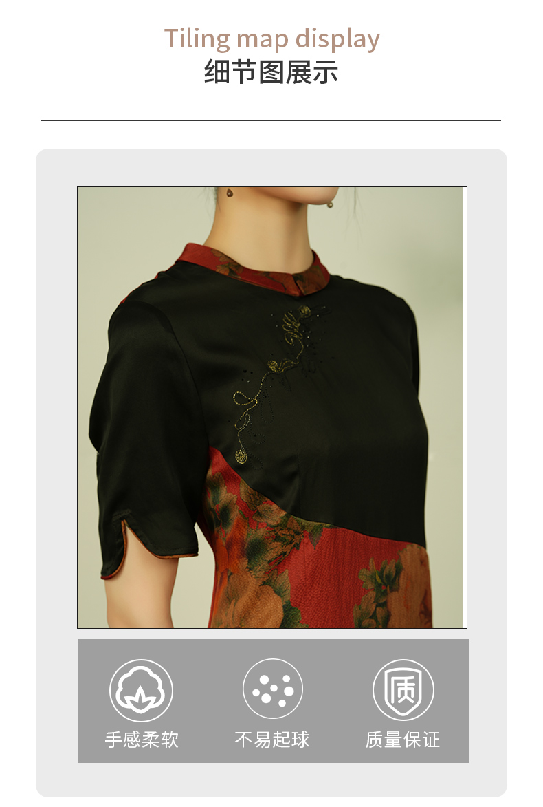 【红色复古花】【香云纱】乔万尼新款夏装重磅真丝连衣裙拼接复古印花桑蚕丝长裙ES2E123