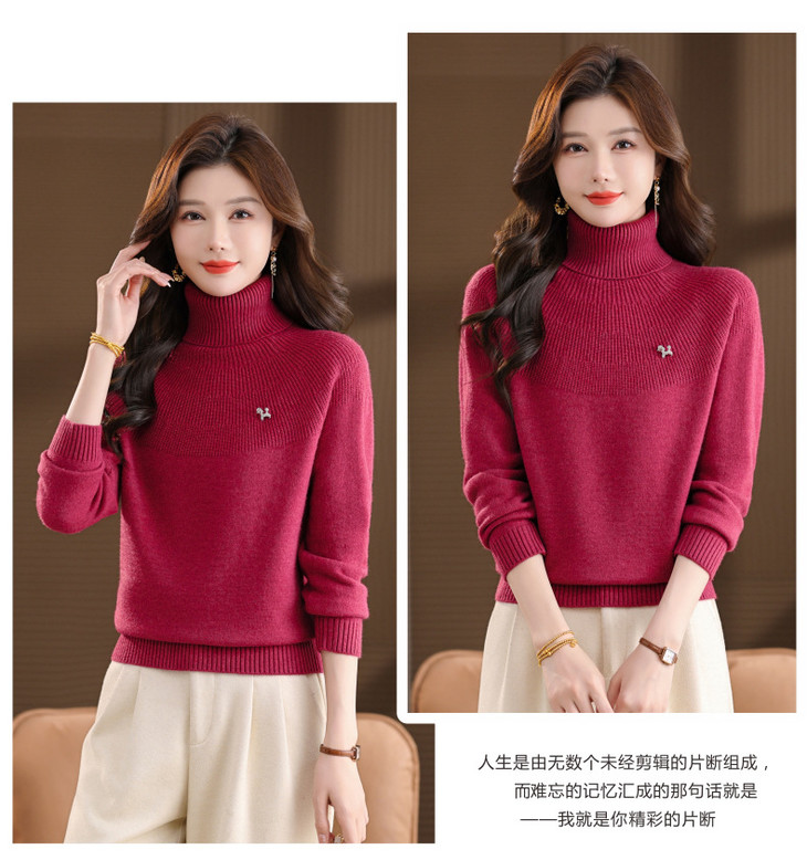 高领针织打底衫女士秋冬,高级感洋气时尚内搭上衣短款毛衣CC-101-8136