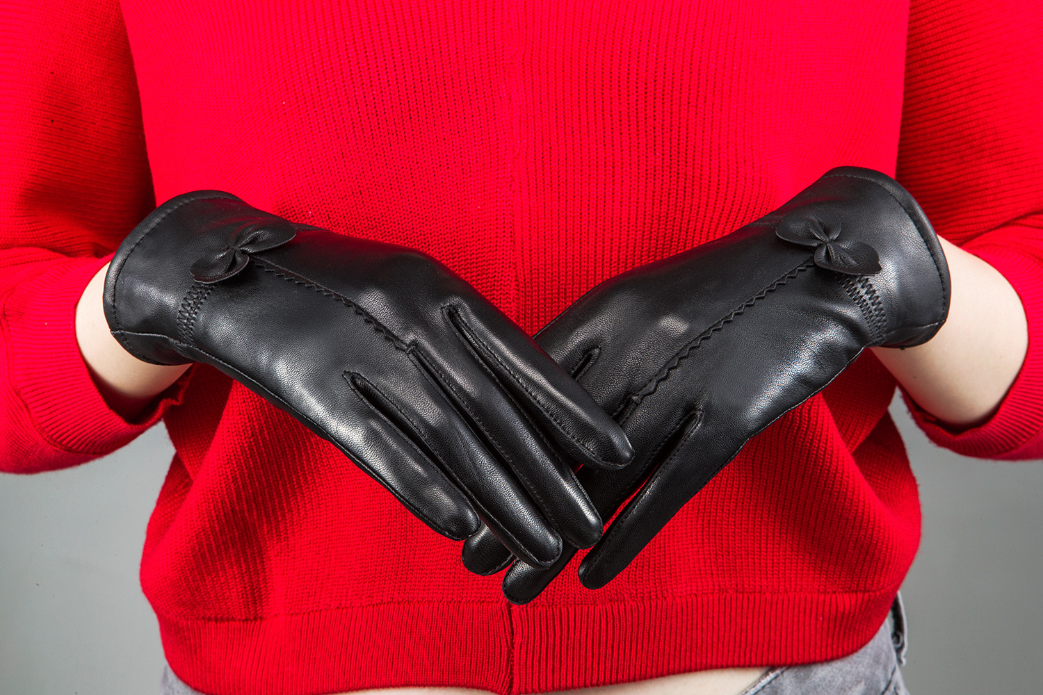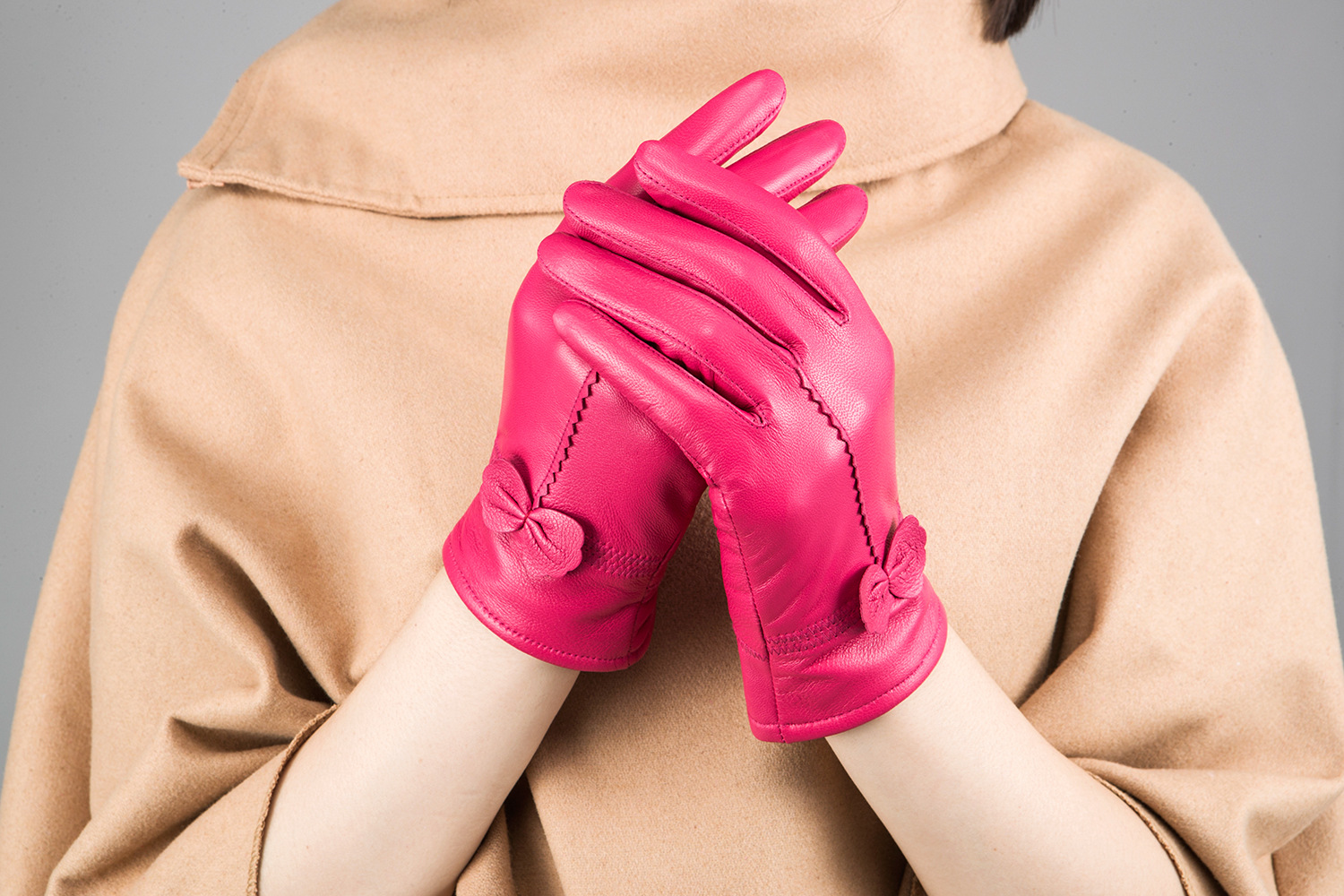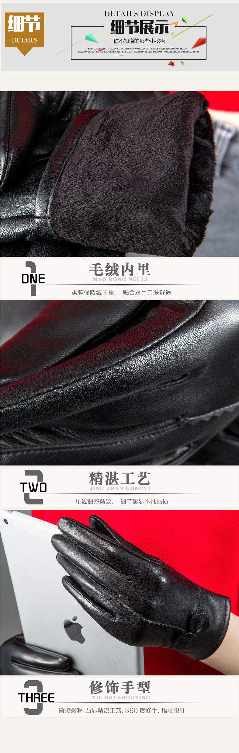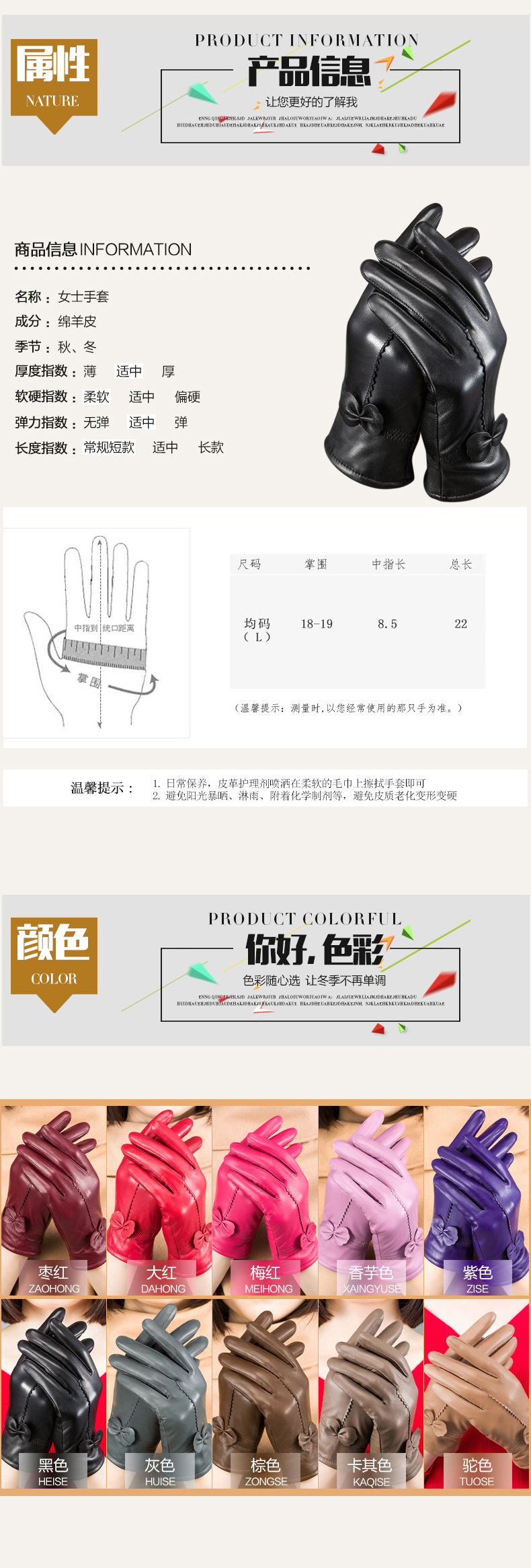 JZ-手套冬季女士保暖手套户外羊皮手套加绒加厚海宁手套厂家
