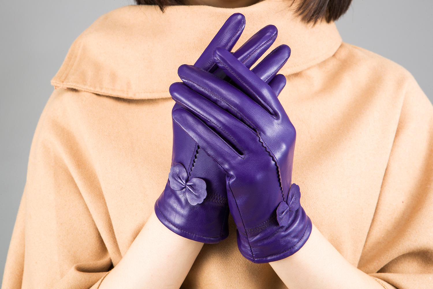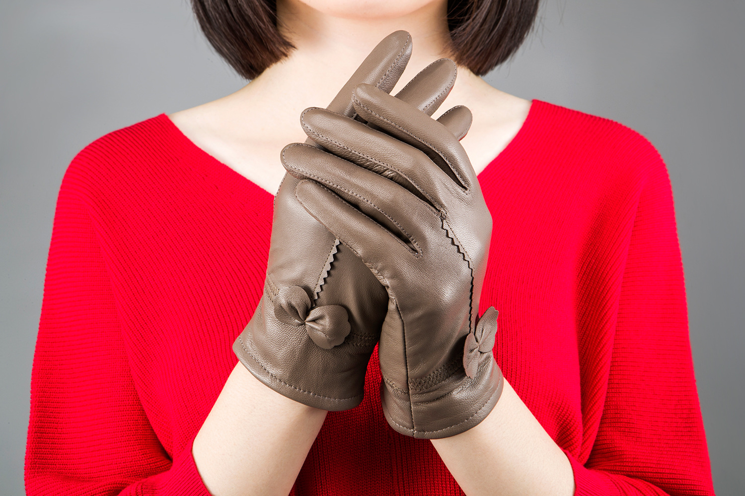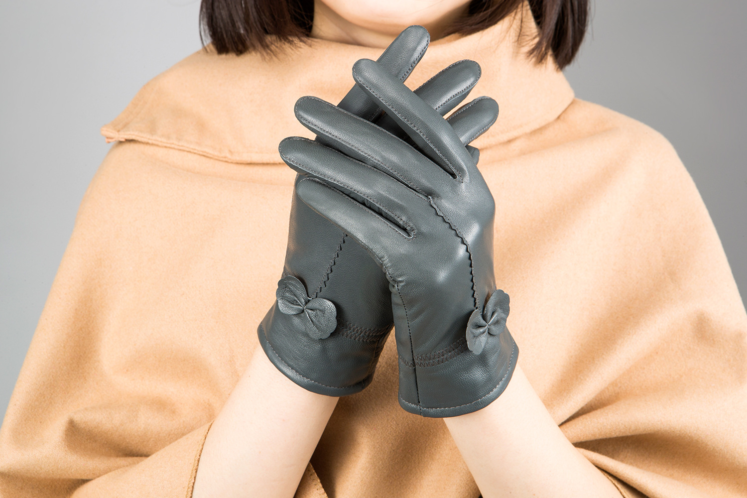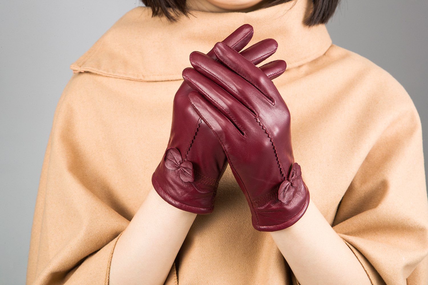 JZ-手套冬季女士保暖手套户外羊皮手套加绒加厚海宁手套厂家