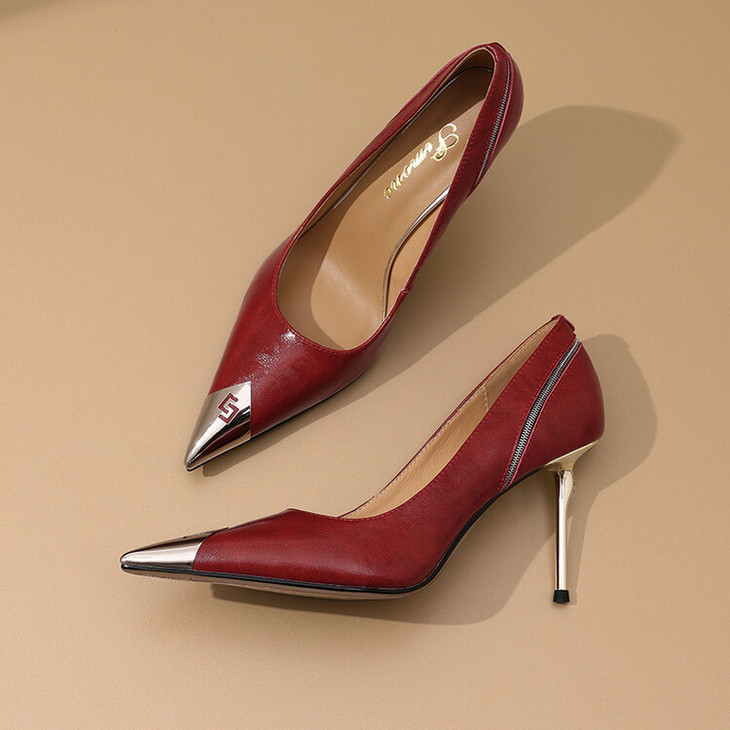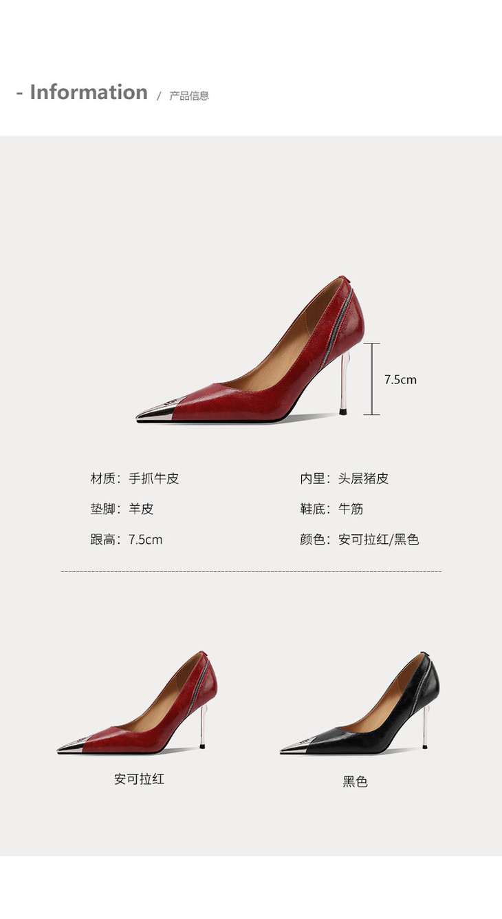 【预售7天】复古欧美风宴会女鞋,细跟金属尖头浅口单鞋CX&CX0811-3