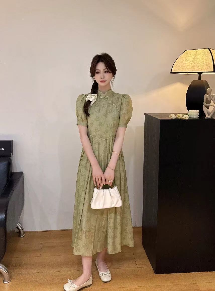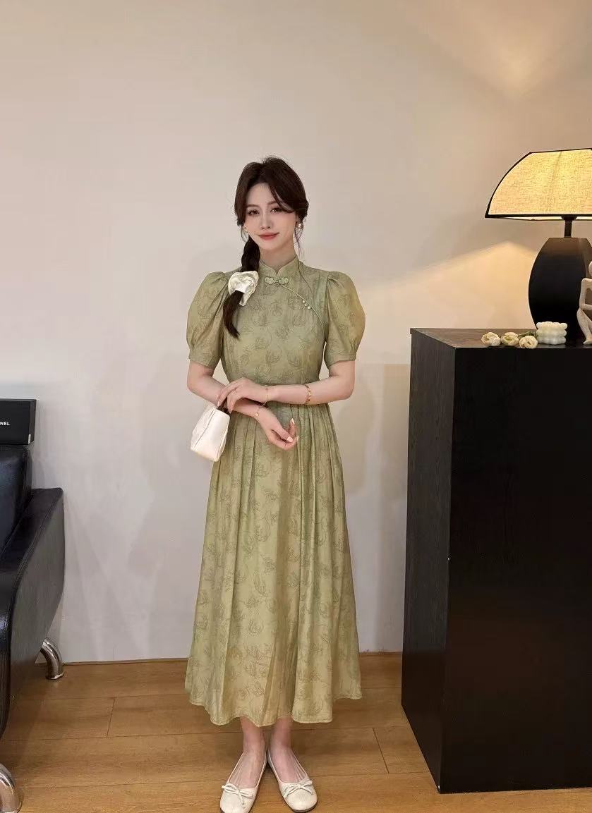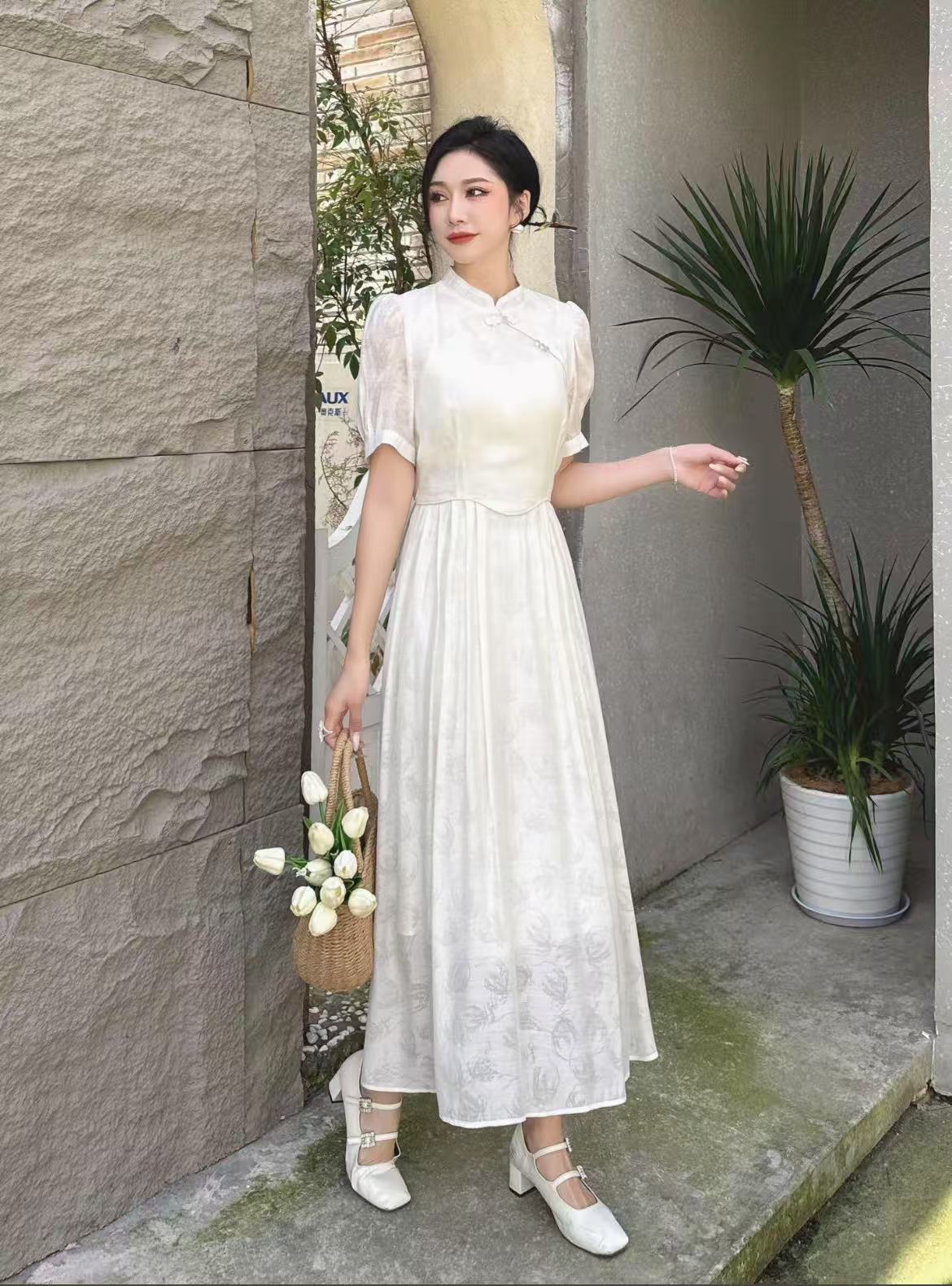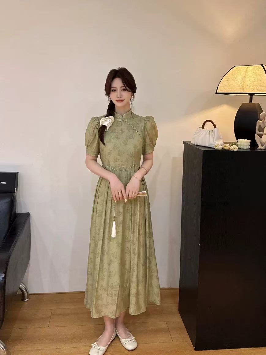 【必入推荐】 吊牌价1688元【MYBL】8628新中式国风高级感暗花过膝长款连衣裙-喜出