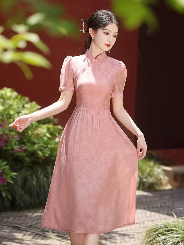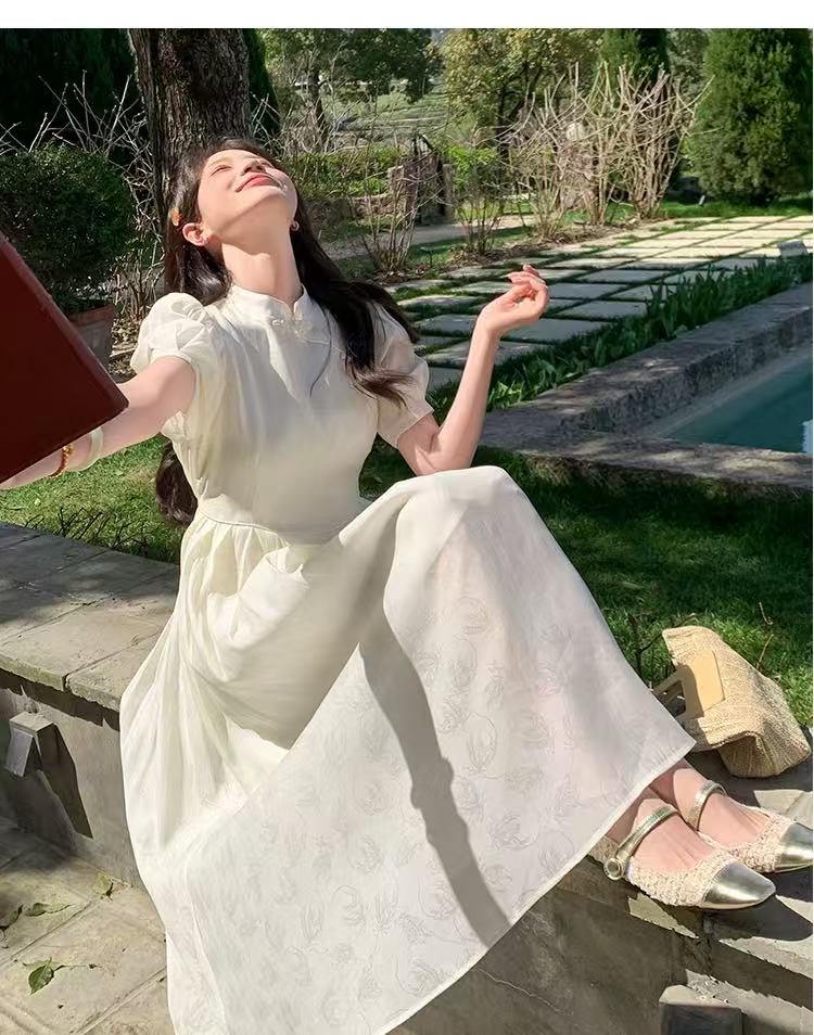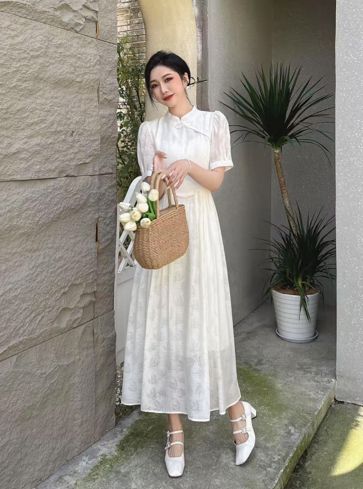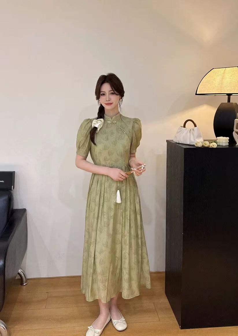 【必入推荐】 吊牌价1688元【MYBL】8628新中式国风高级感暗花过膝长款连衣裙-喜出