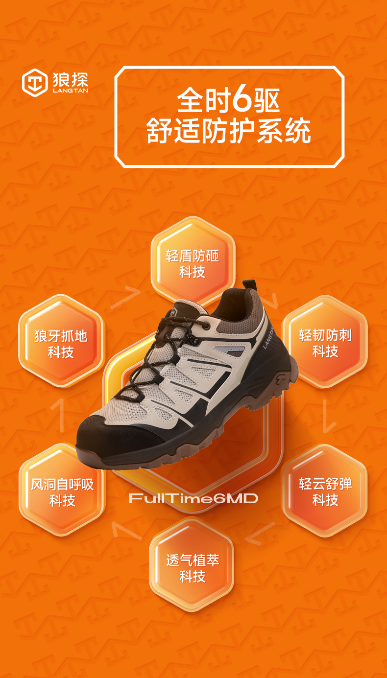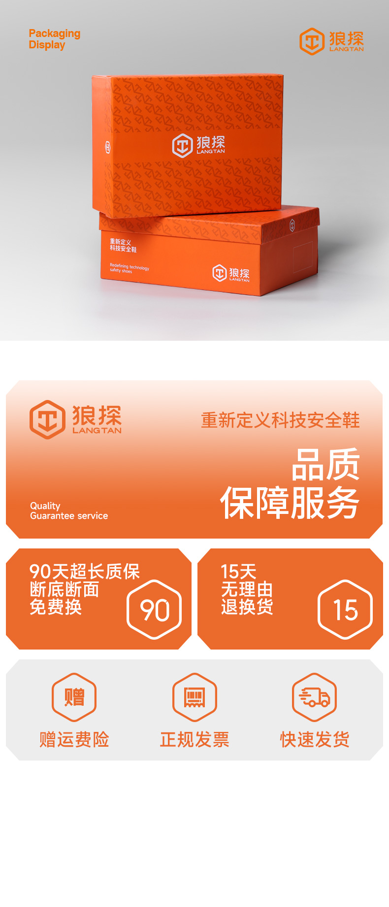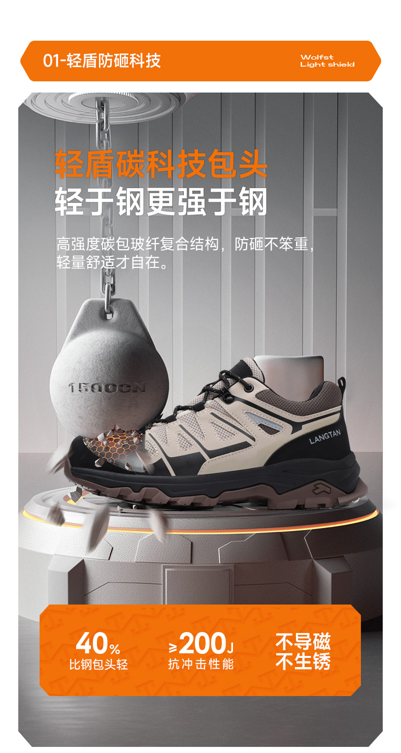 狼探新品四季款劳保鞋男防砸碳包玻纤防刺高分子聚乙烯实心MD底耐磨抗造