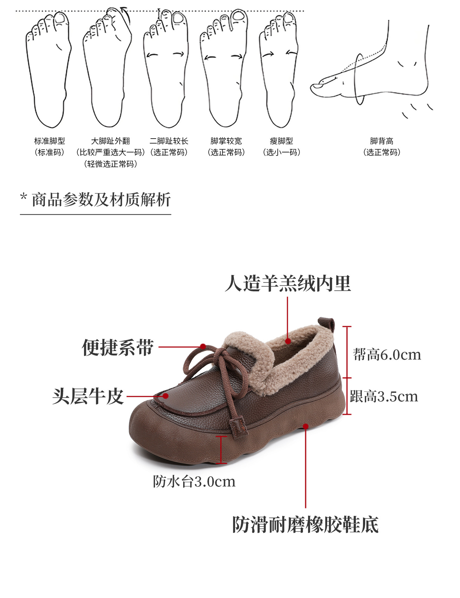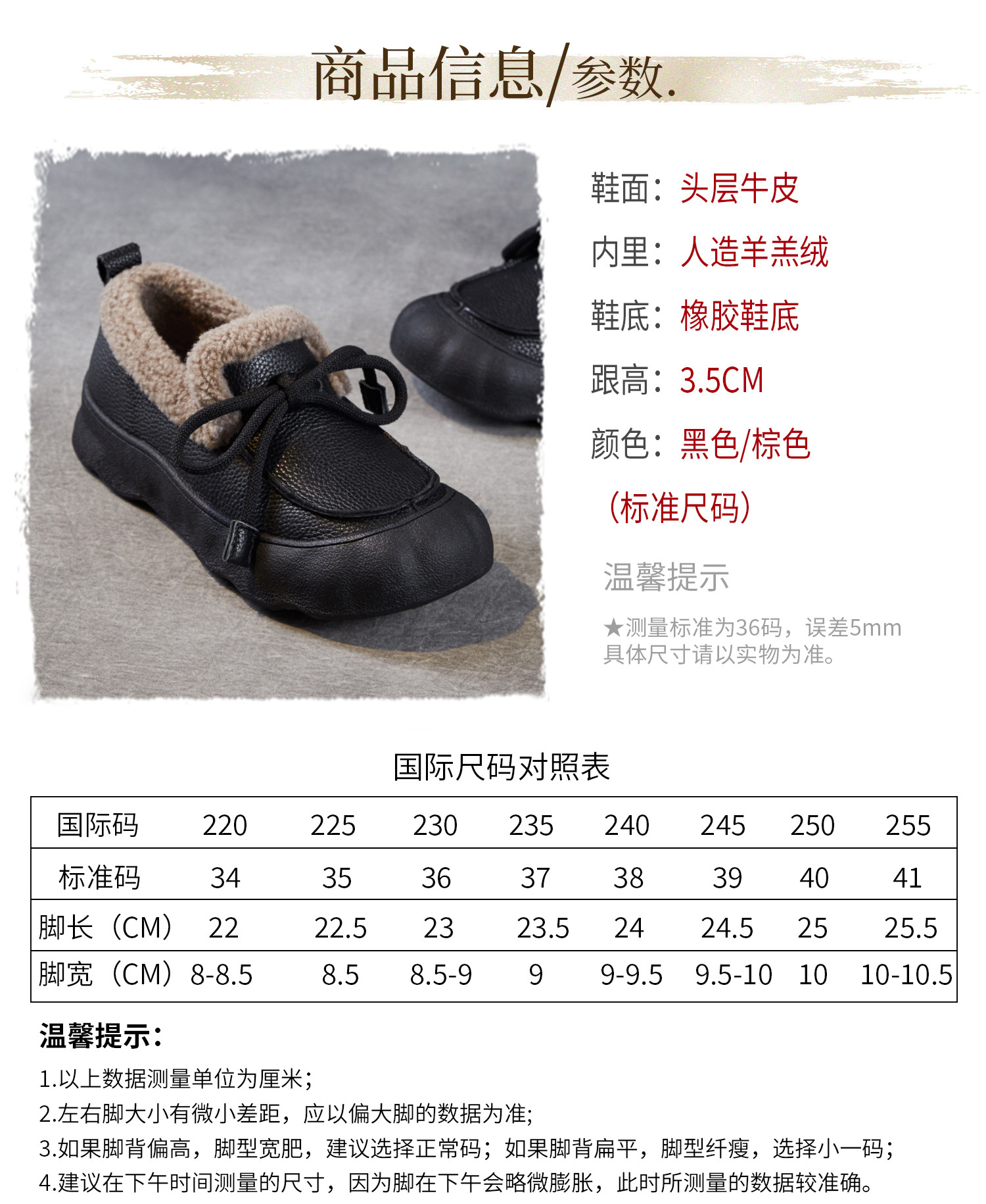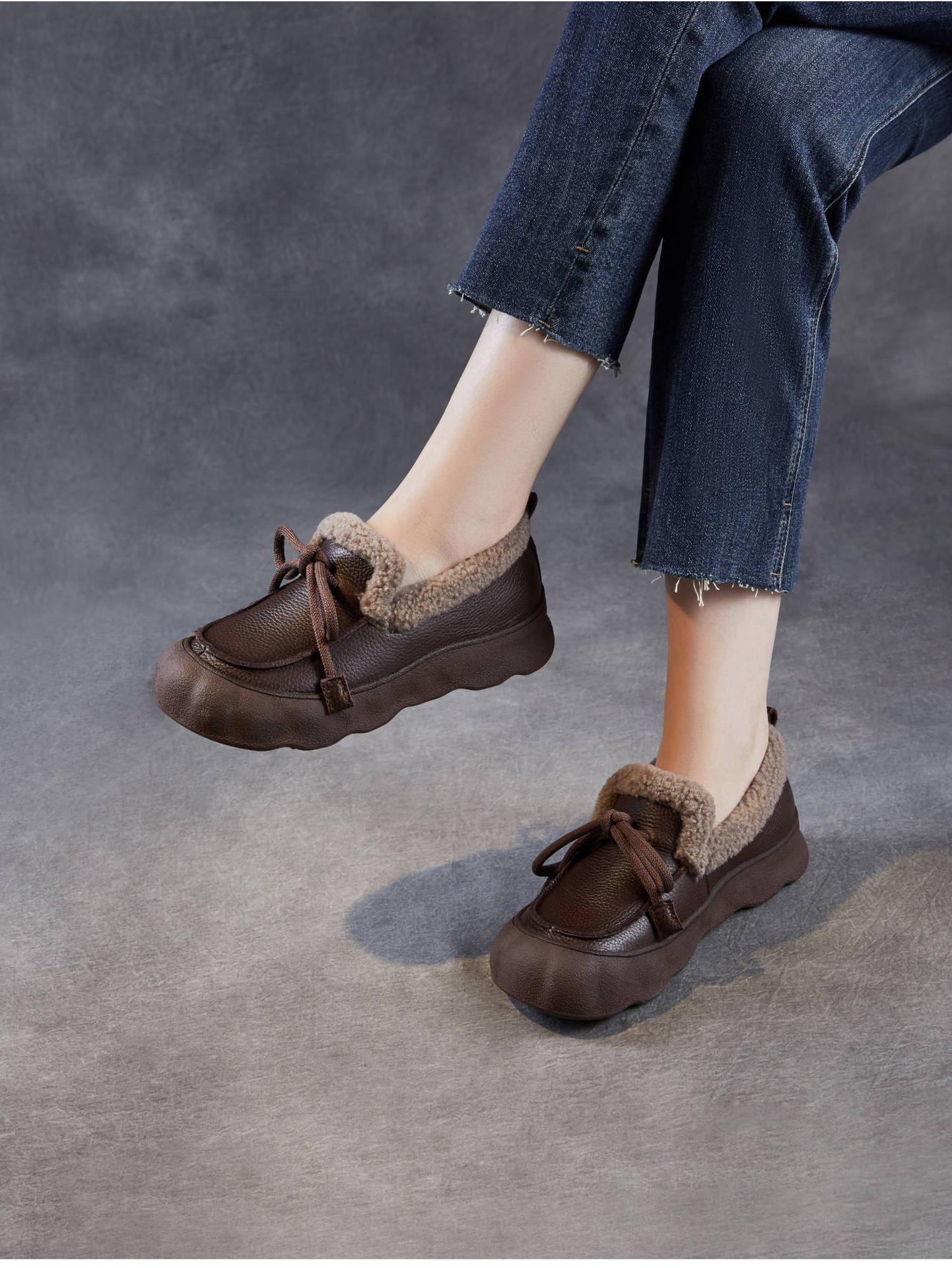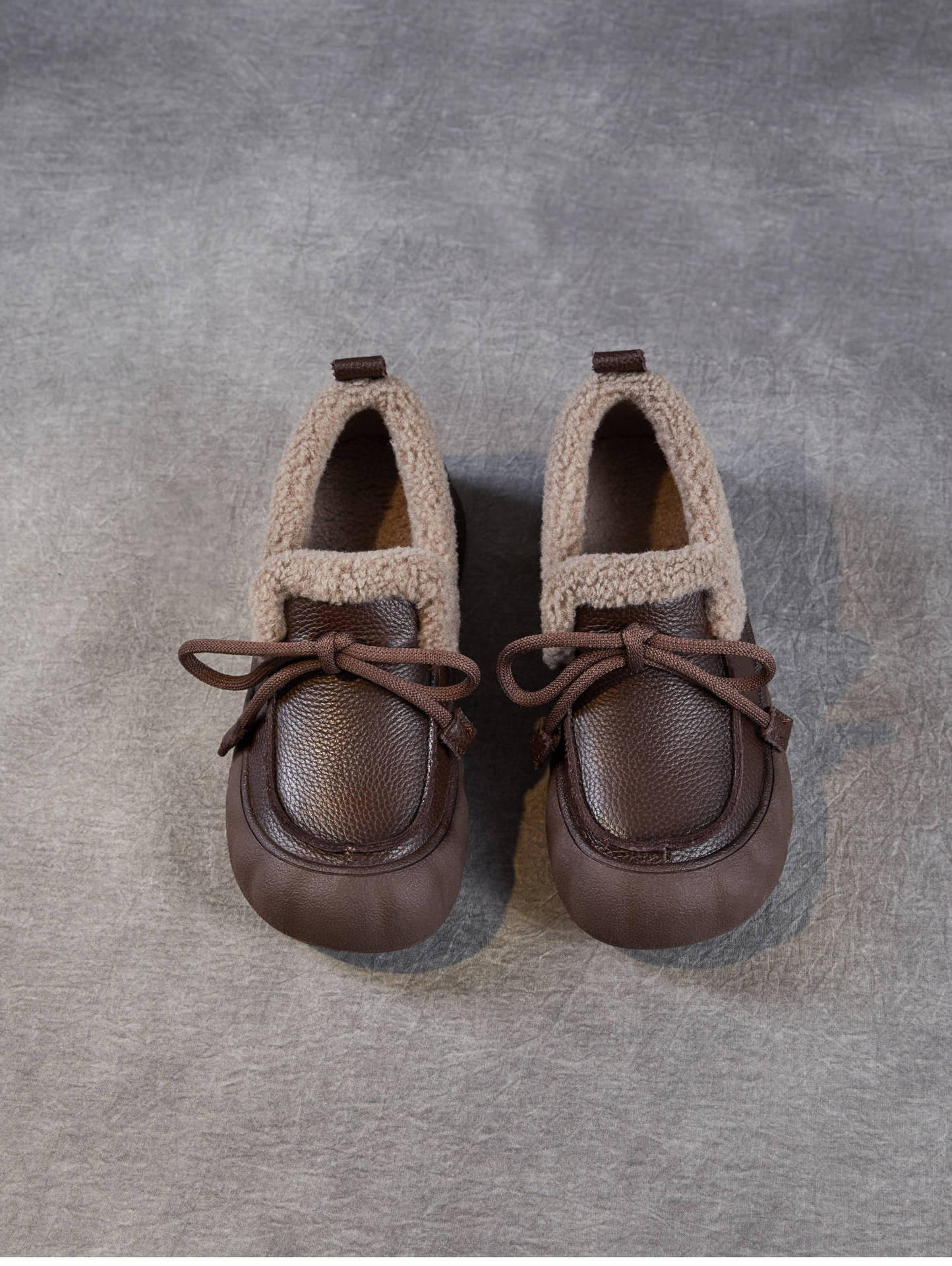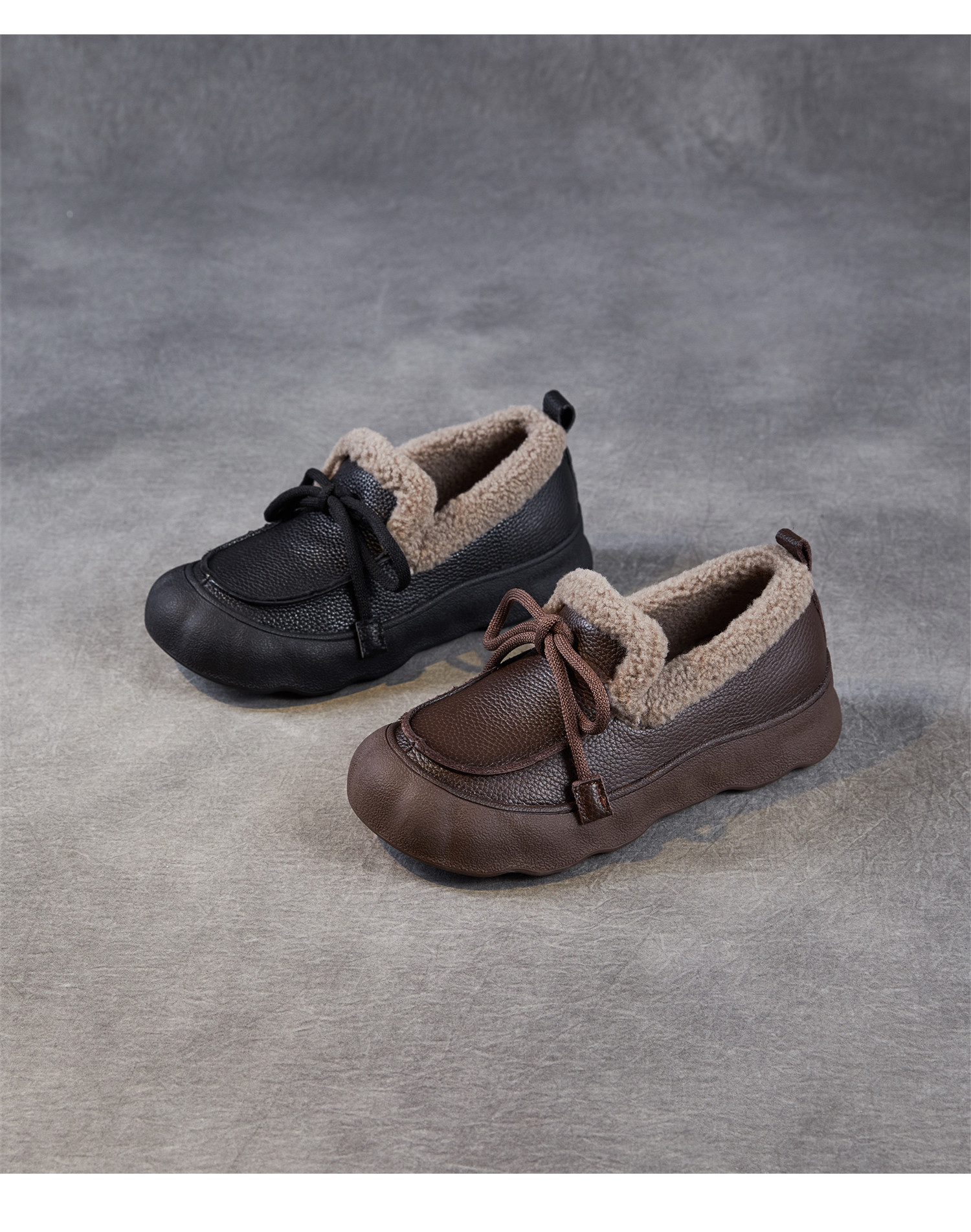 加绒保暖系带厚底休闲头层牛皮,复古平底毛毛棉鞋ZM258718
