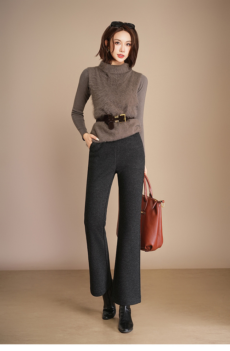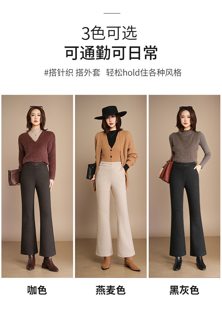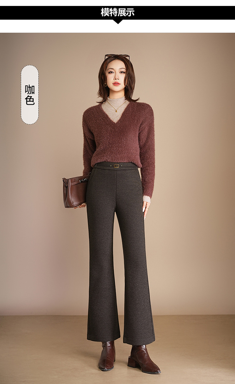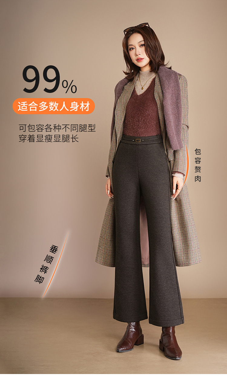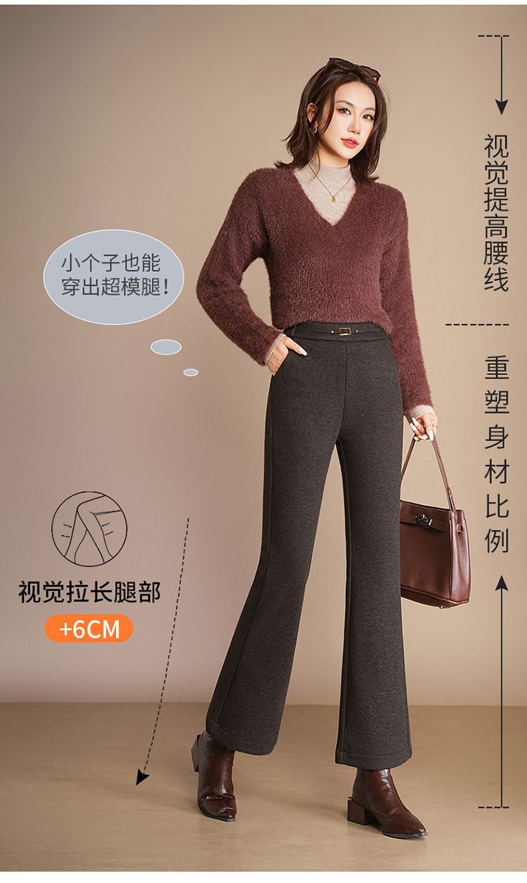 小个子加绒时尚羊毛呢微喇裤,松紧高腰显瘦显腿长直筒MYX2805