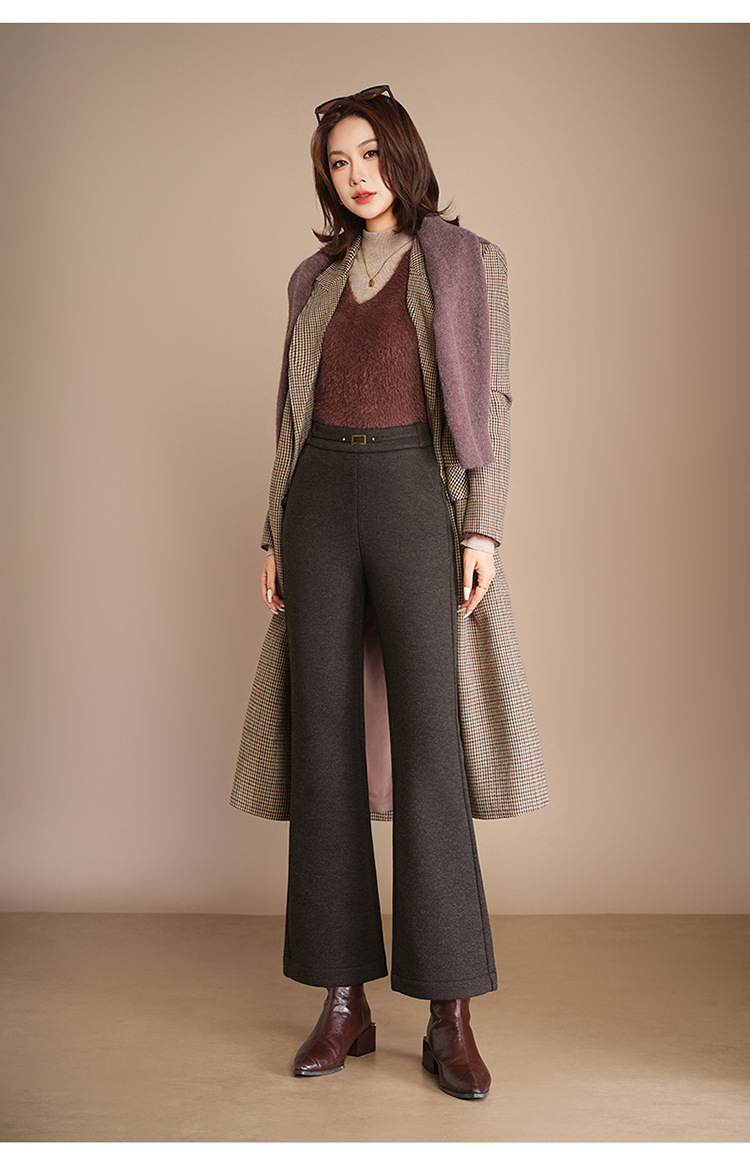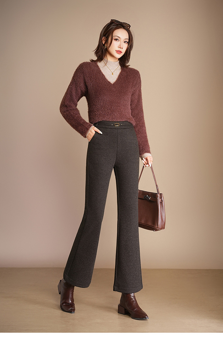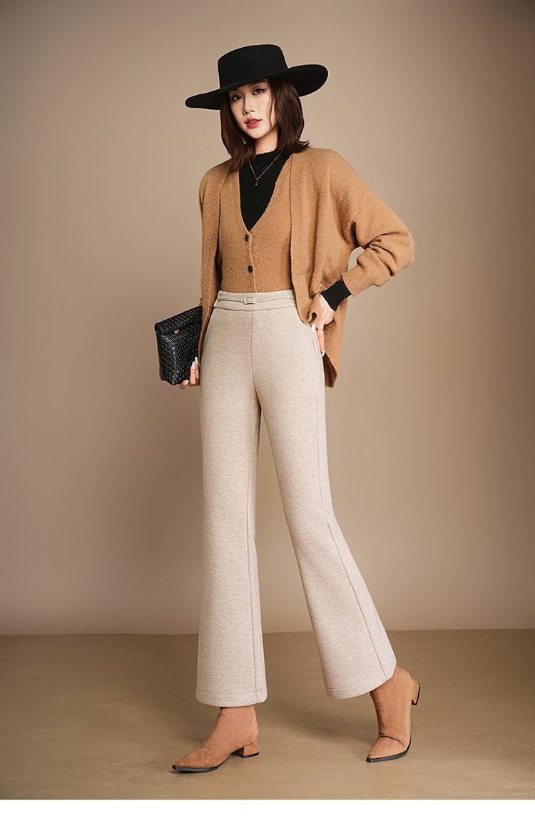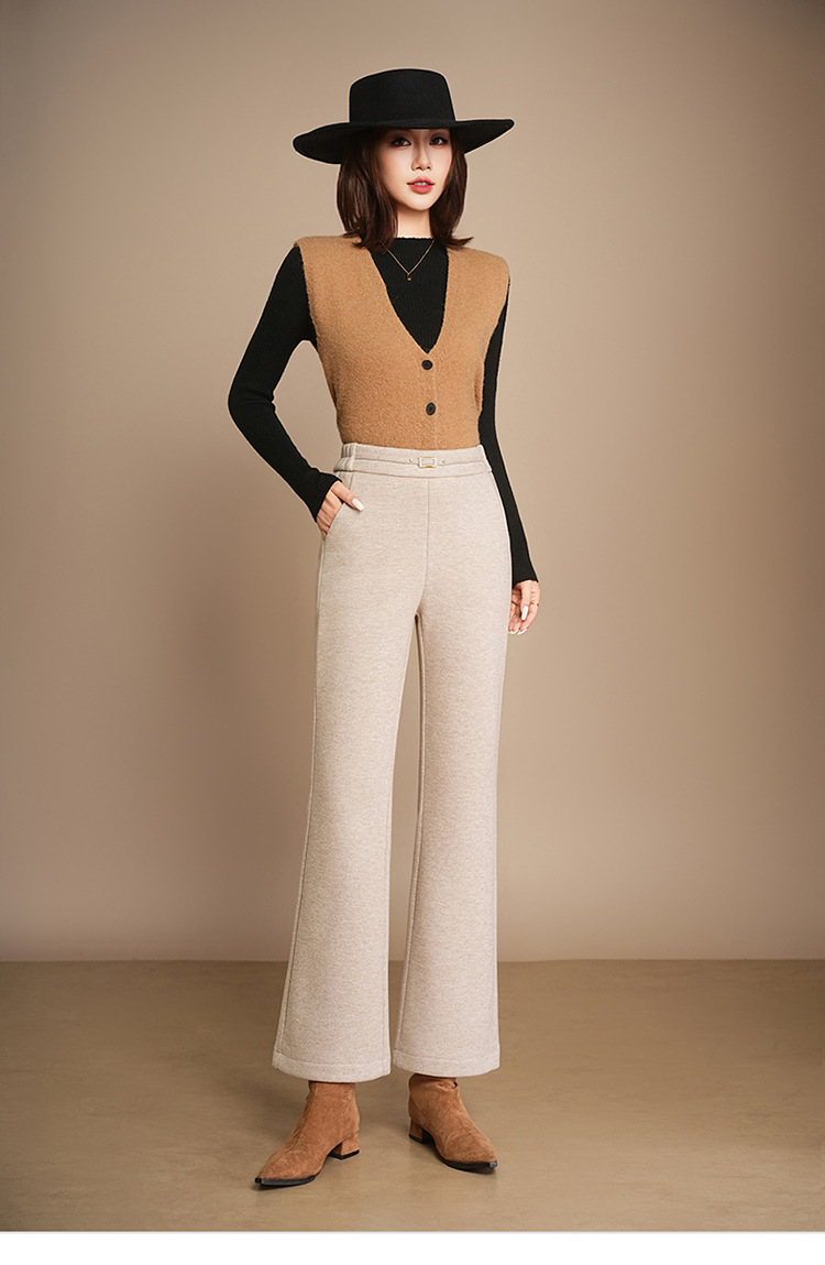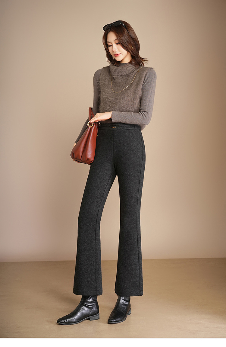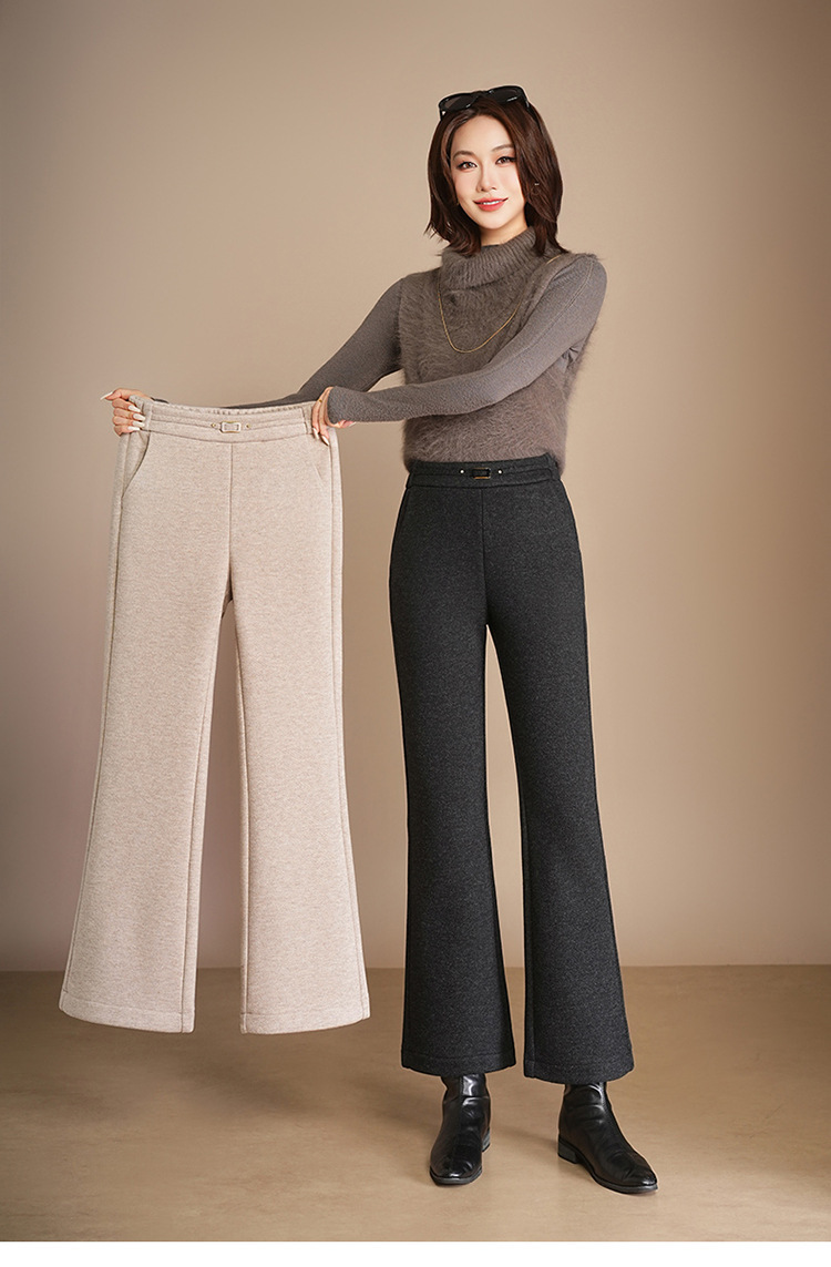 小个子加绒时尚羊毛呢微喇裤,松紧高腰显瘦显腿长直筒MYX2805