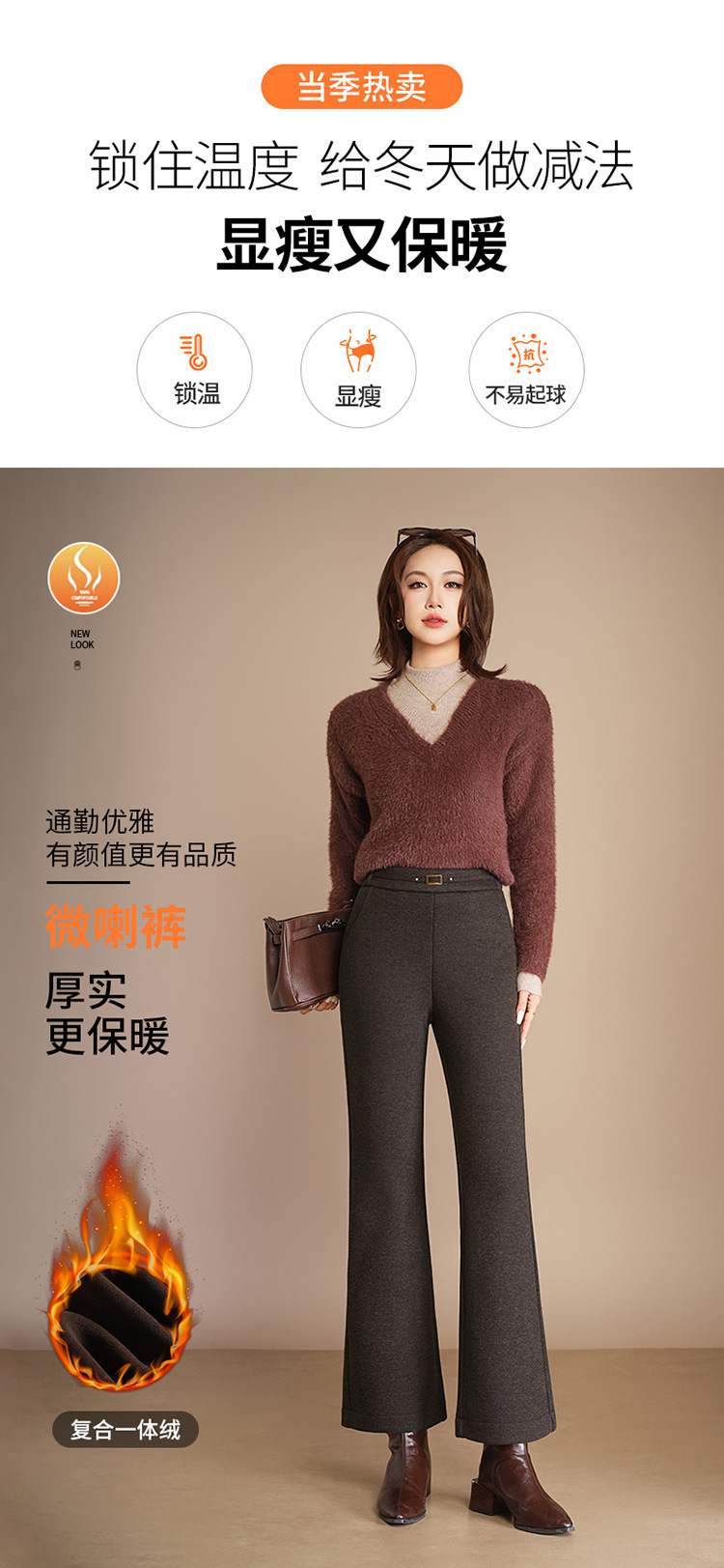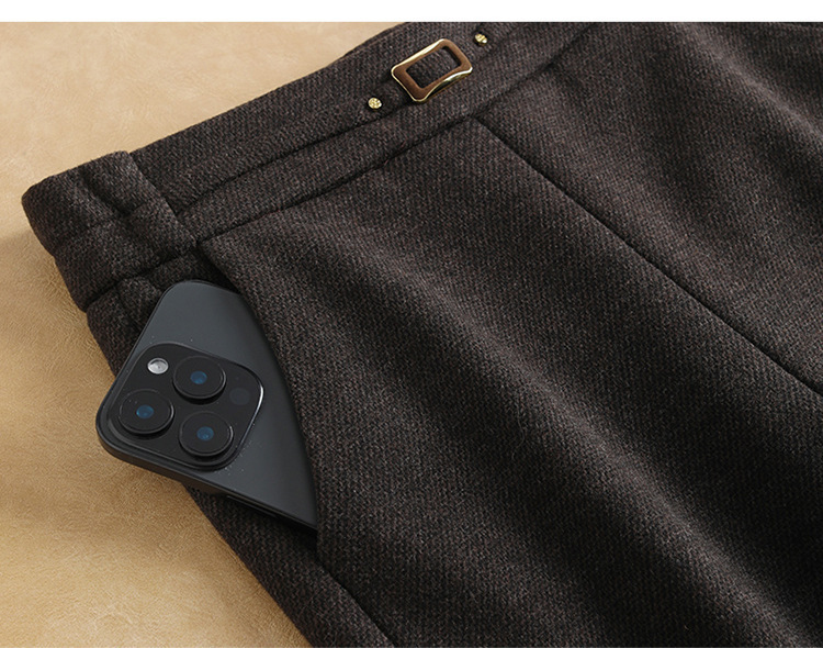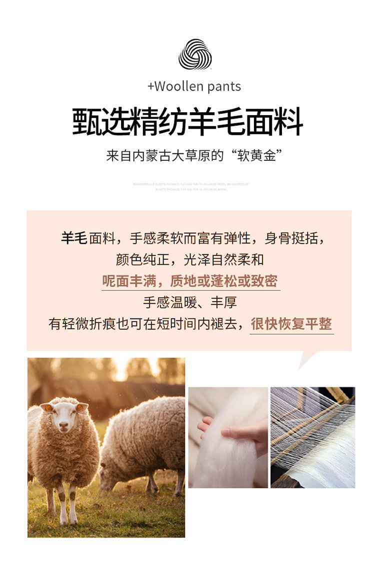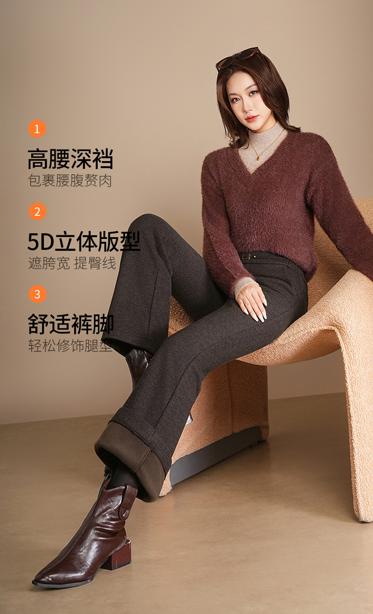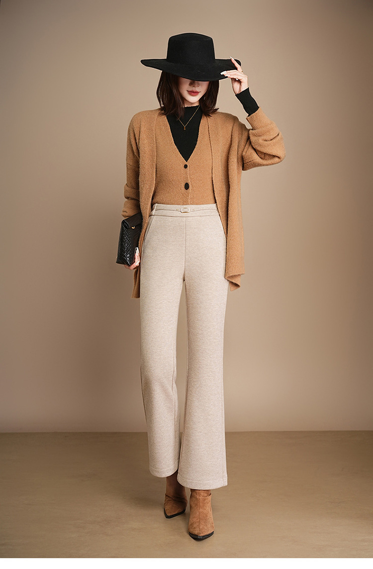 小个子加绒时尚羊毛呢微喇裤,松紧高腰显瘦显腿长直筒MYX2805