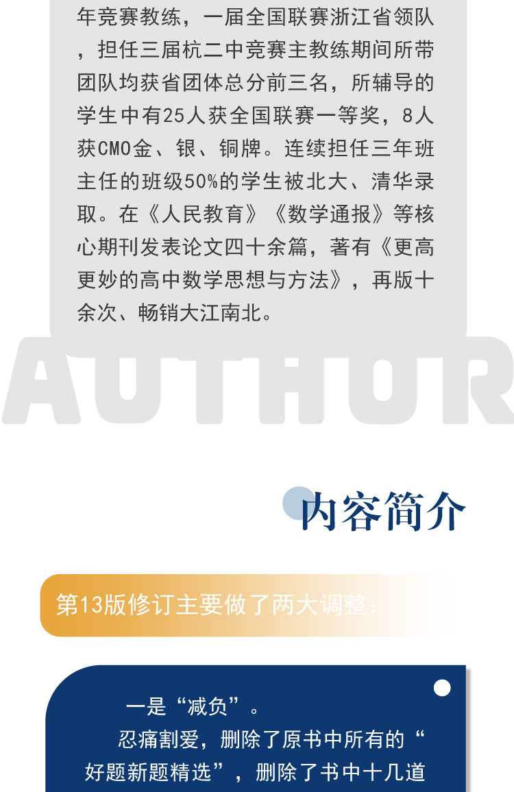 除了以上说的“减负”“增色”,第13版修订继续添加有利于启发思维、提高数学学习能力的教研新成果,同时全书也改成了更护眼的“大字号”的版本。