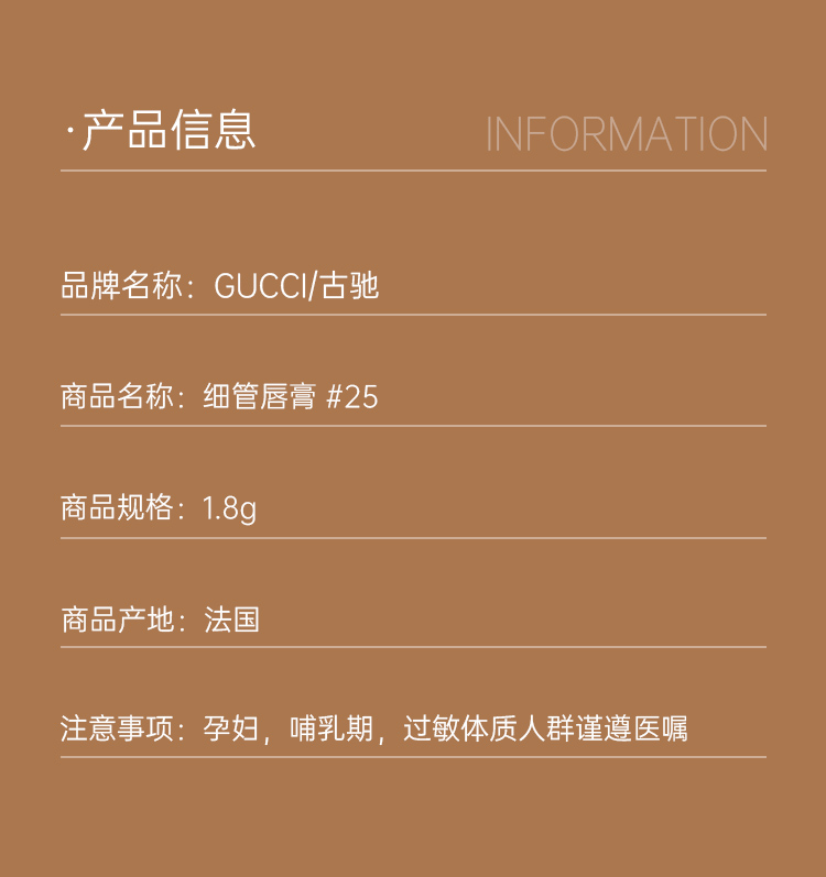 【跨境】GUCCI古驰细管口红25色号1.8g/支(效期至2027年9月)