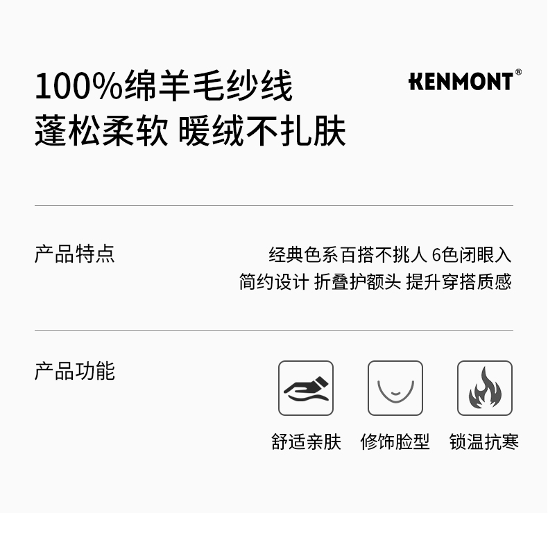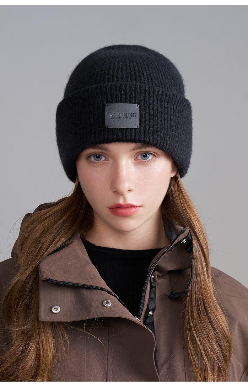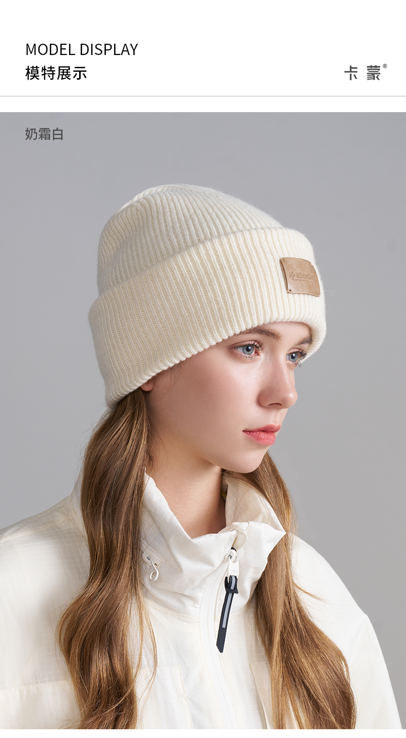 【男女同款】卡蒙简约百搭款纯色全羊毛翻边针织帽KM-9586