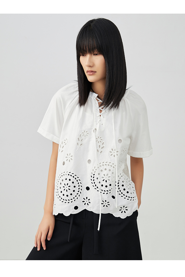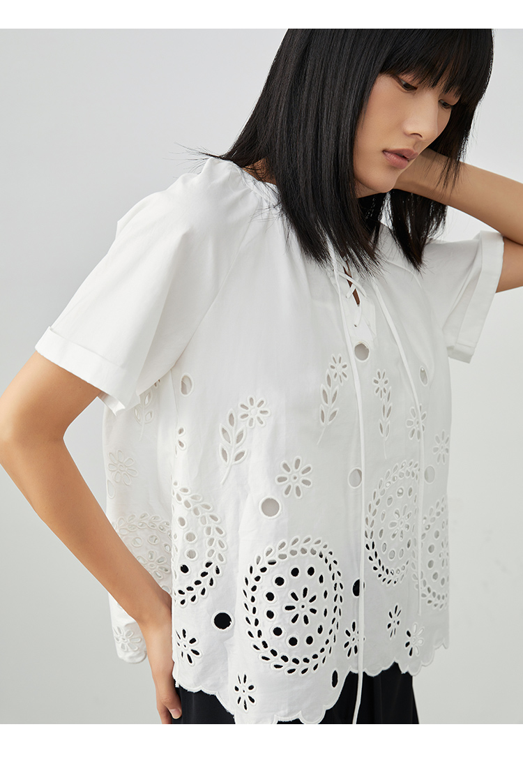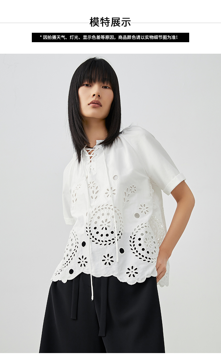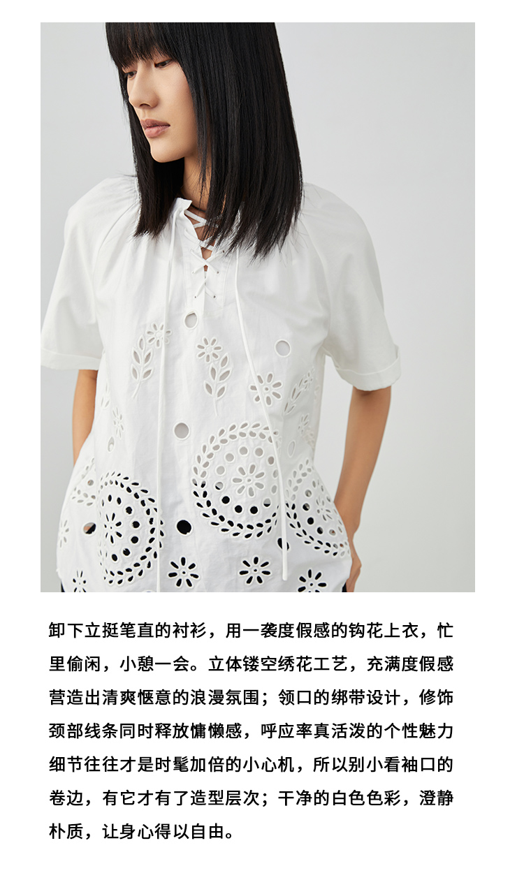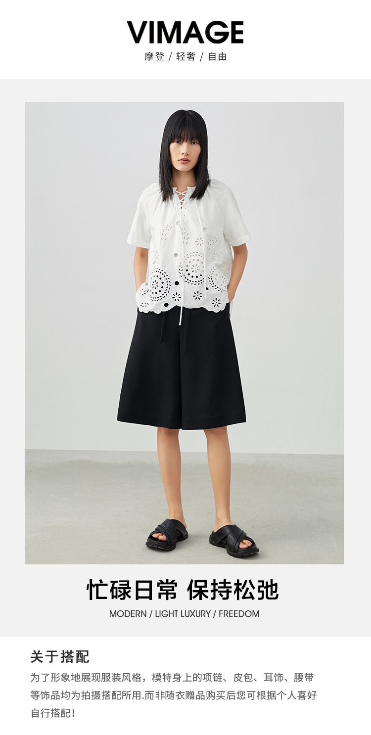 VIMAGE/纬漫纪夏季新款100%棉洋气精致蕾丝镂空小上衣V1713332