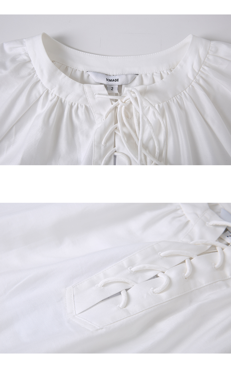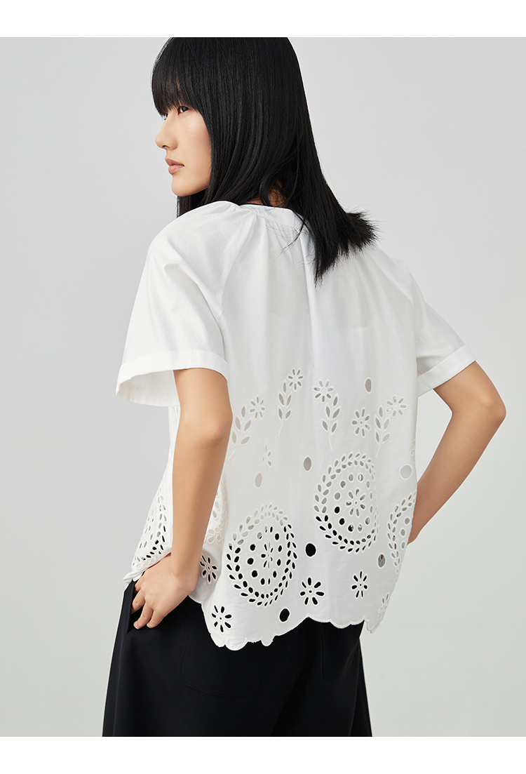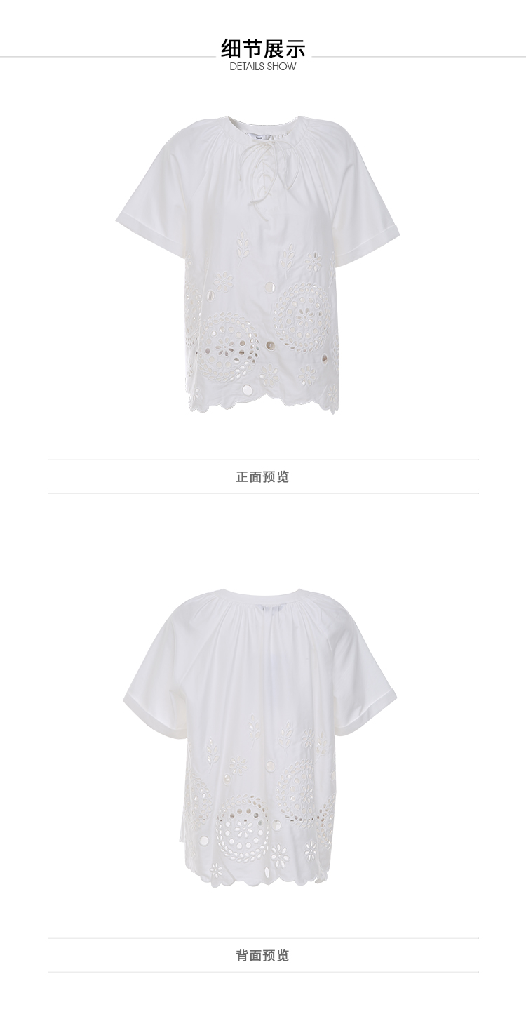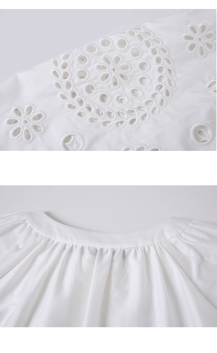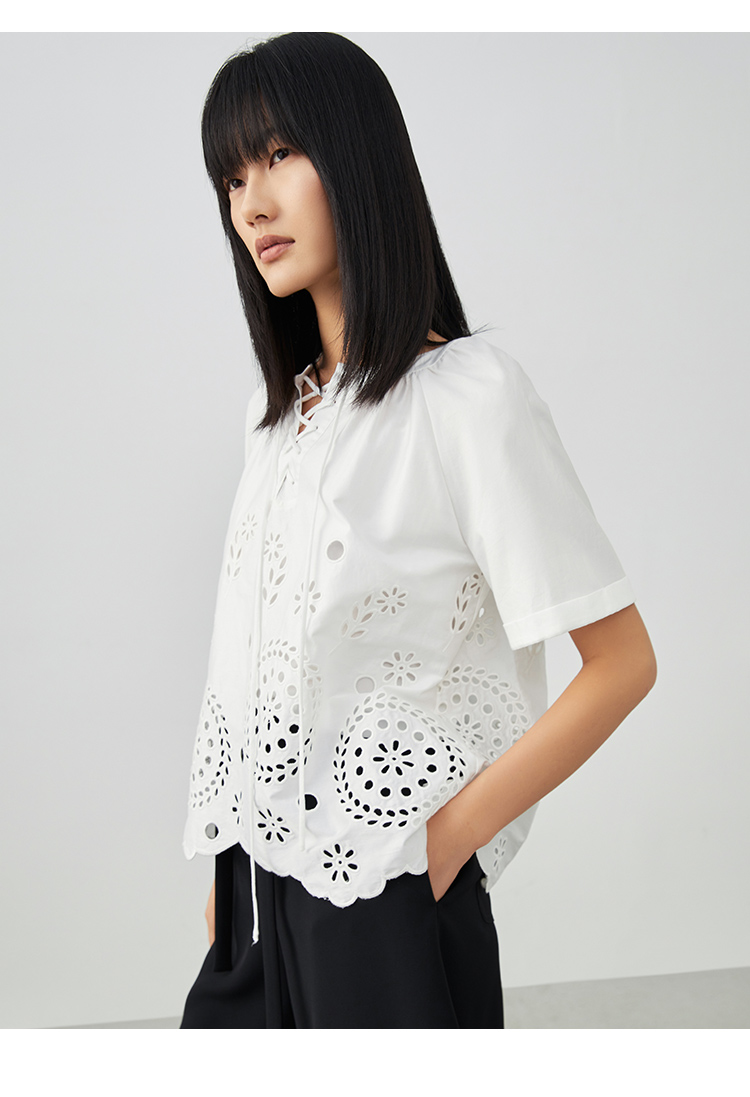 VIMAGE/纬漫纪夏季新款100%棉洋气精致蕾丝镂空小上衣V1713332