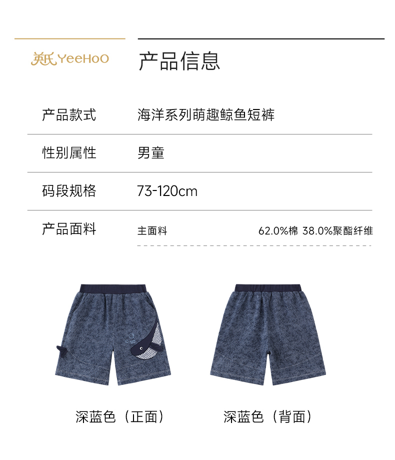 【商场同款】英氏男童短裤夏新款外穿休闲裤透气薄款男宝裤