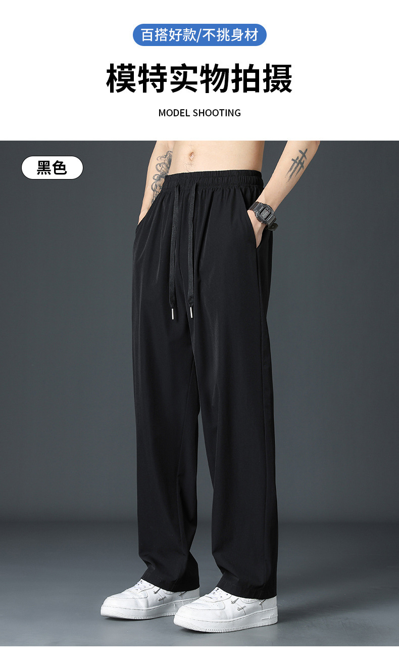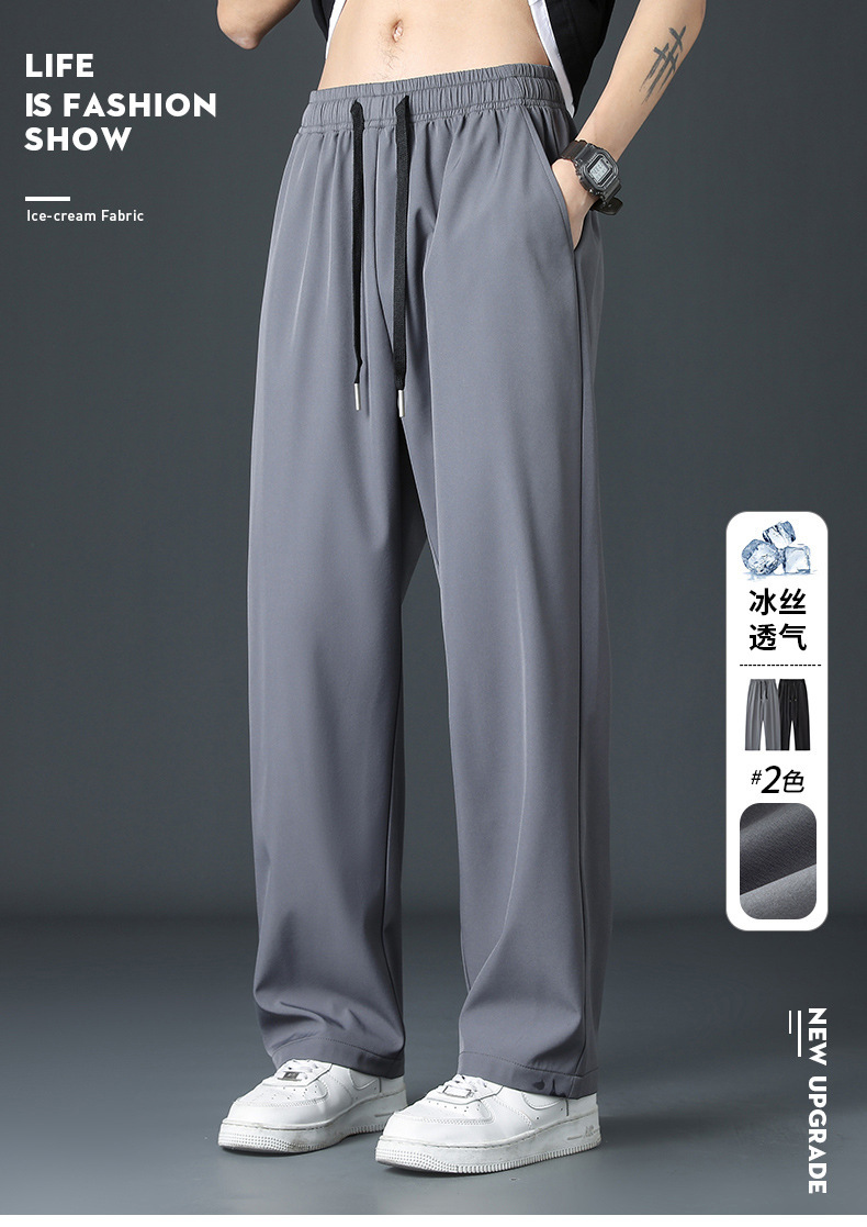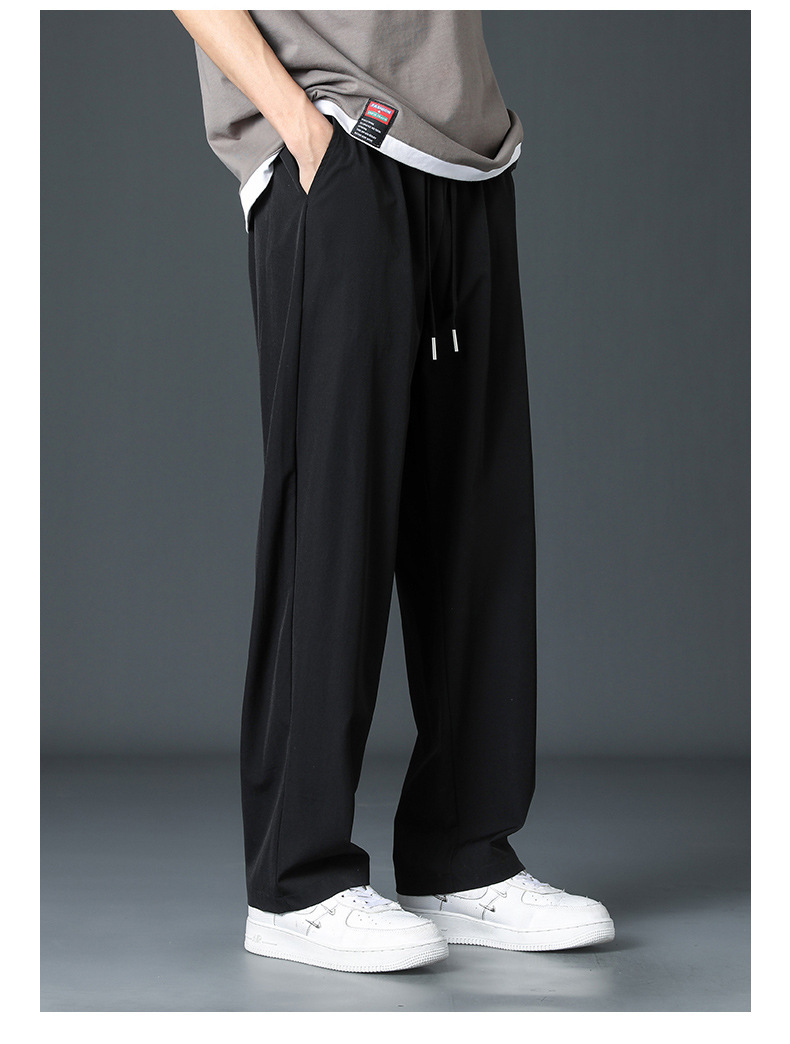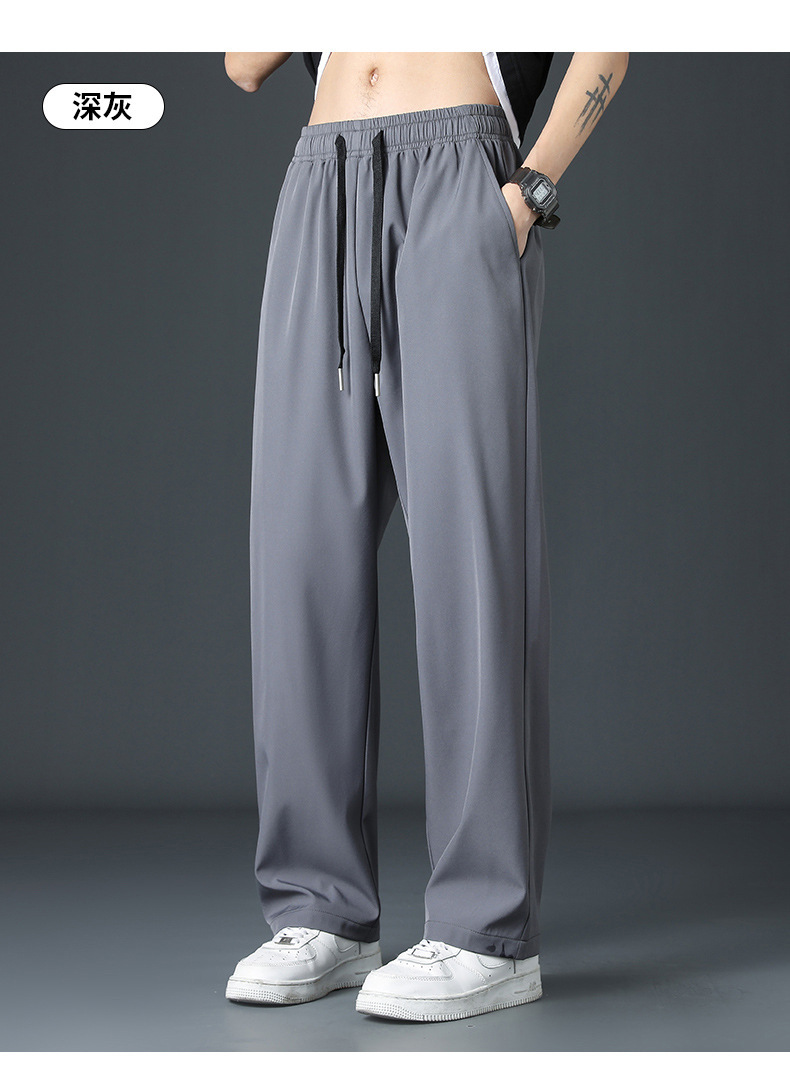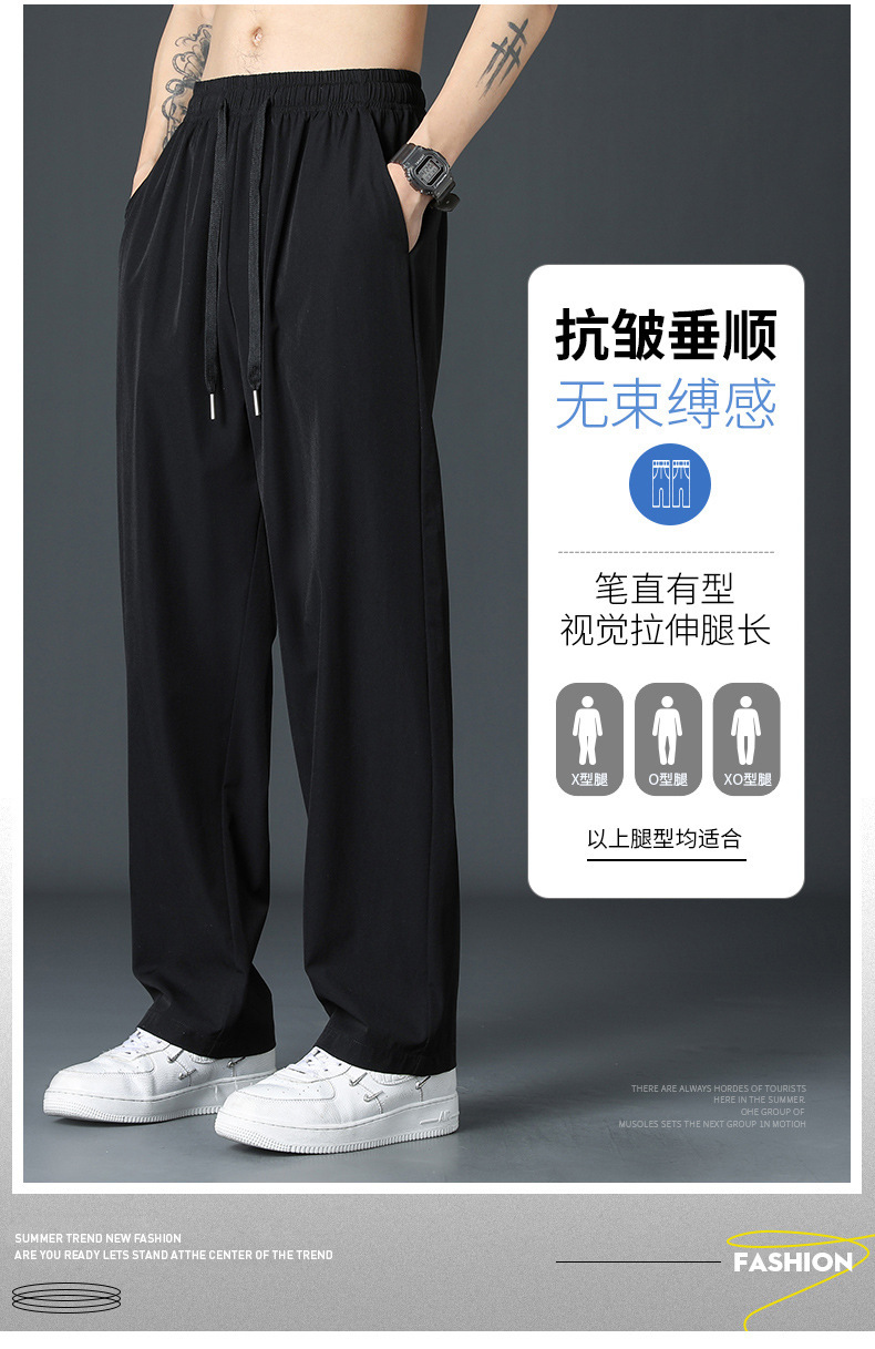 2024新款冰丝裤子男士夏季薄高街垂感直筒阔腿裤夏天运动休闲长裤