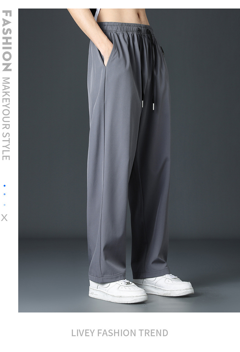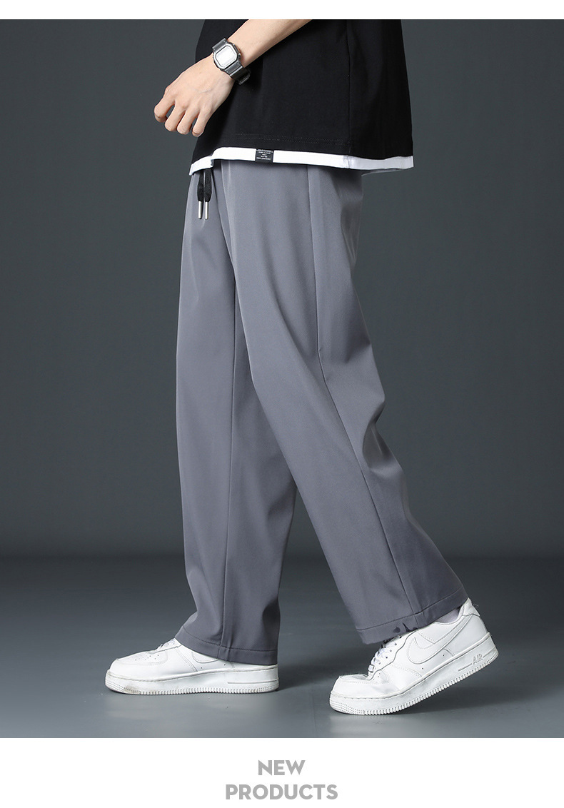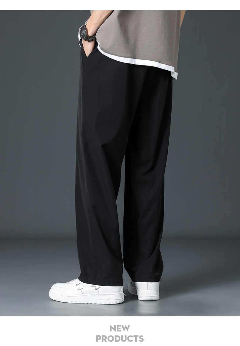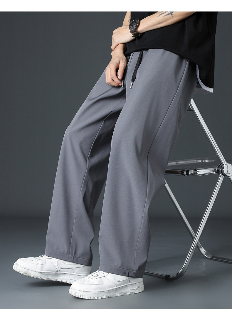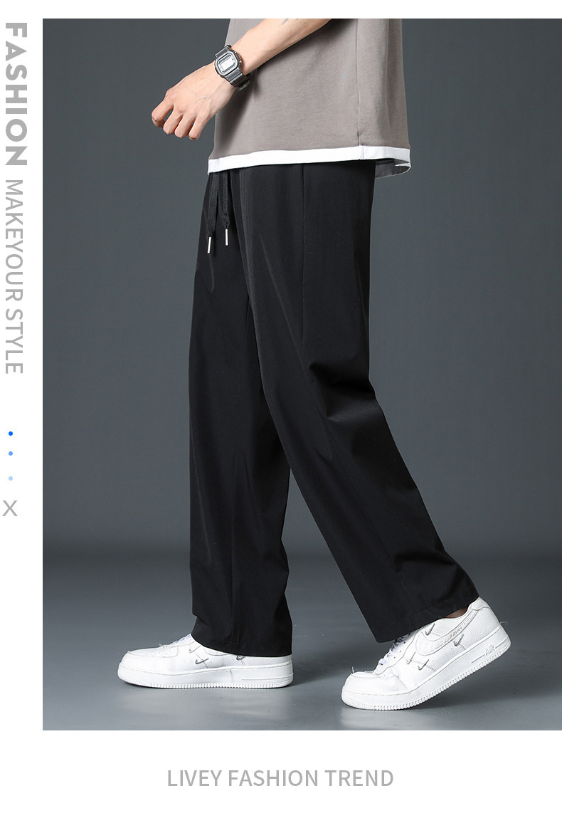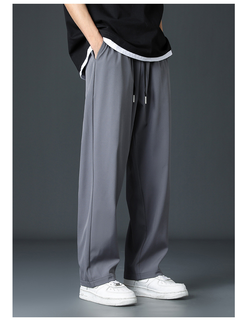 2024新款冰丝裤子男士夏季薄高街垂感直筒阔腿裤夏天运动休闲长裤