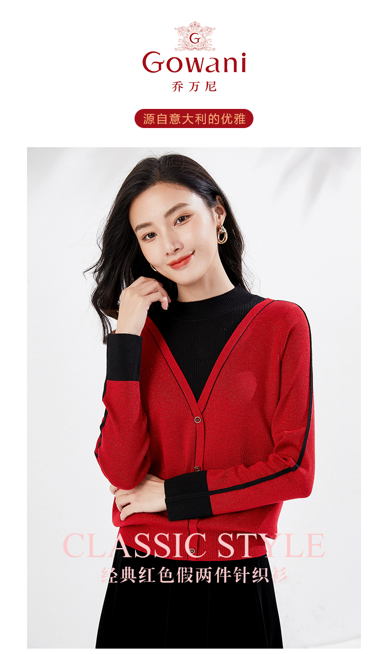 乔万尼新品针织衫减龄假两件毛衫毛衣EI4M622