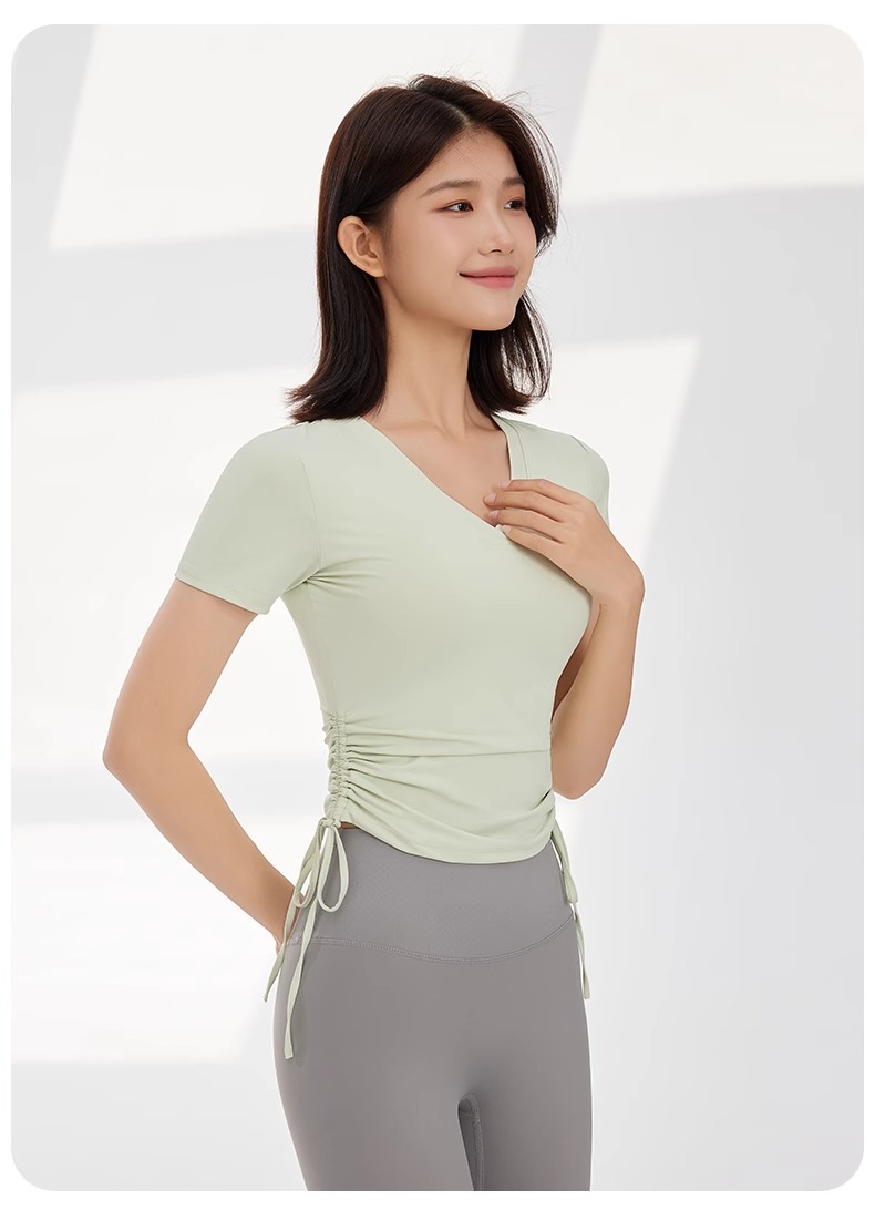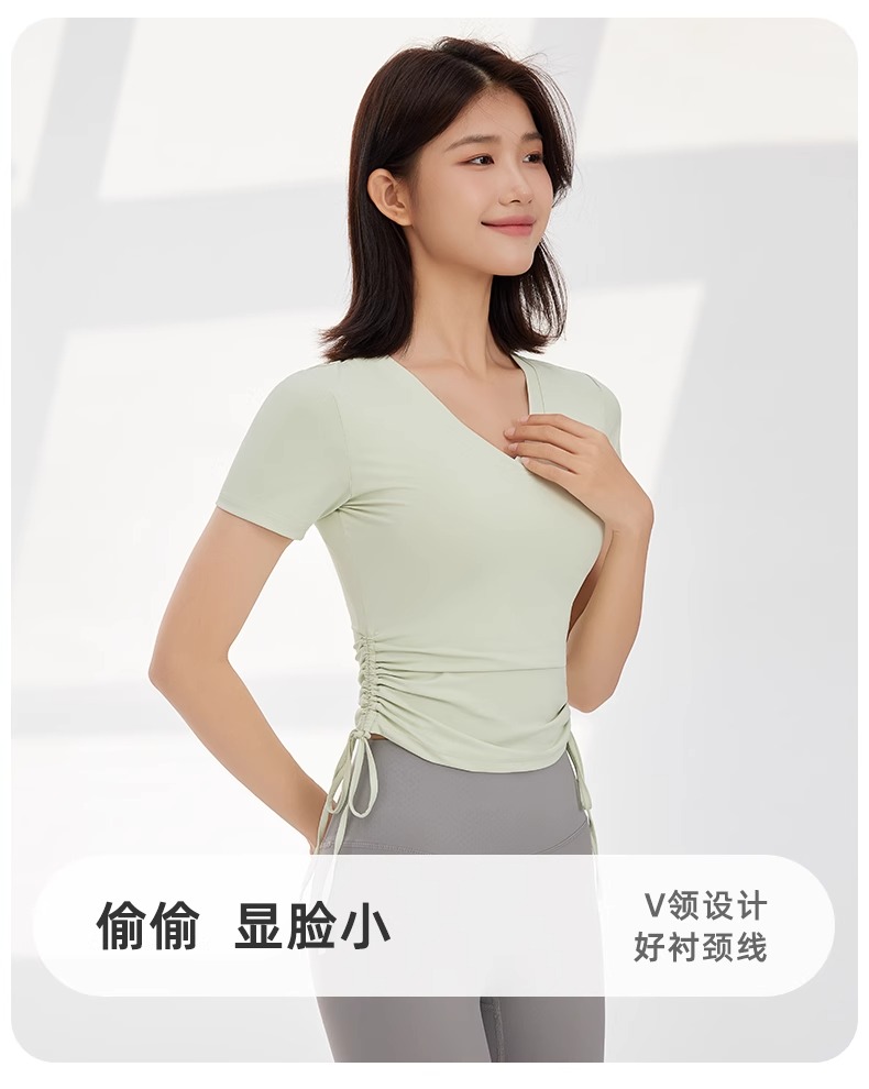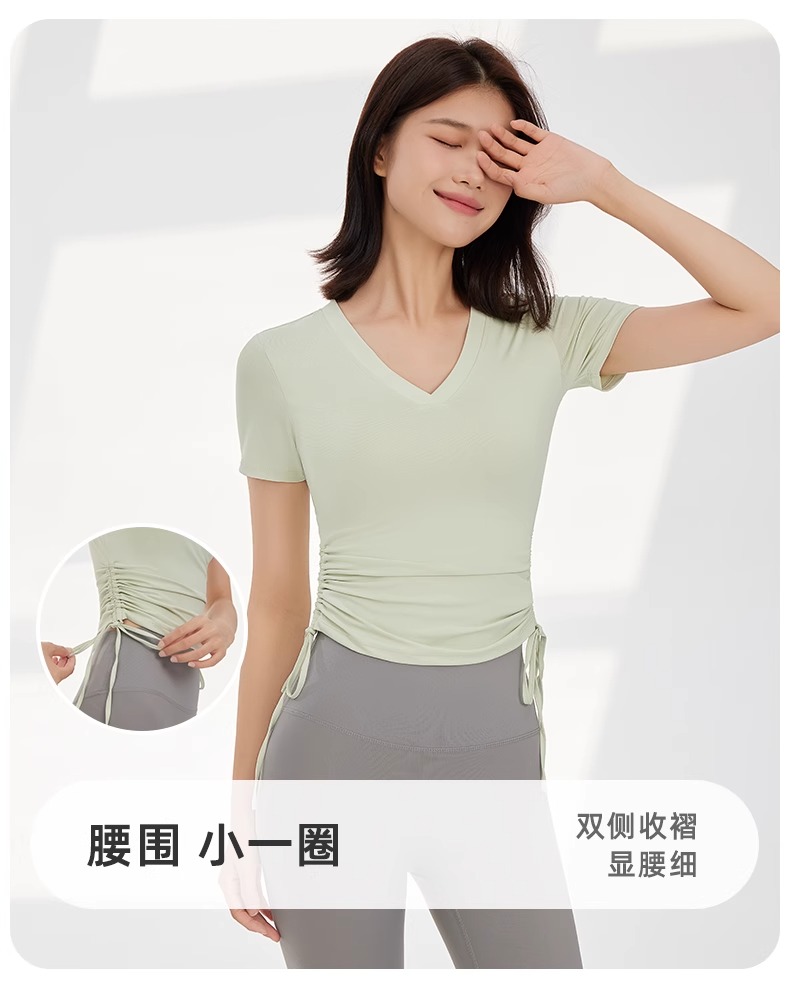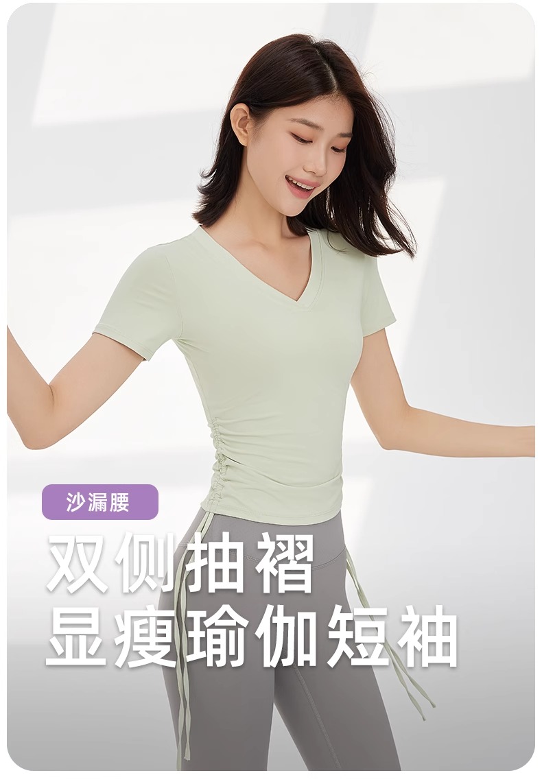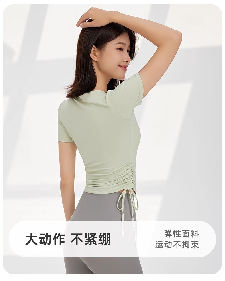 【限时秒】YOGACODE【火树银花系列】2024 春夏瑜伽服上衣短袖褶皱收腰休闲运动上衣 DST802