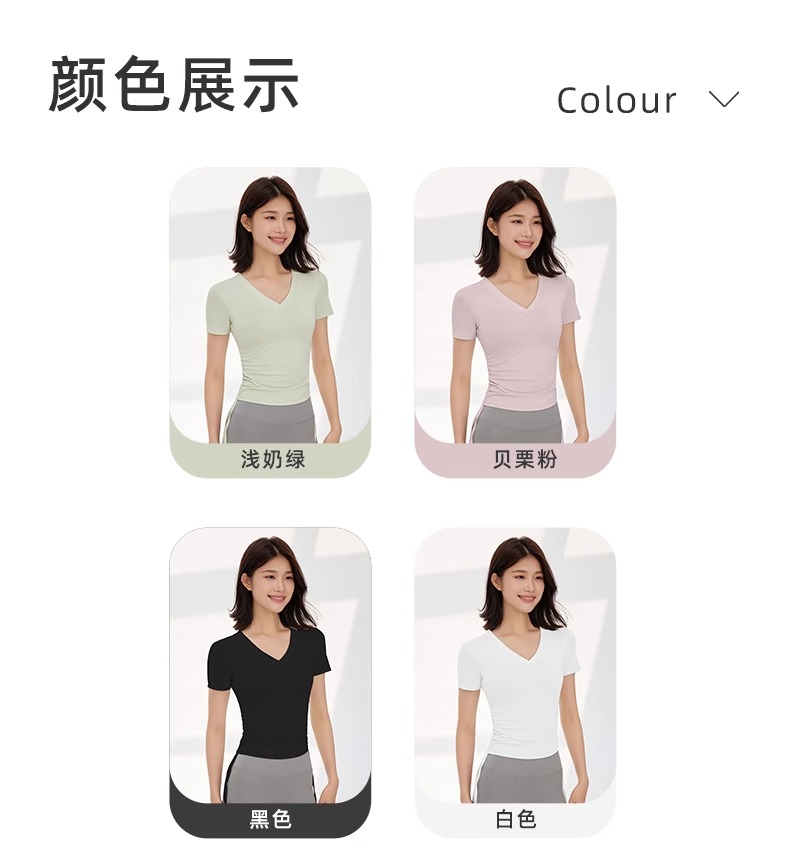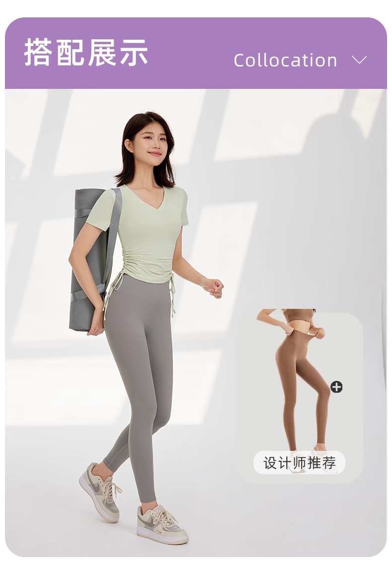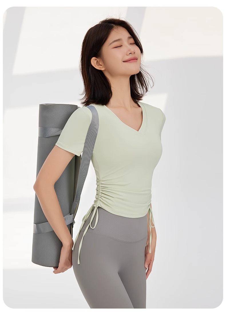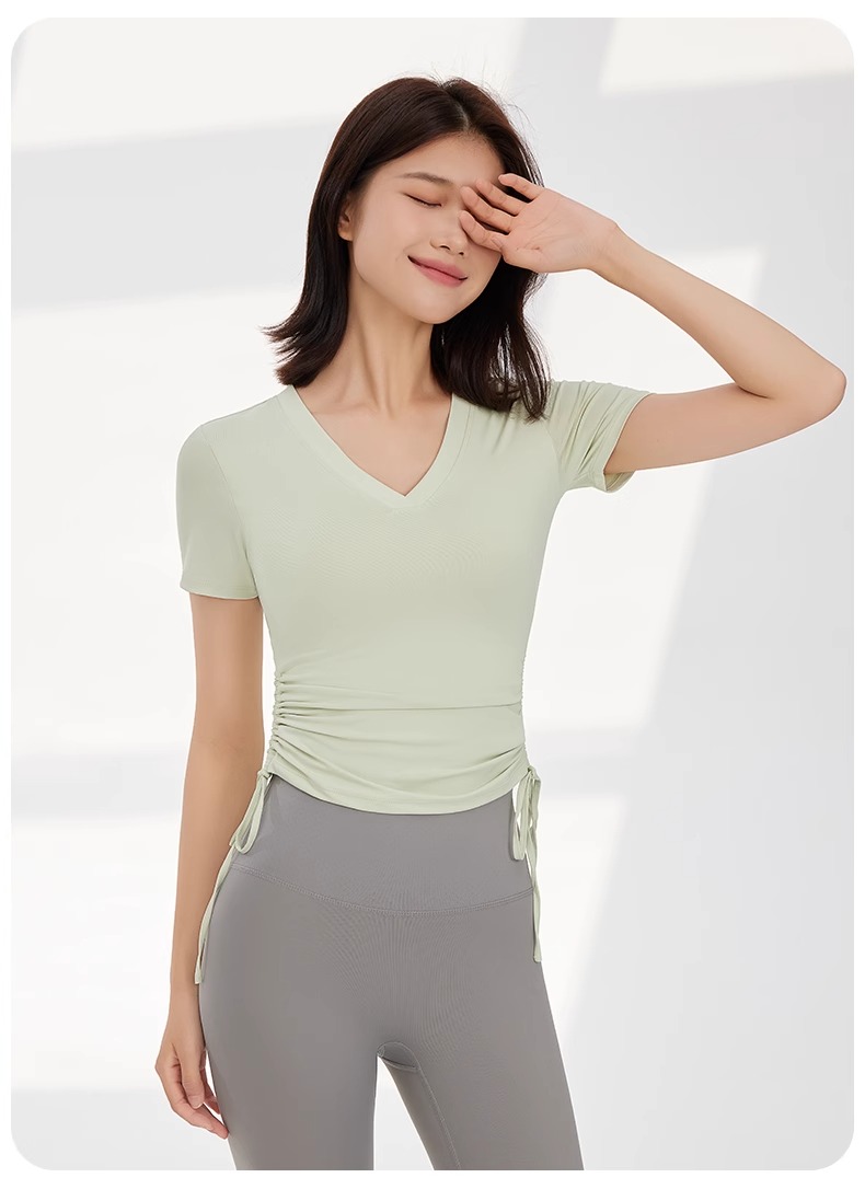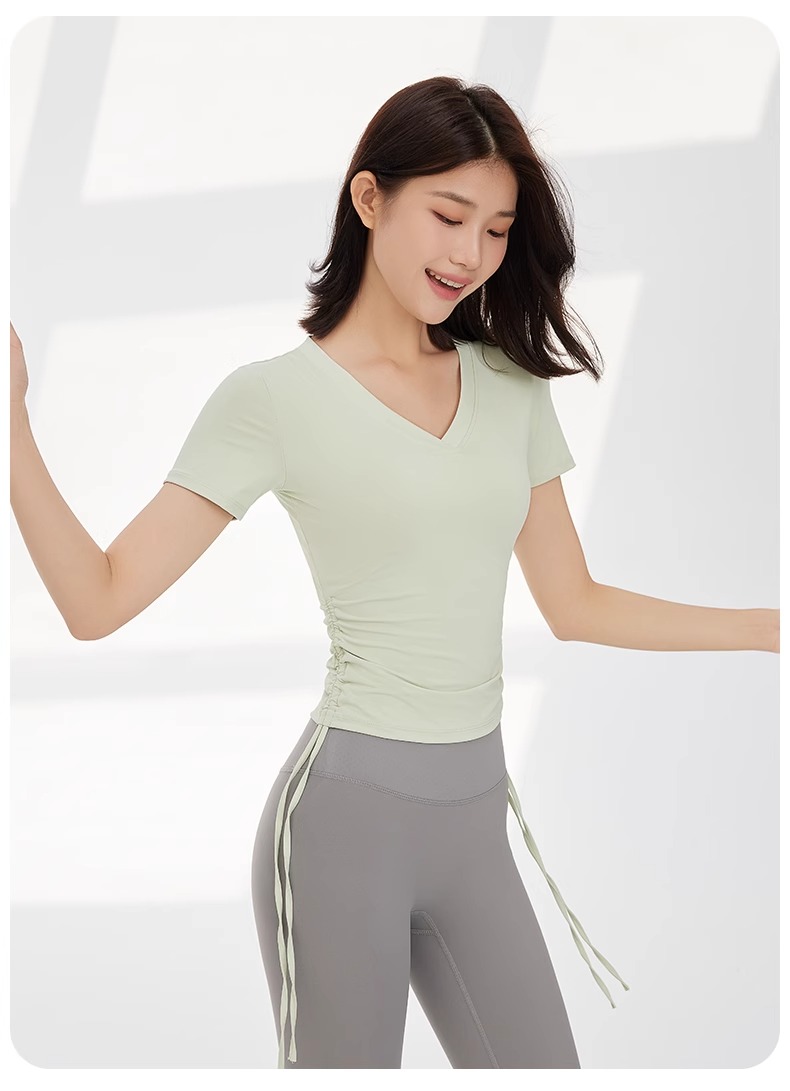 【限时秒】YOGACODE【火树银花系列】2024 春夏瑜伽服上衣短袖褶皱收腰休闲运动上衣 DST802