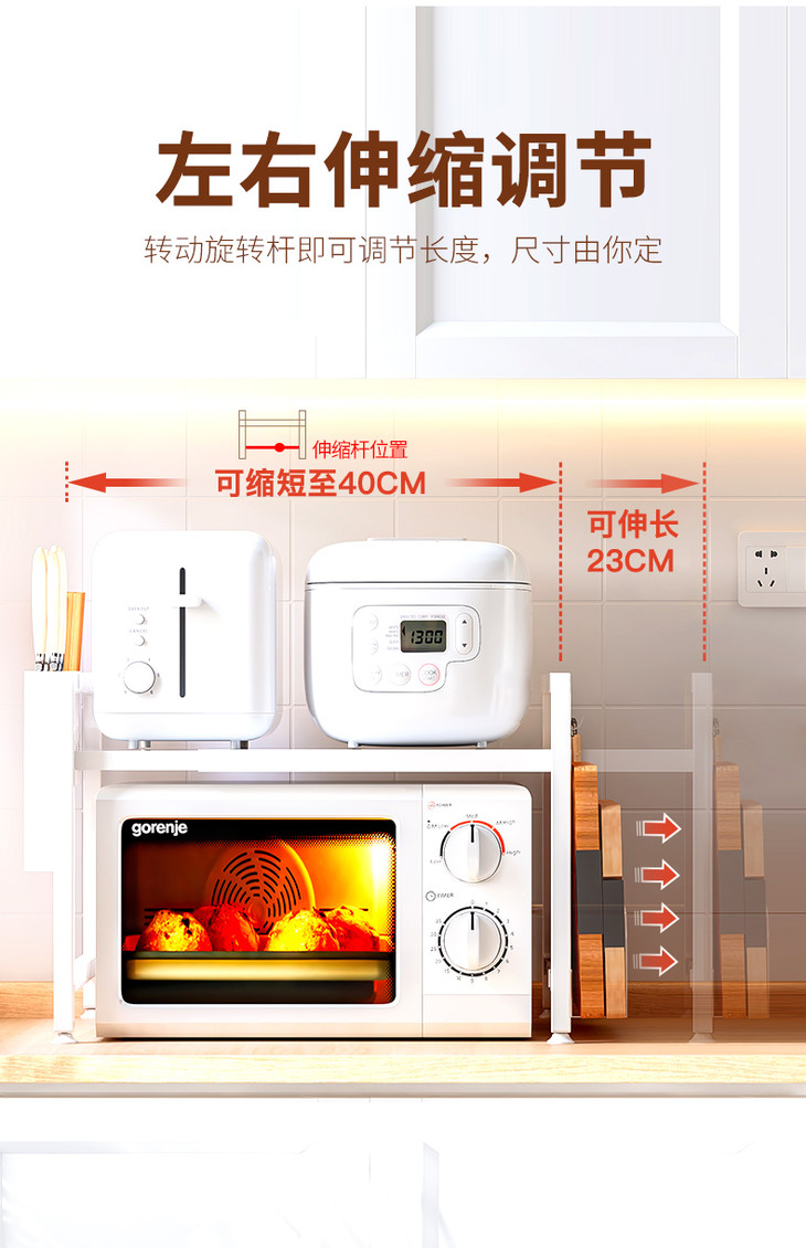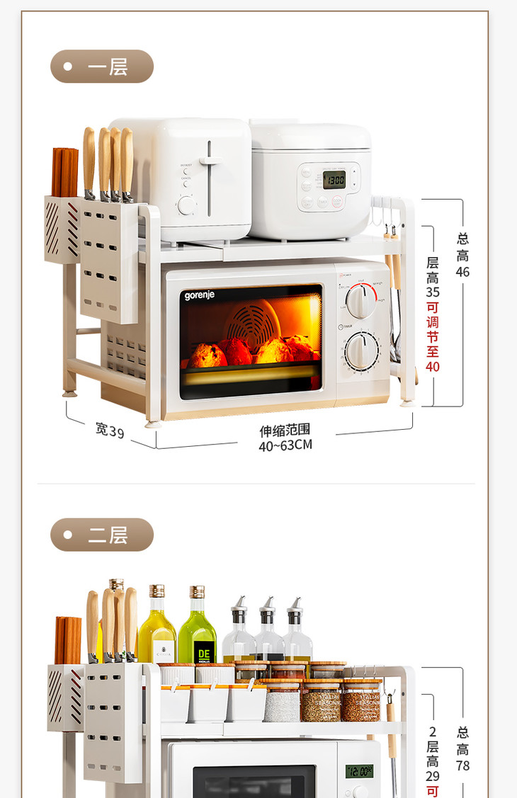 可伸缩厨房置物架微波炉烤箱架子家用双层台面桌面电饭锅收纳支架