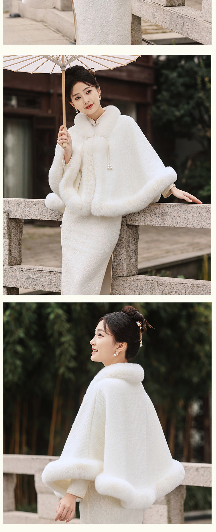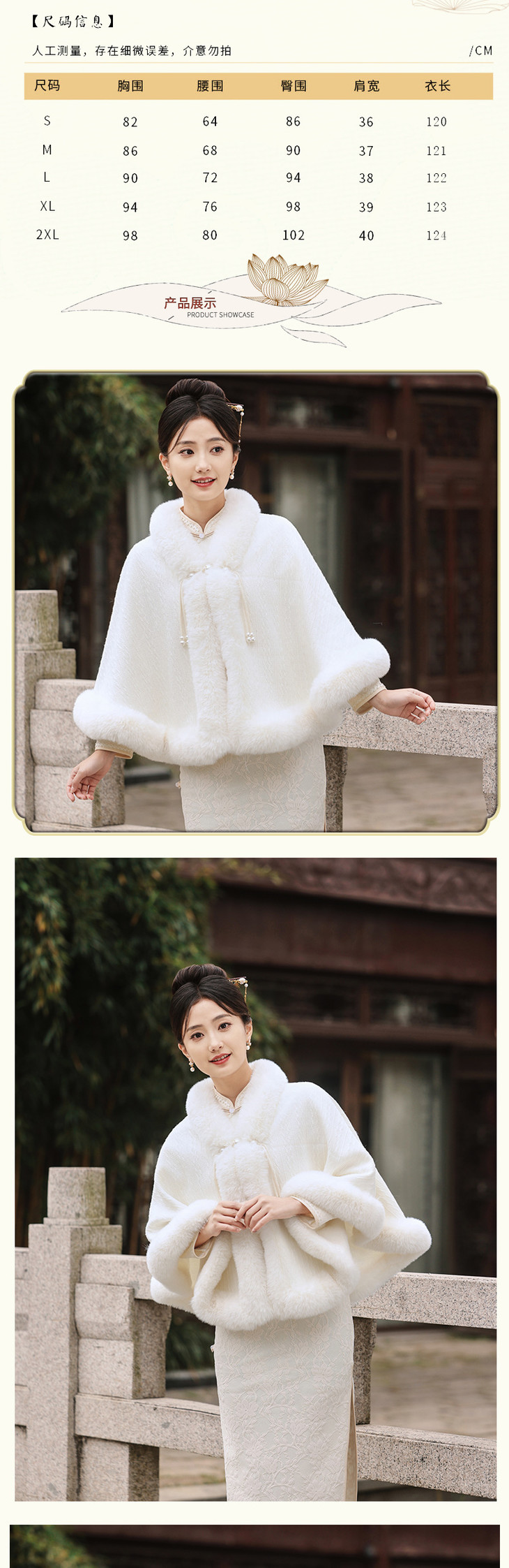冬款加绒加厚披肩斗篷,复合蕾丝加绒气质女旗袍SJT411