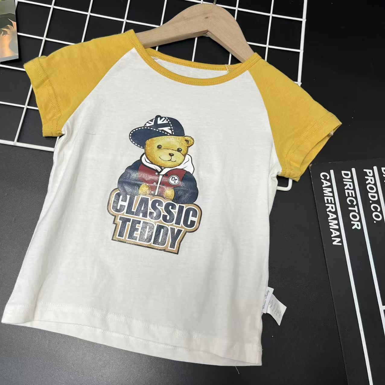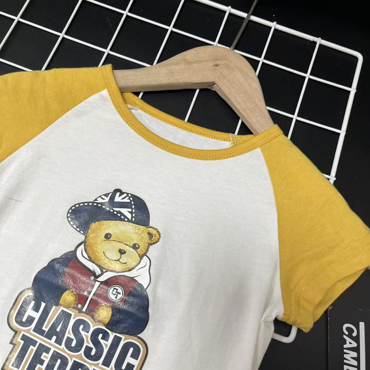 【选2件15元-NO退】100黄色插肩袖小熊短袖T恤-微脏-喜出