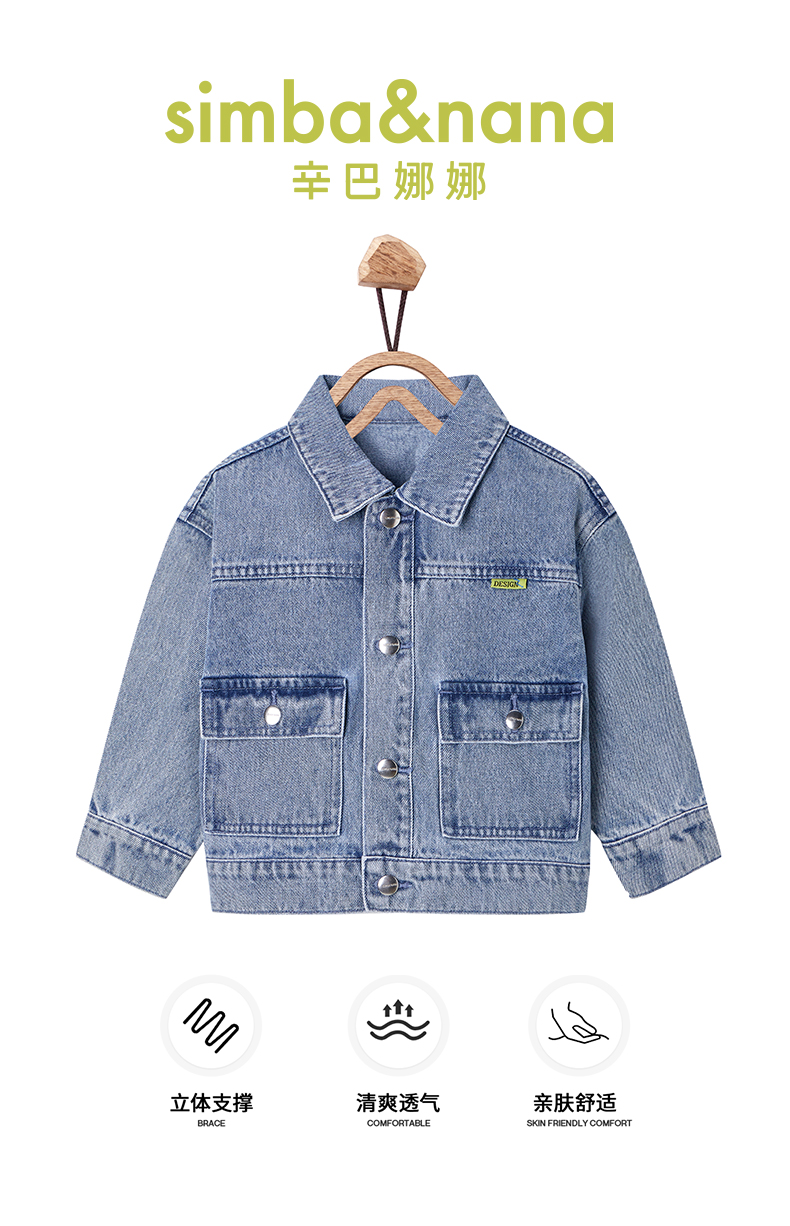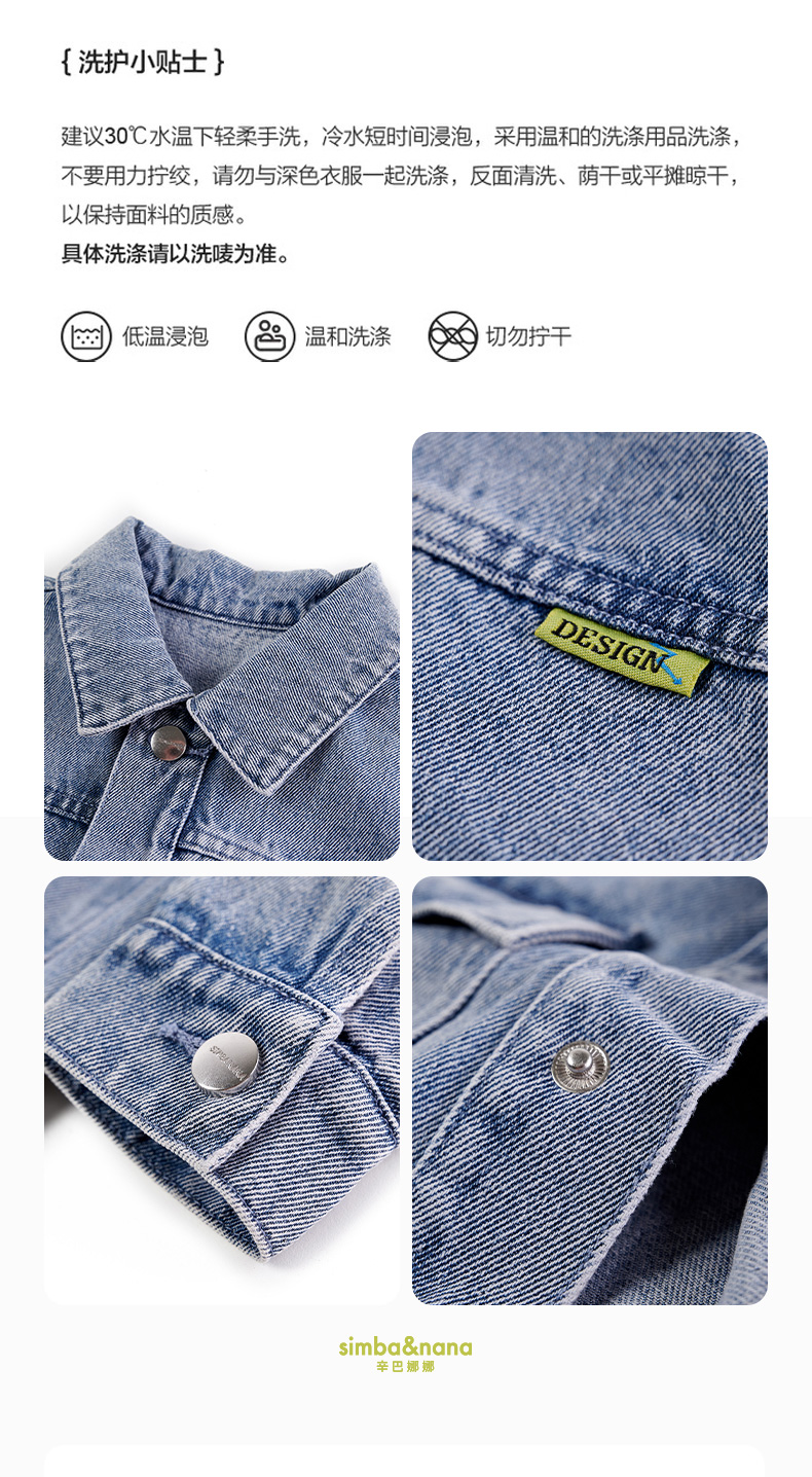 【辛巴娜娜】simbanana童装男童春季新款牛仔外套儿童工装板上衣翻领