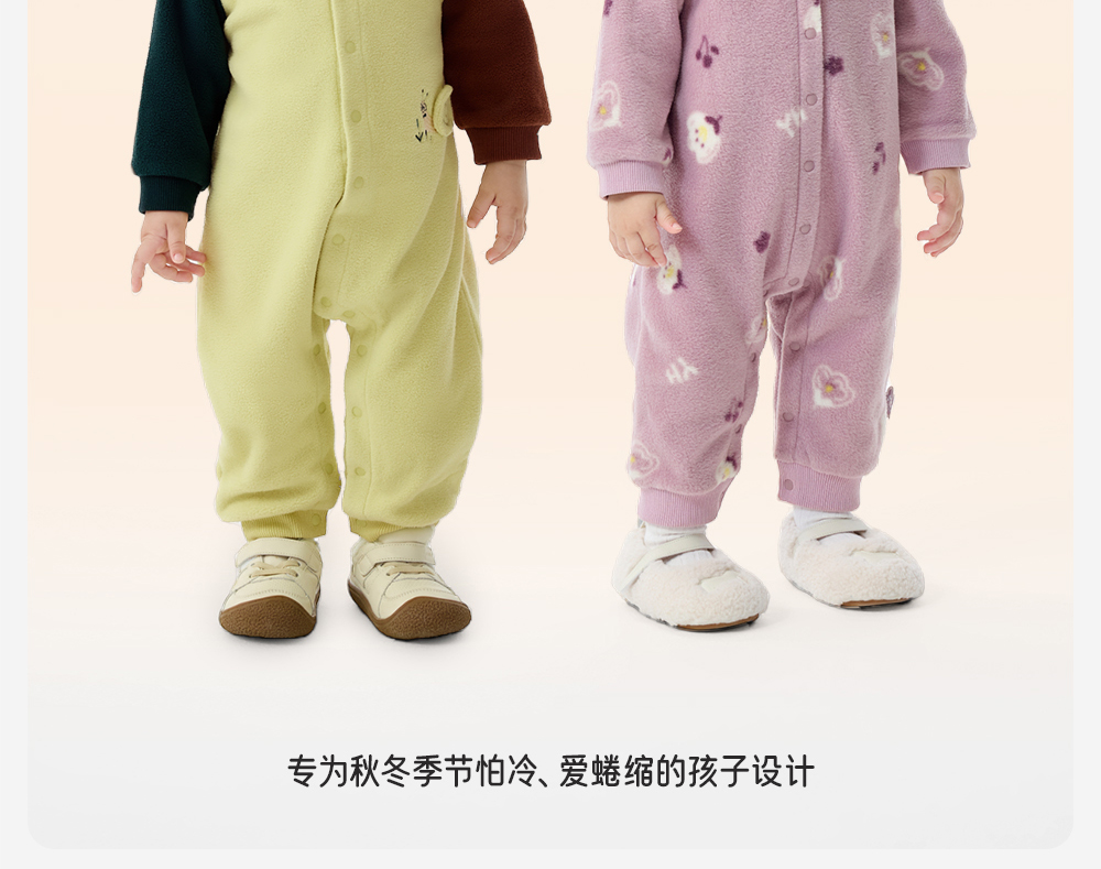 【新会员4折内购】英氏婴儿连体衣春秋加绒摇粒绒宝宝衣服哈衣春秋新生儿外出服爬服