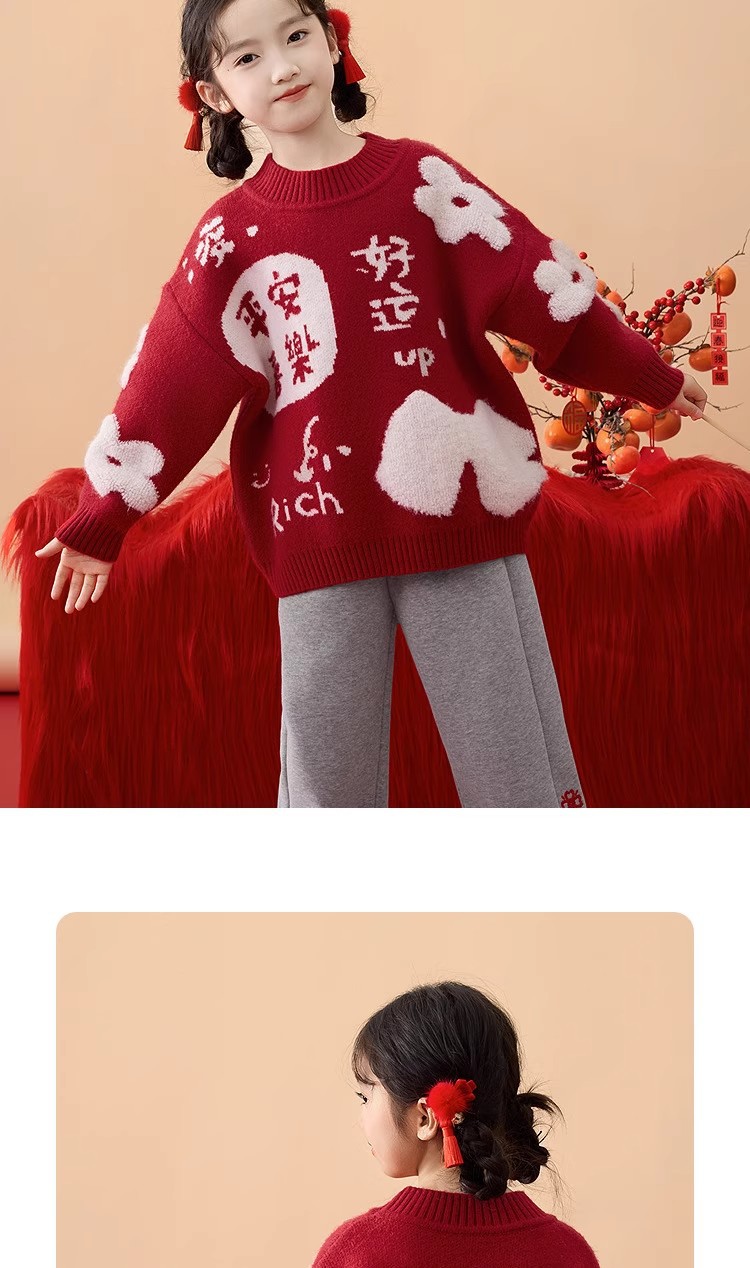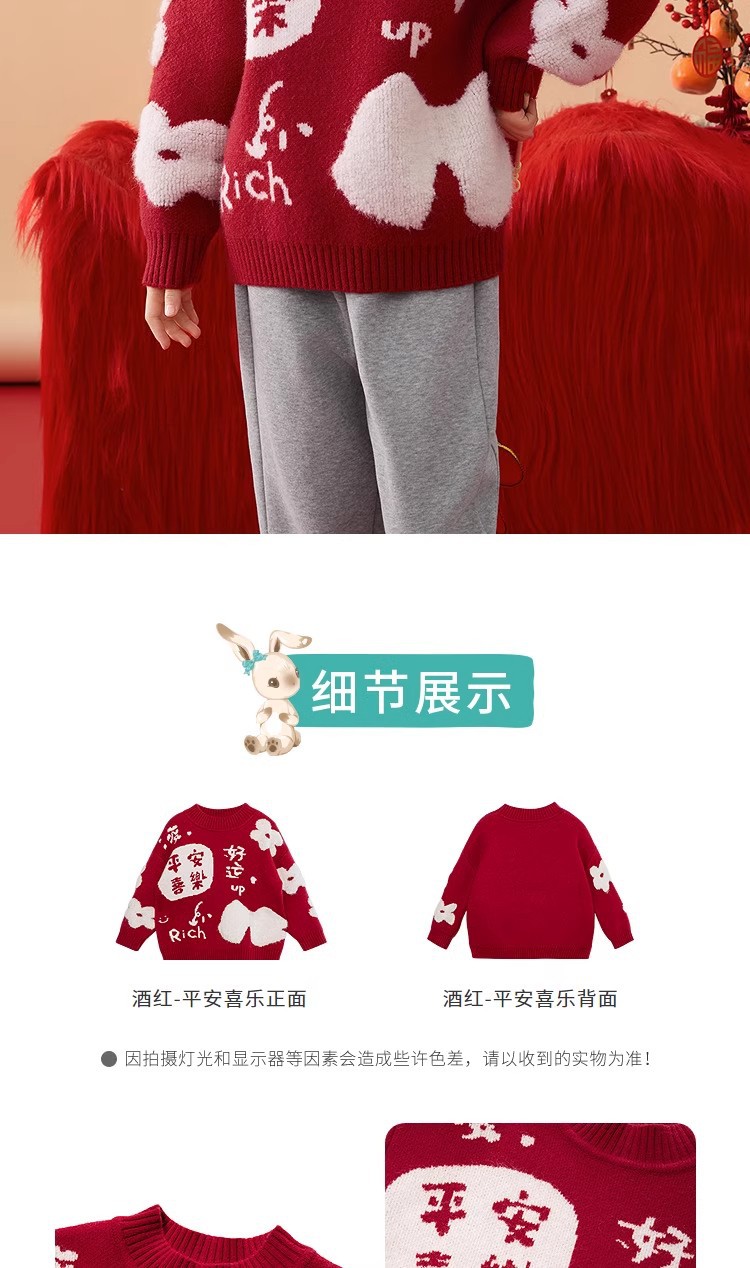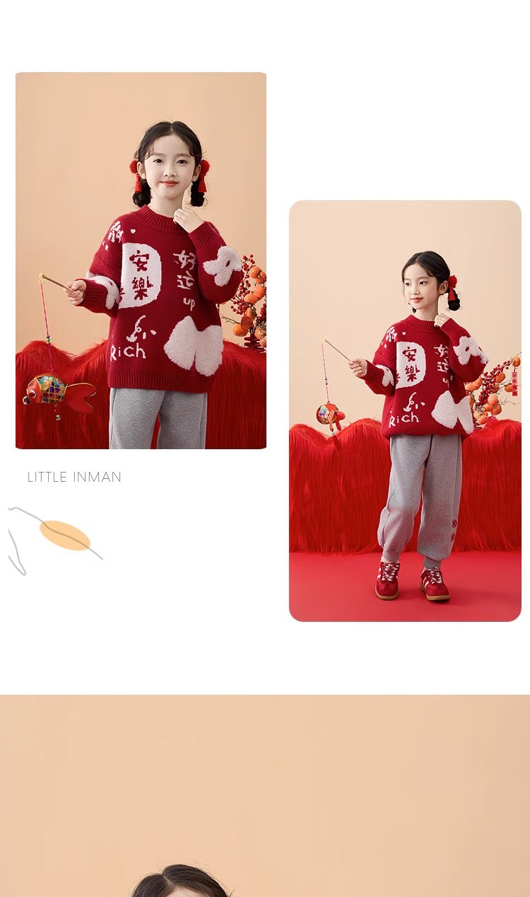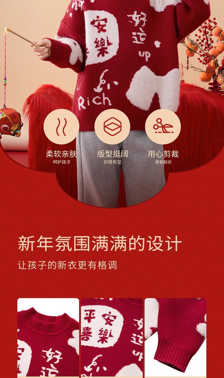 【国潮喜庆拜年服❗️亲子平安喜乐红色毛衣】新年氛围满满的设计,灵蛇贺岁,舒适柔软又保暖, 儿童时髦本命蛇年,喜庆拜年服秋冬针织衫L