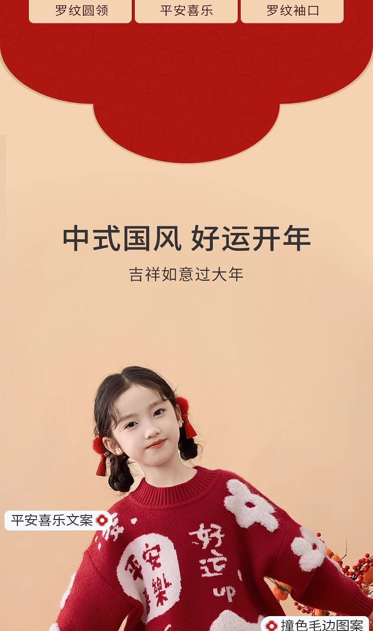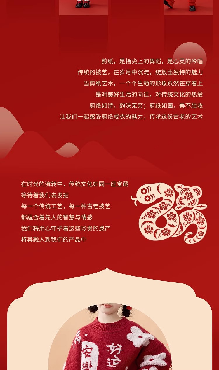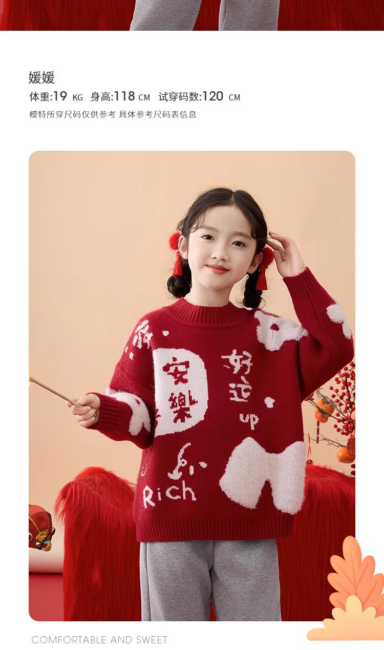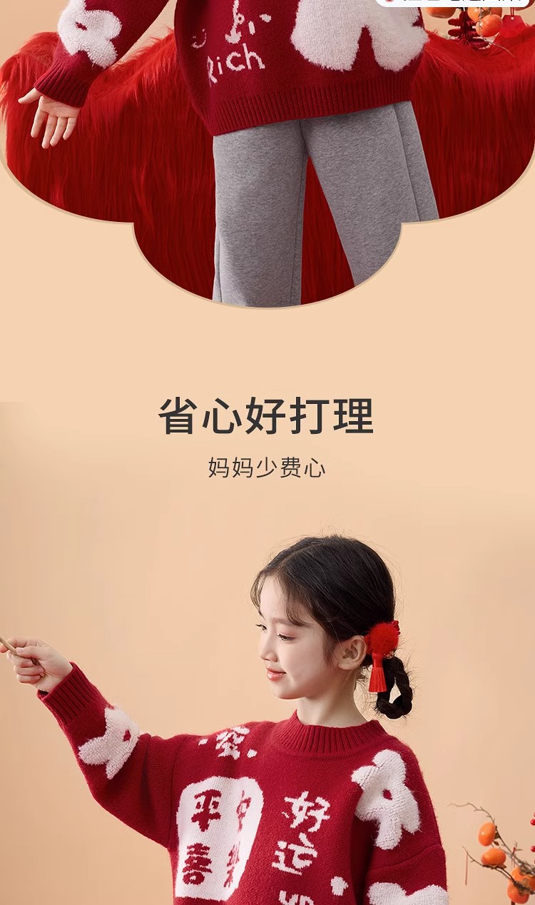 【国潮喜庆拜年服❗️亲子平安喜乐红色毛衣】新年氛围满满的设计,灵蛇贺岁,舒适柔软又保暖, 儿童时髦本命蛇年,喜庆拜年服秋冬针织衫L