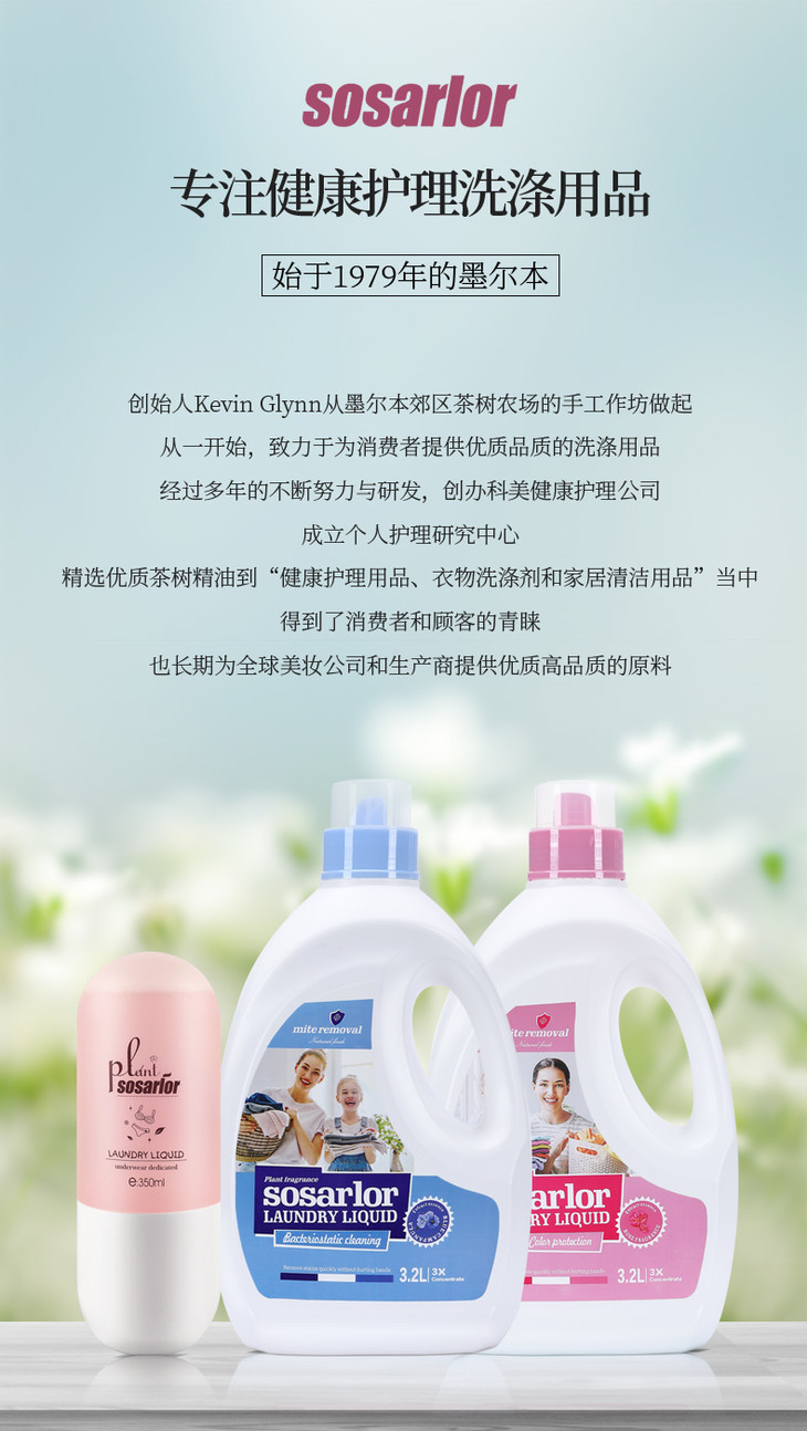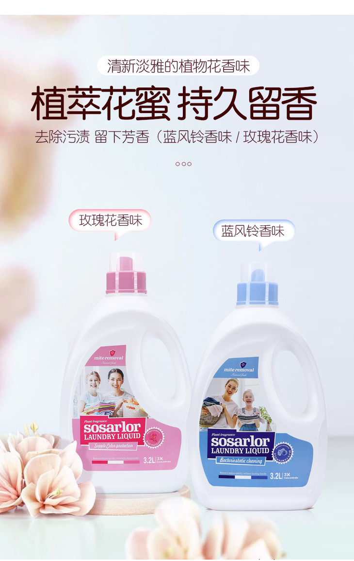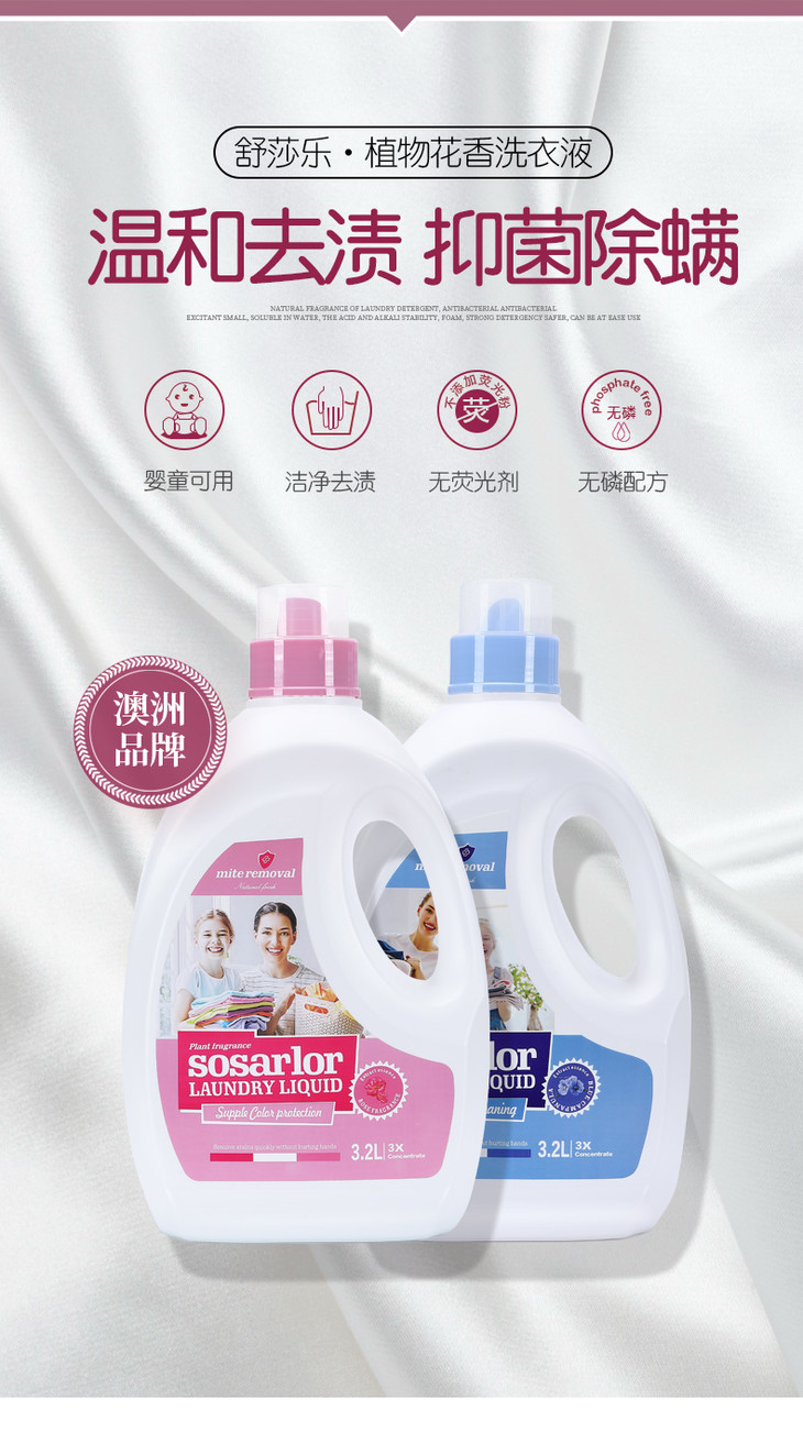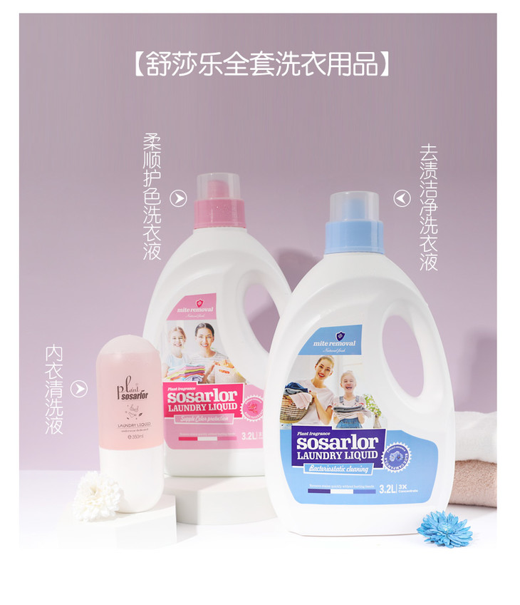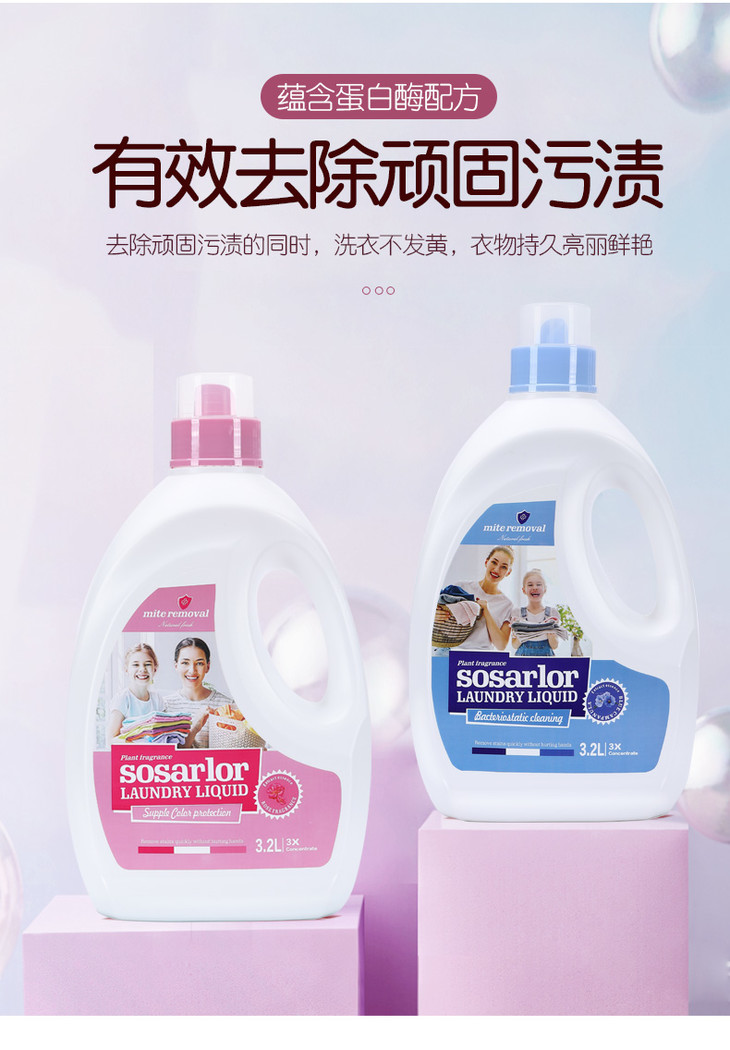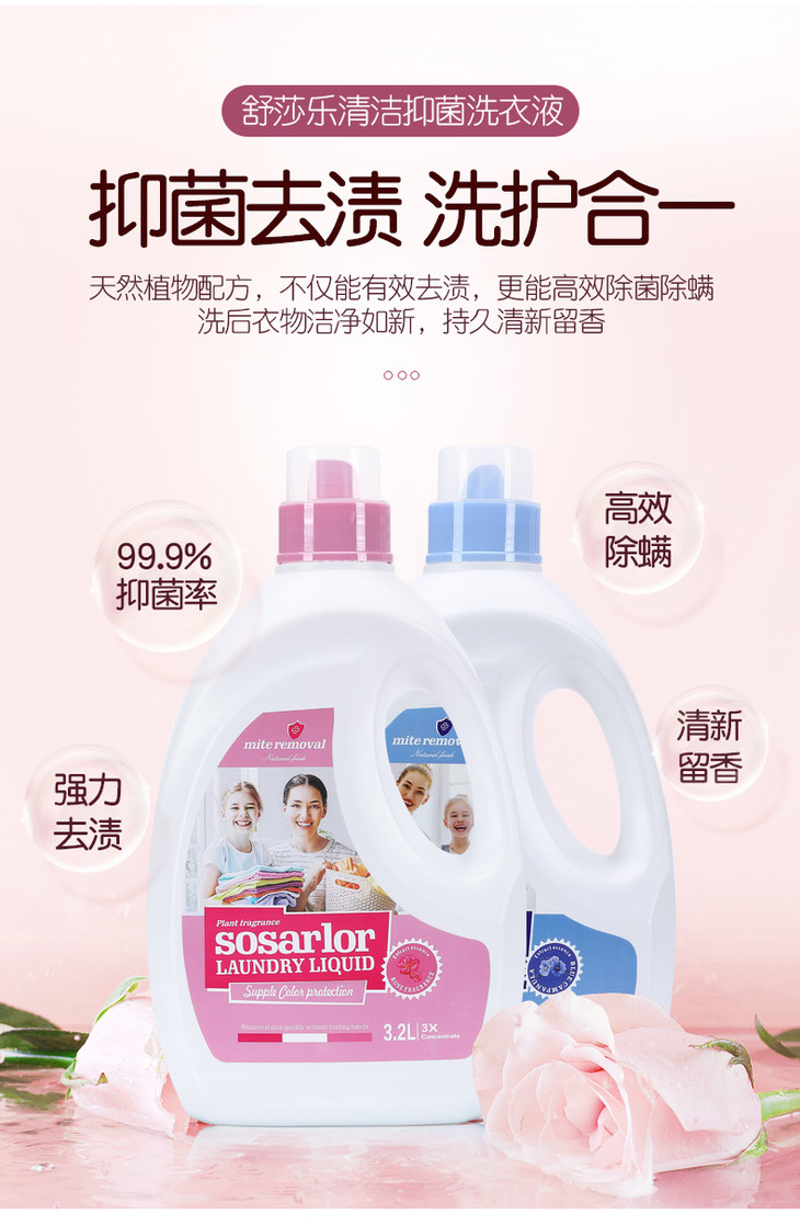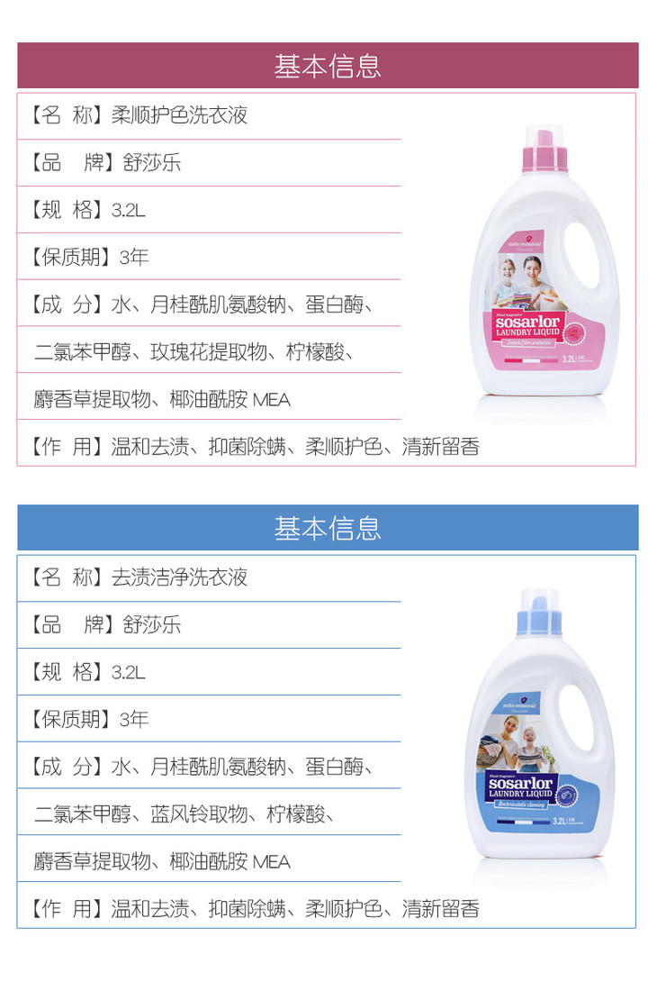 3.2L舒莎乐.去渍洁净/柔顺护色洗衣液 温和去渍 抑菌除螨