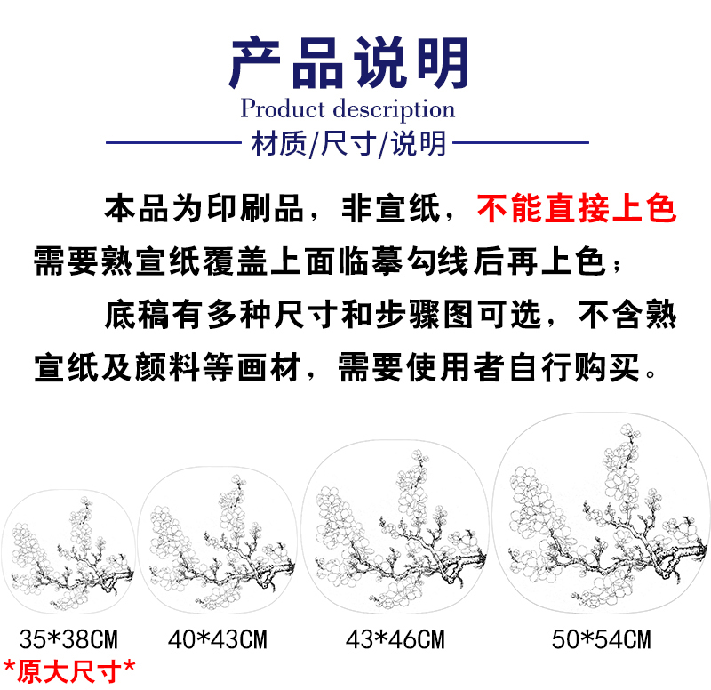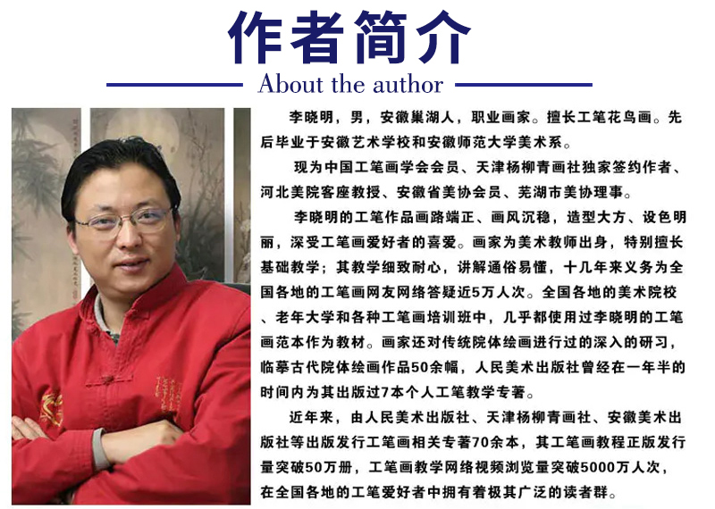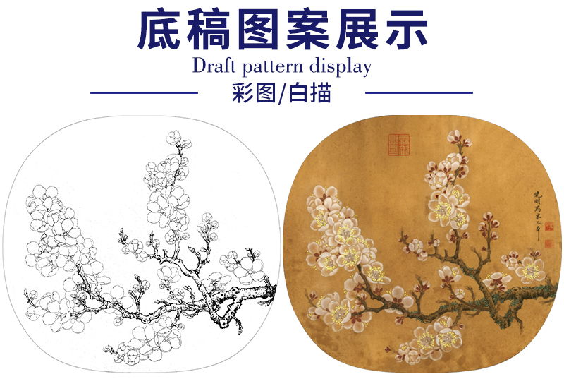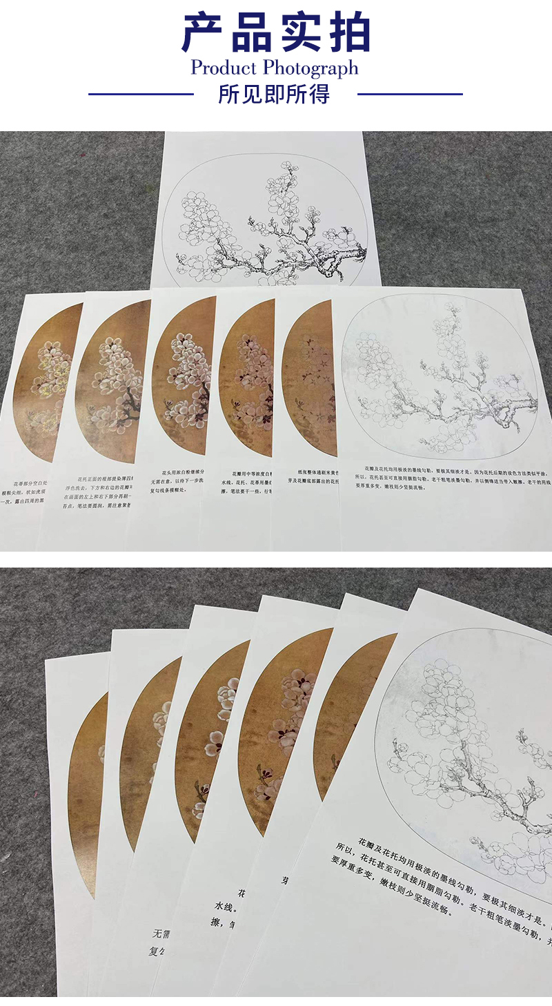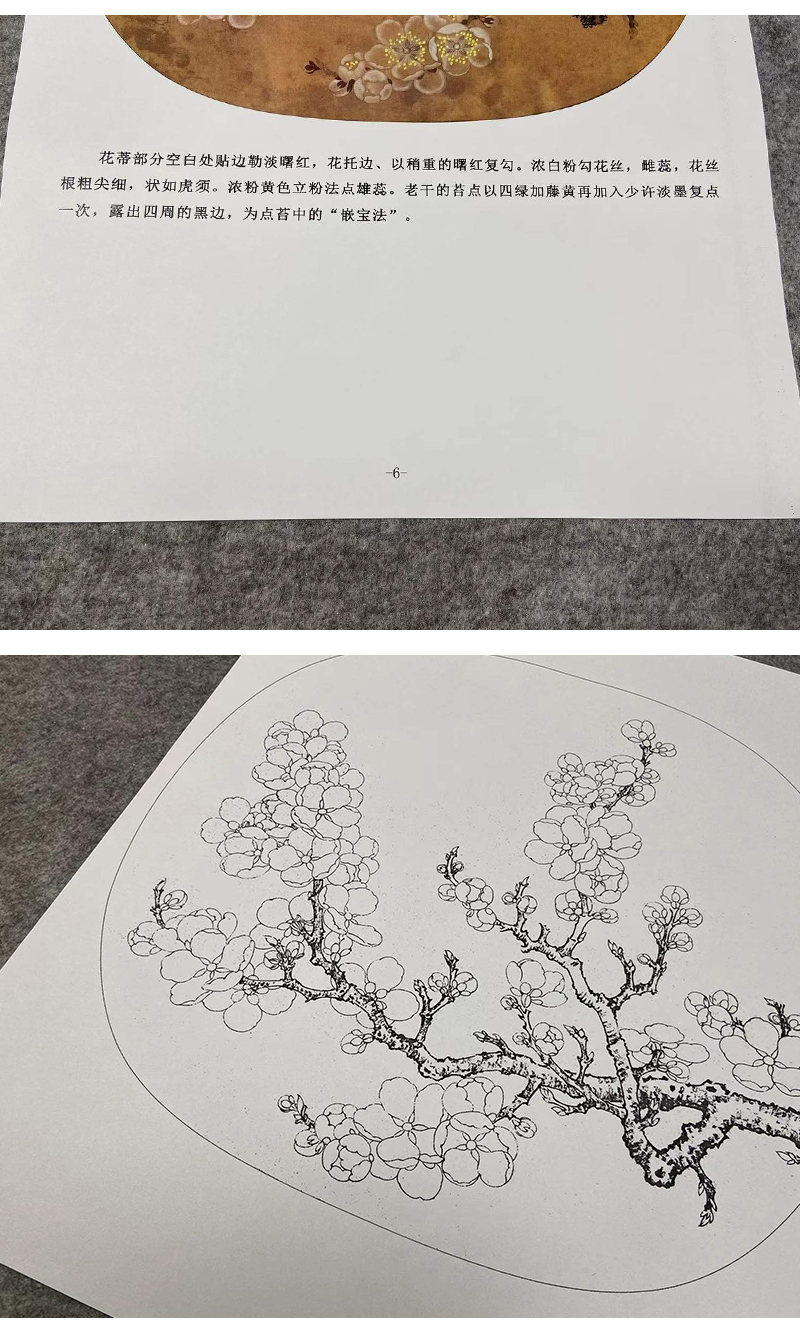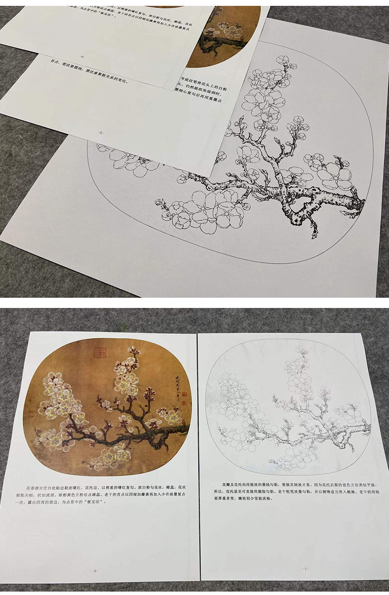 【有步骤、大彩图】李晓明工笔画白描底稿小品《杏花图》初学者临摹花鸟线稿KL11