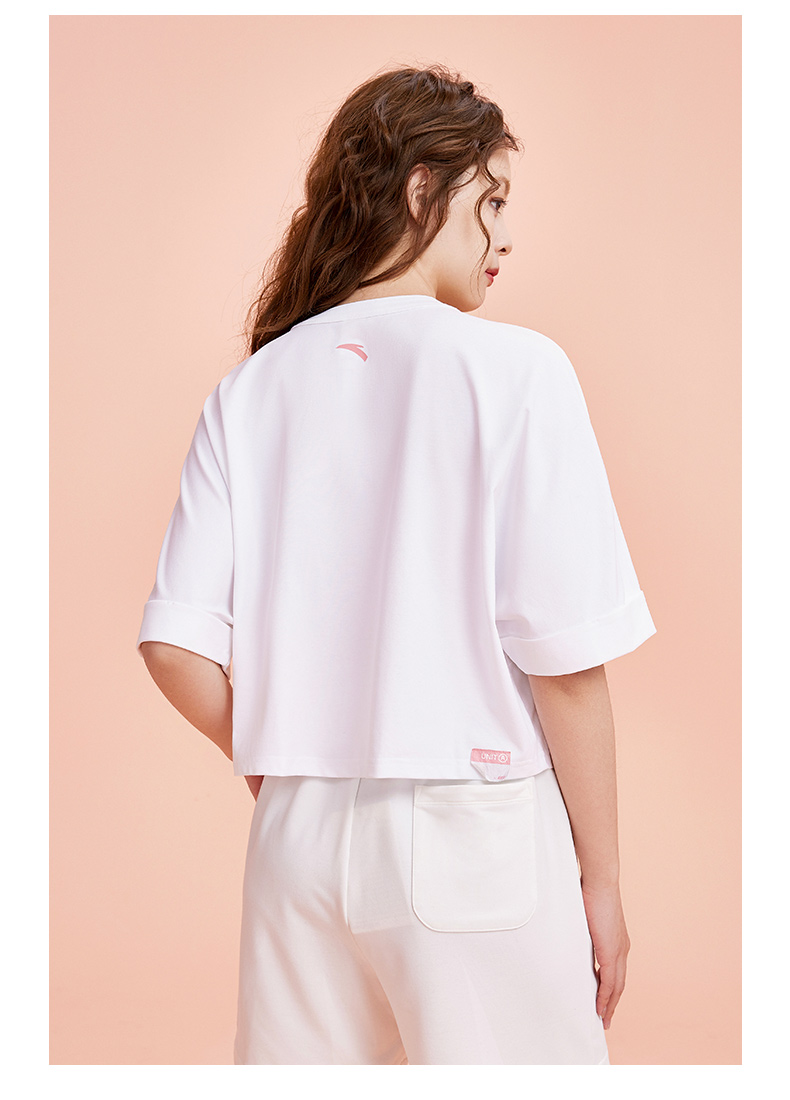 【2XL断码】安踏短袖t恤女夏季新款白色简约针织上衣宽松透气162328149【库存有限 无货将做退款】