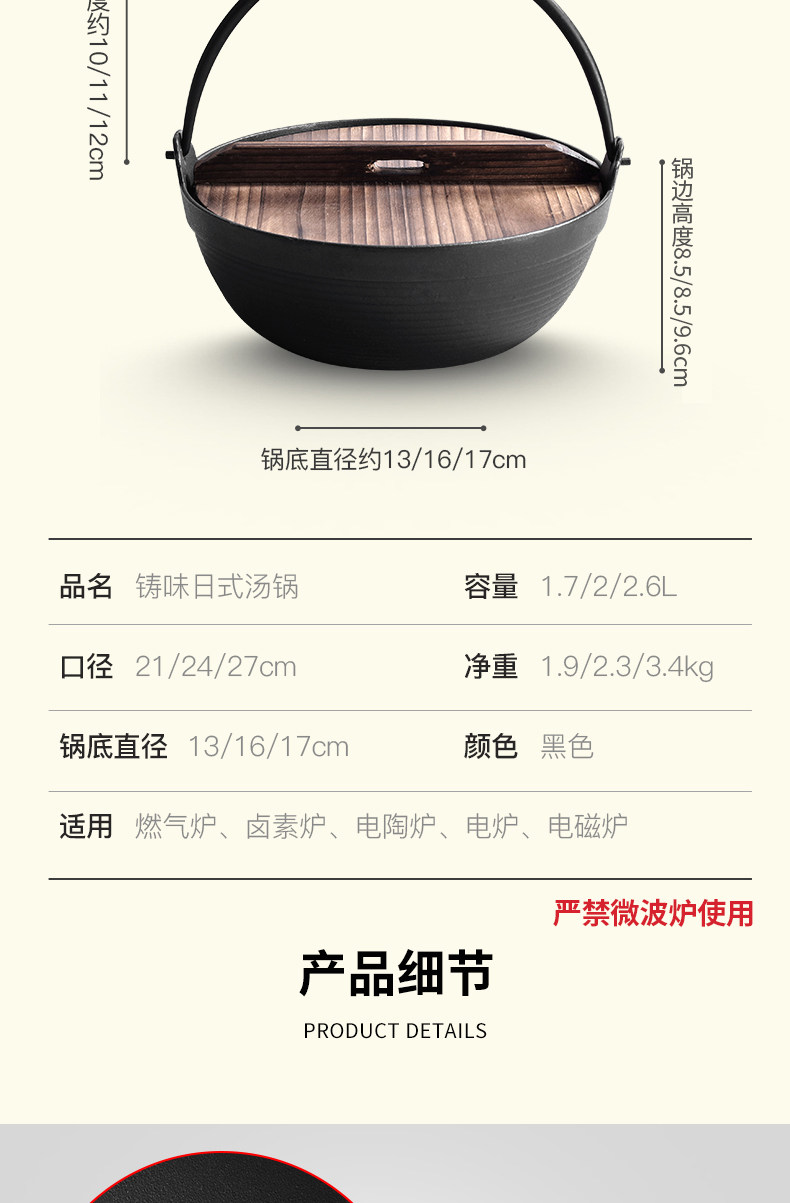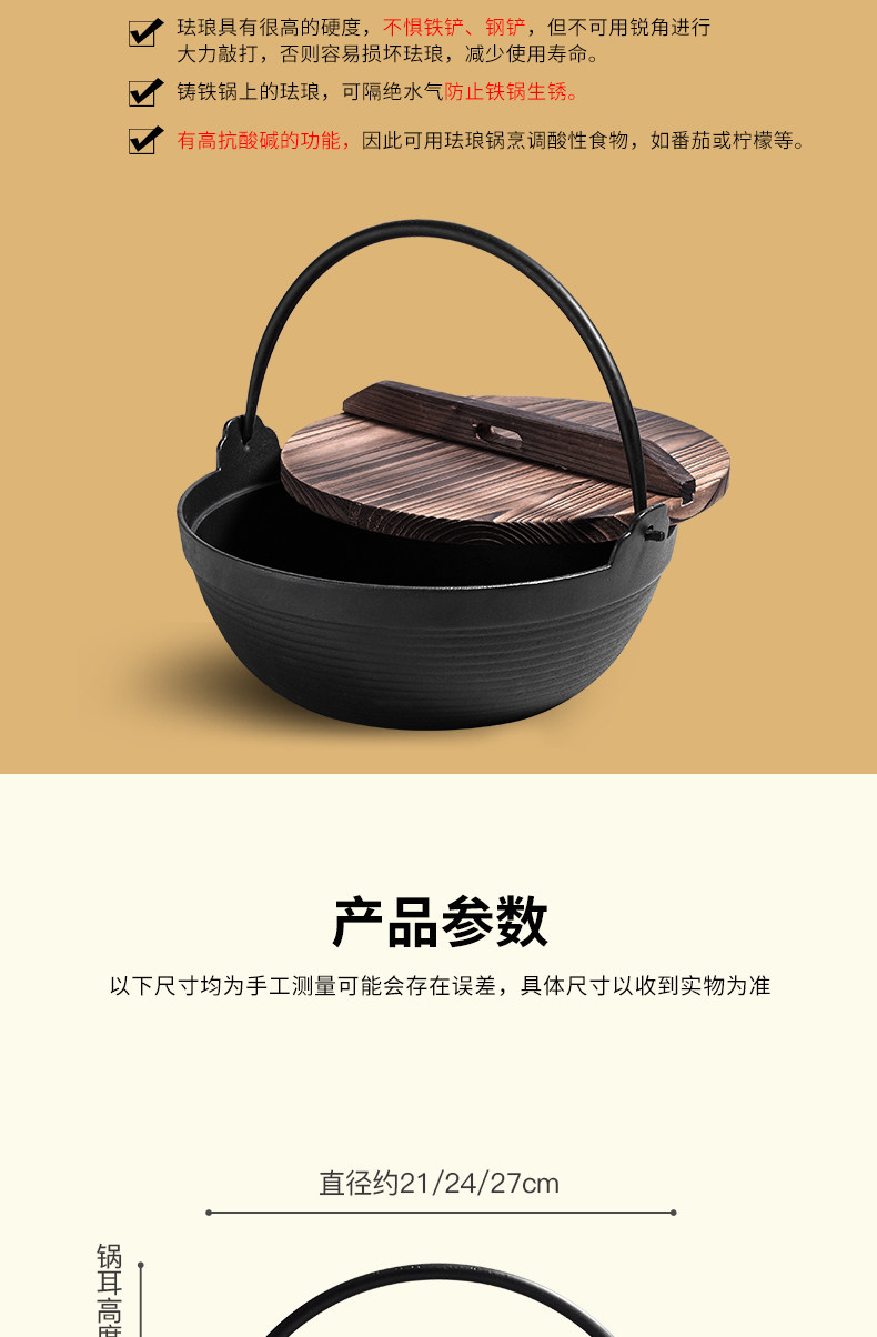 【品牌直发】铸味 | 21-27cm日式寿喜锅 铸铁锅珐琅火锅 家用多用途日本料理锅 平底油炸蒸锅